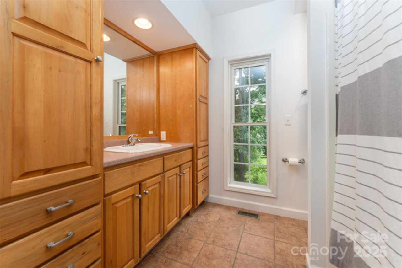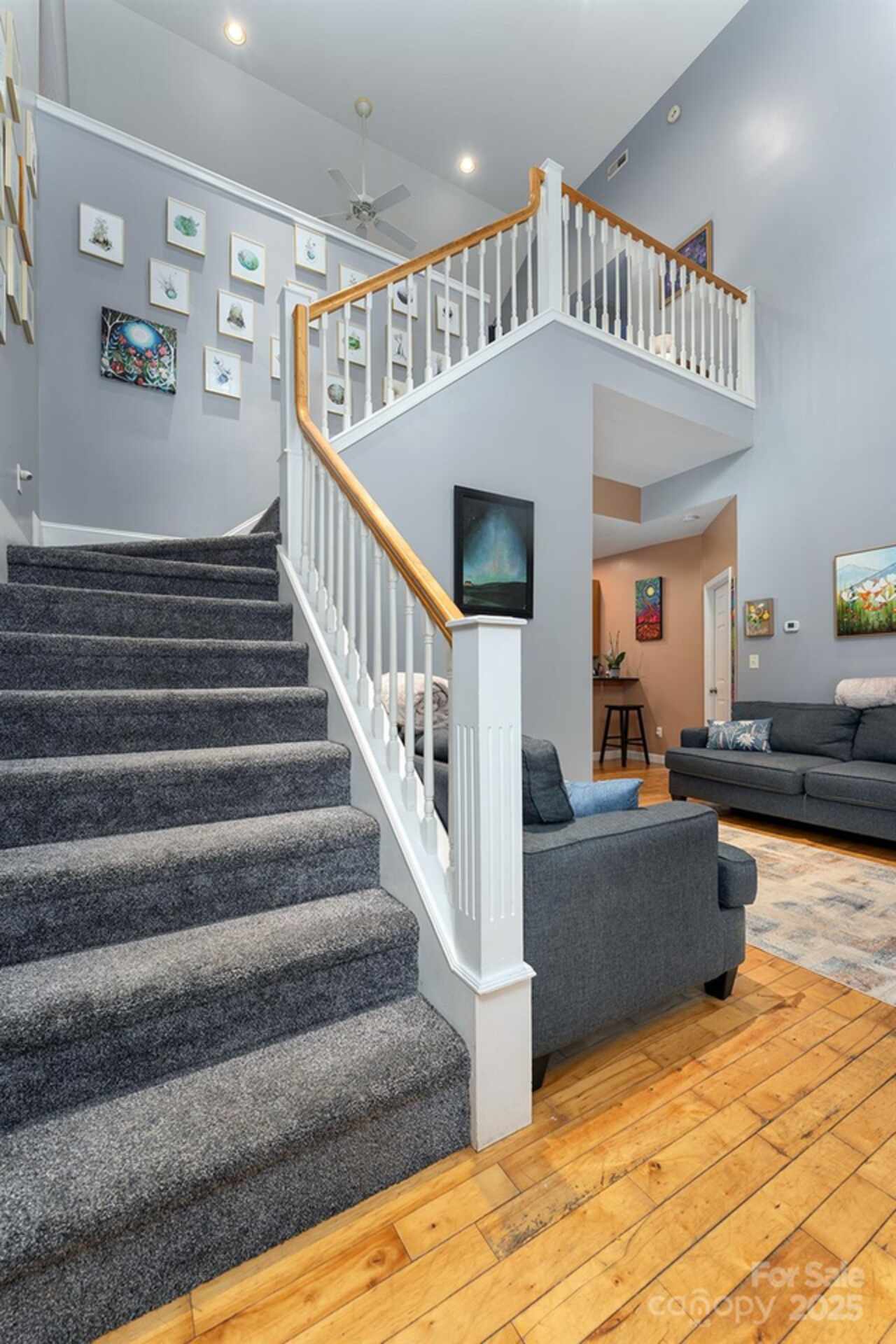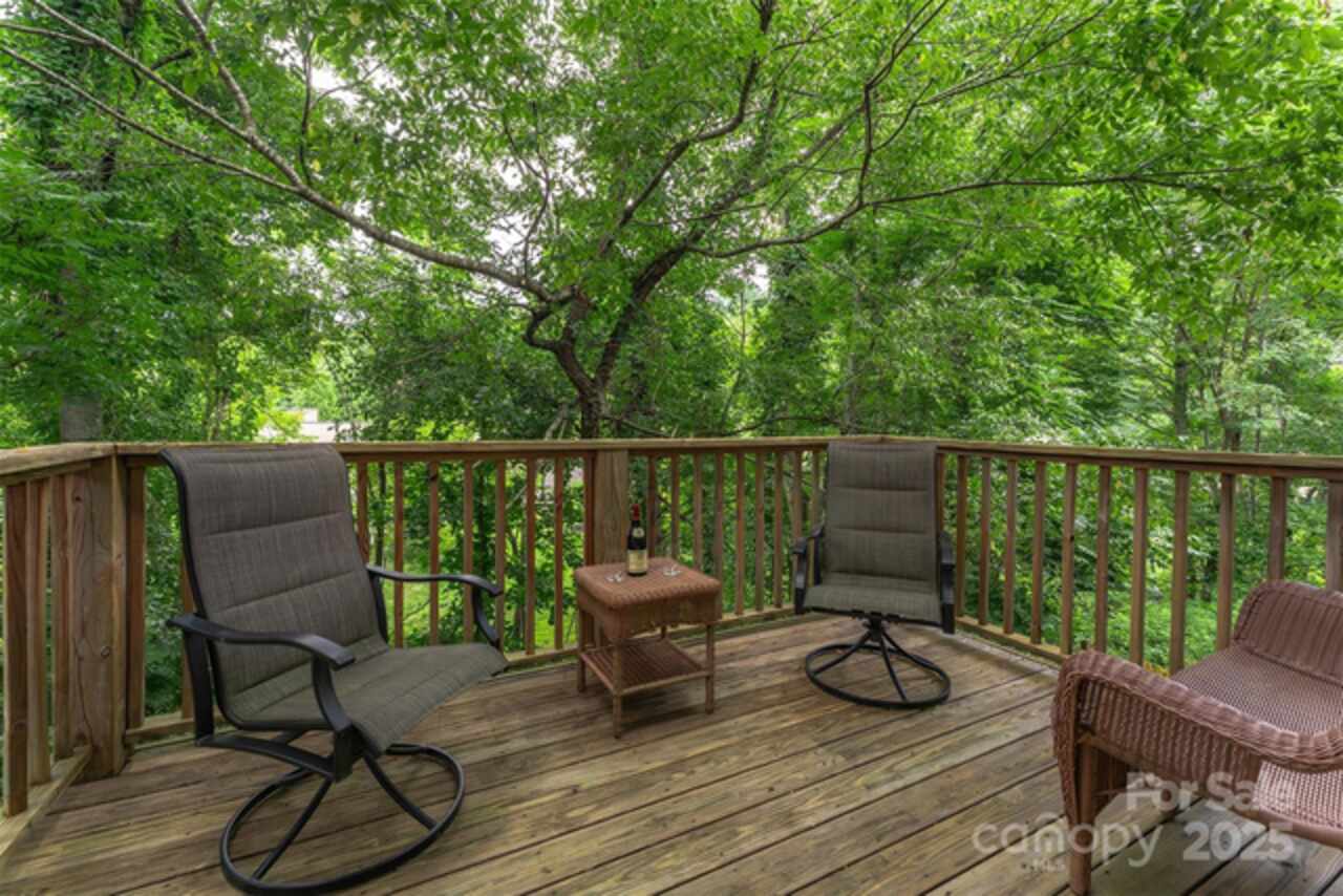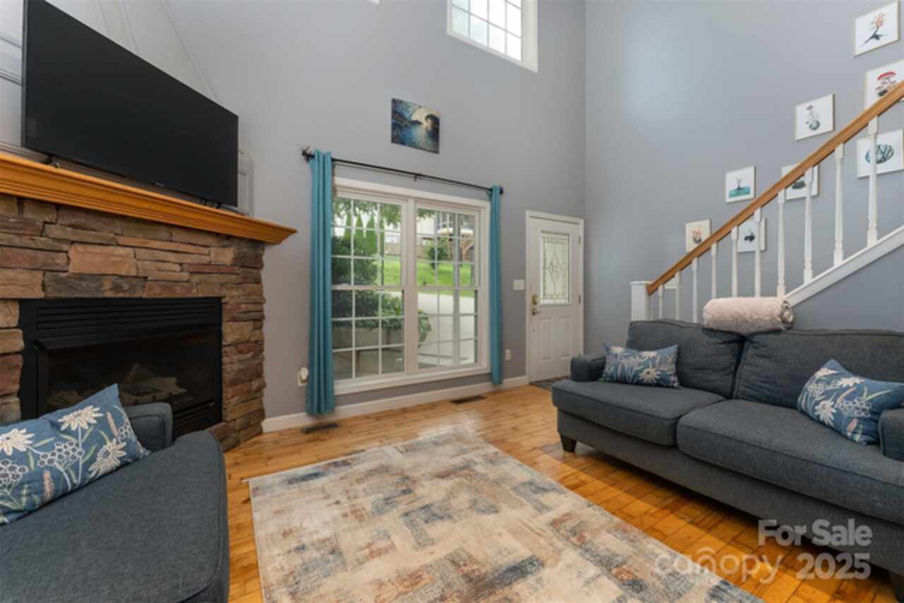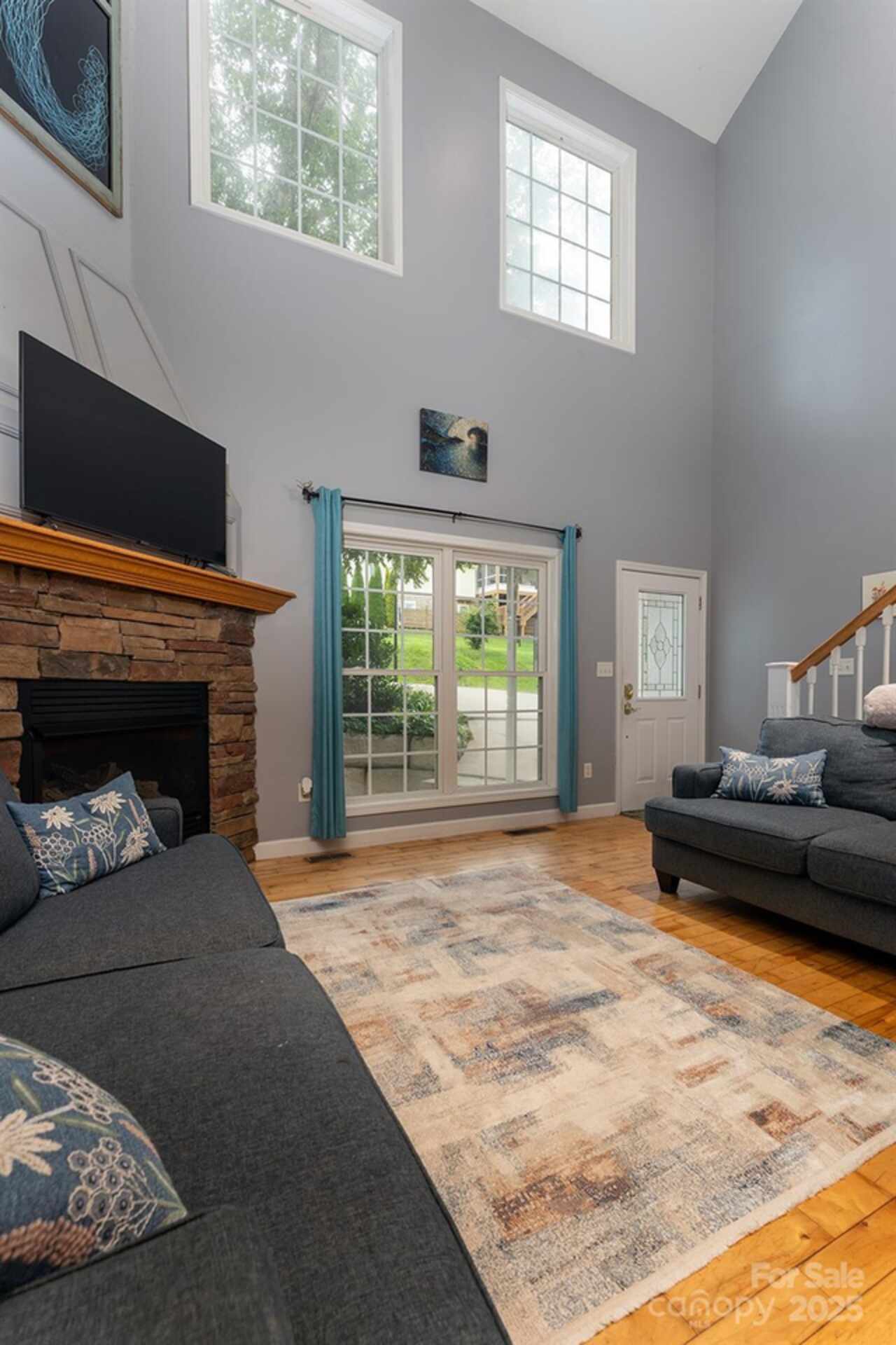 This fabulous East Asheville home is primed and move in ready. It sustained no storm damage or flooding. With plenty of space and versatility, you'll love the soaring ceilings and fireplace which greet you as you enter while the main level primary bedroom and laundry make for easy living. The back deck is a perfect place to unwind or grill while the front patio begs for a bistro table and chairs. 3 bedrooms and another full bath upstairs compliment the expansive open flex space. Don't overlook the basement which has up to 12' ceilings. It's unfinished but is plumbed for a bathroom and, with its sliding glass doors to the backyard, is set up to be a favorite spot. Outside, mature yet low maintenance landscaping and a backyard fire pit round out what is an extremely desirable home. Short term rentals are allowed and only pay county taxes. 4 minutes to Ingles or Copper Crown, 5 minutes to the Blue Ridge Parkway, 7 minutes to Whole Foods, 11 to downtown Asheville and 13 to healthcare.