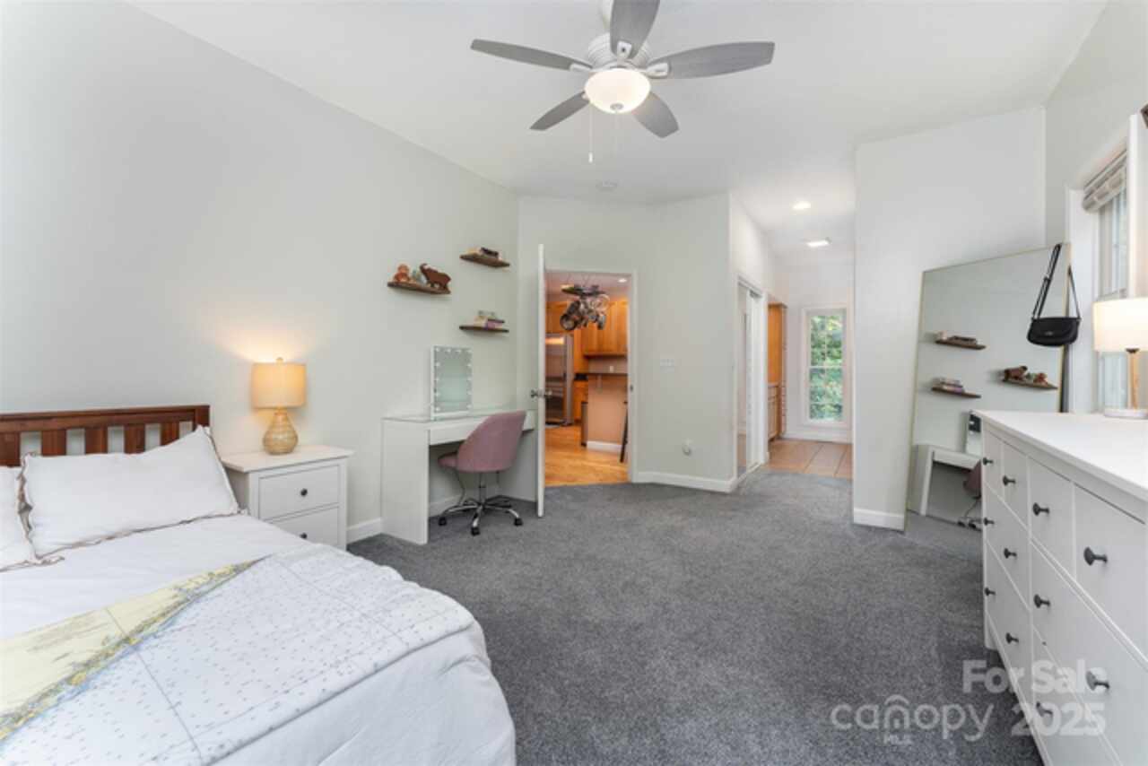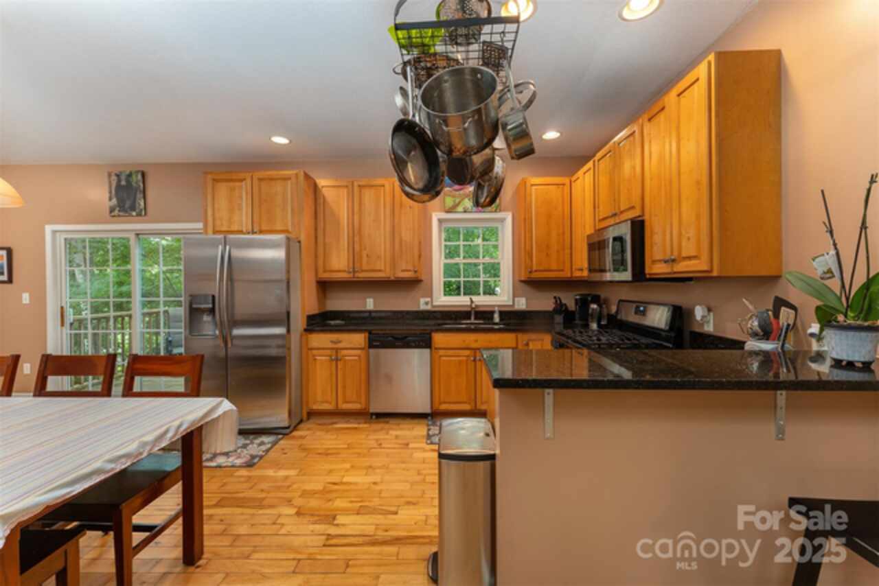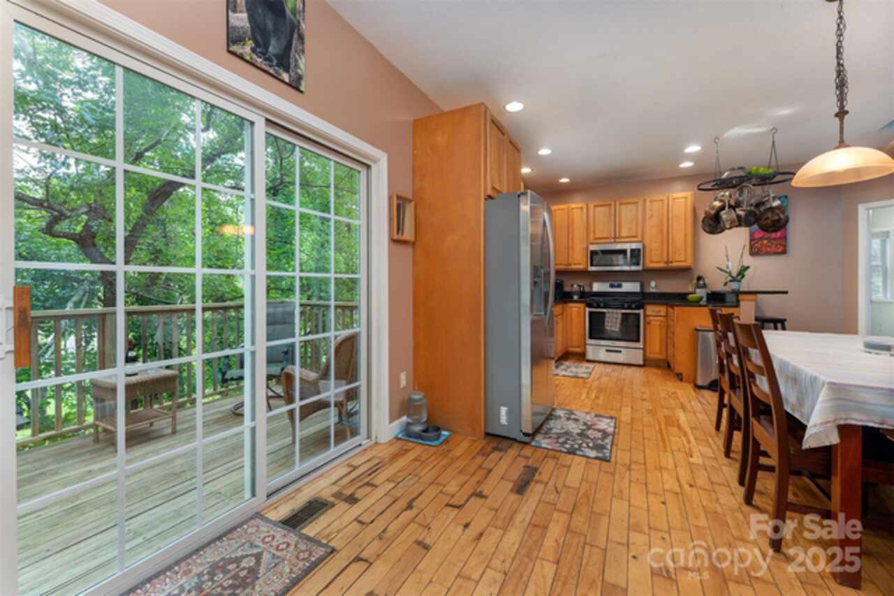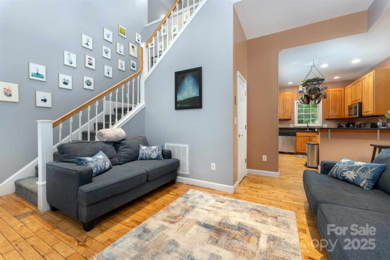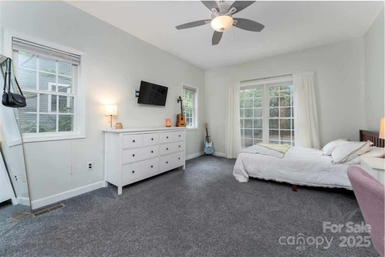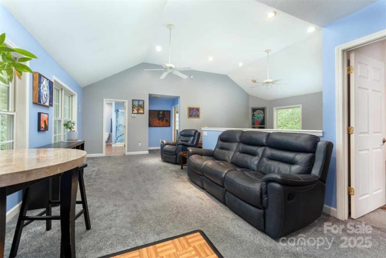 This fabulous East Asheville home is primed and move in ready. It sustained no storm damage or flooding. With plenty of space and versatility, you'll love the soaring ceilings and fireplace which greet you as you enter while the main level primary bedroom and laundry make for easy living. The back deck is a perfect place to unwind or grill while the front patio begs for a bistro table and chairs. 3 bedrooms and another full bath upstairs compliment the expansive open flex space. Don't overlook the basement which has up to 12' ceilings. It's unfinished but is plumbed for a bathroom and, with its sliding glass doors to the backyard, is set up to be a favorite spot. Outside, mature yet low maintenance landscaping and a backyard fire pit round out what is an extremely desirable home. Short term rentals are allowed and only pay county taxes. 4 minutes to Ingles or Copper Crown, 5 minutes to the Blue Ridge Parkway, 7 minutes to Whole Foods, 11 to downtown Asheville and 13 to healthcare.