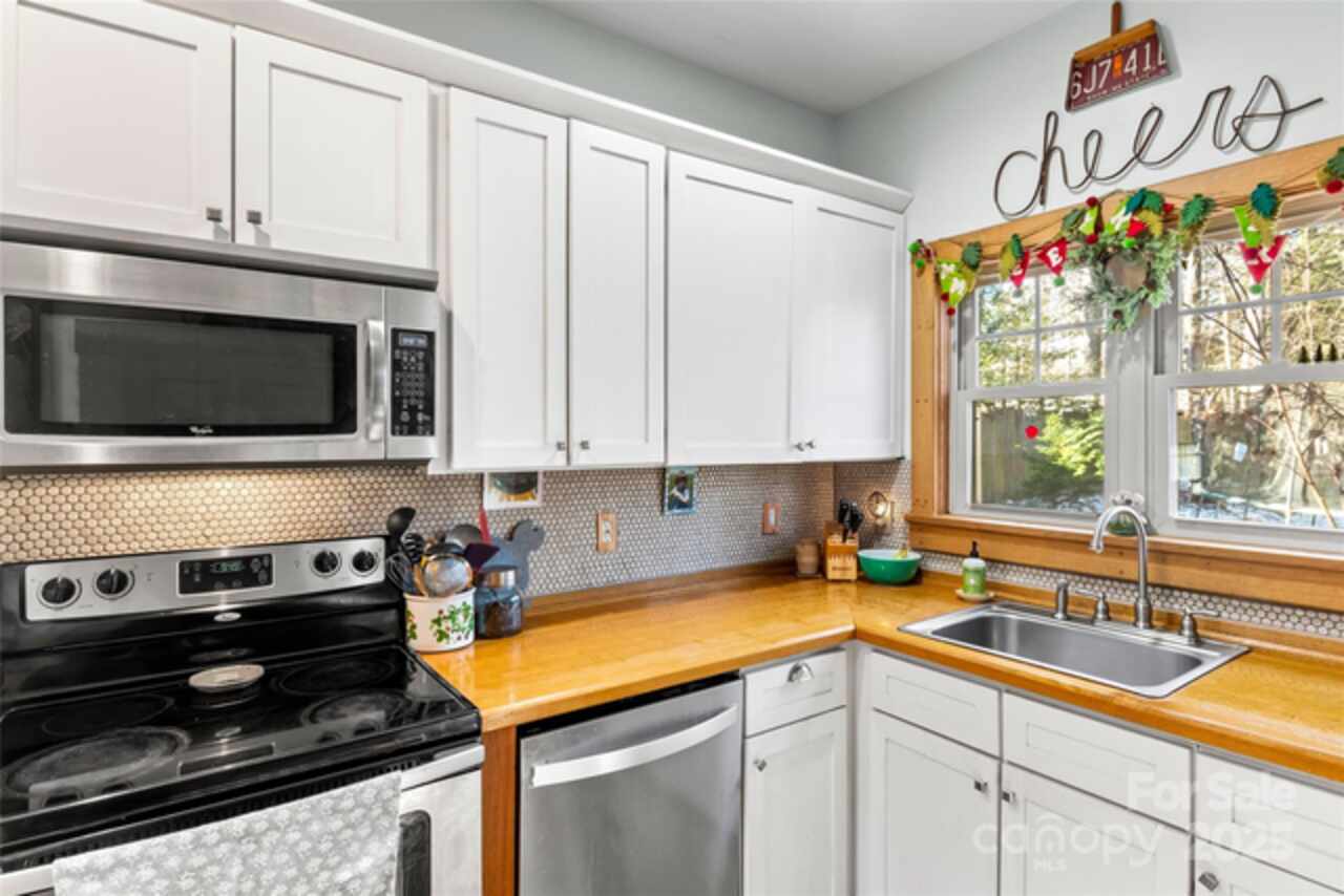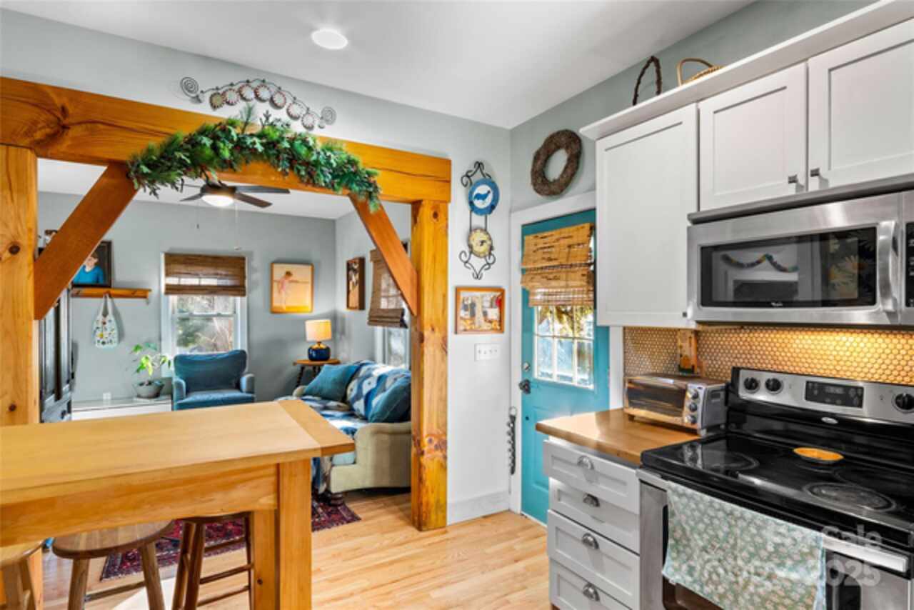 Nestled just one block from the serene Lake Tomahawk, this delightful cottage-style home offers a perfect blend of comfort and convenience. Ideally located within walking distance to downtown Black Mountain, local markets, and tons of outdoor recreation options! The home features a functional two-story layout with a main-floor primary bedroom, cozy living room, and an inviting kitchen and dining area—perfect for both daily living and entertaining. Upstairs, you’ll find two spacious bedrooms and a full bathroom, providing ample space for a growing family or hosting guests. Step outside to discover a gardener’s paradise, with a large backyard full of potential. A standout feature is the 300 sq. ft. professionally constructed timber-framed shed built with locally sourced materials, 8x12 loft area and metal roof. This space offers endless possibilities as a studio, workshop, or creative retreat. Don’t miss the chance to make this serene and charming home yours. Schedule your showing today!
