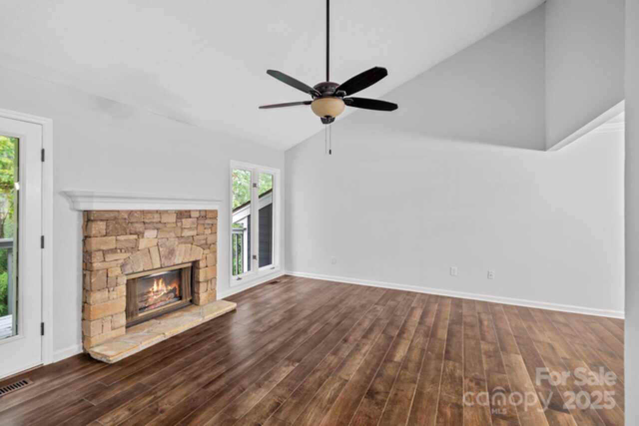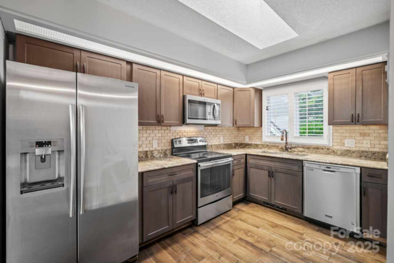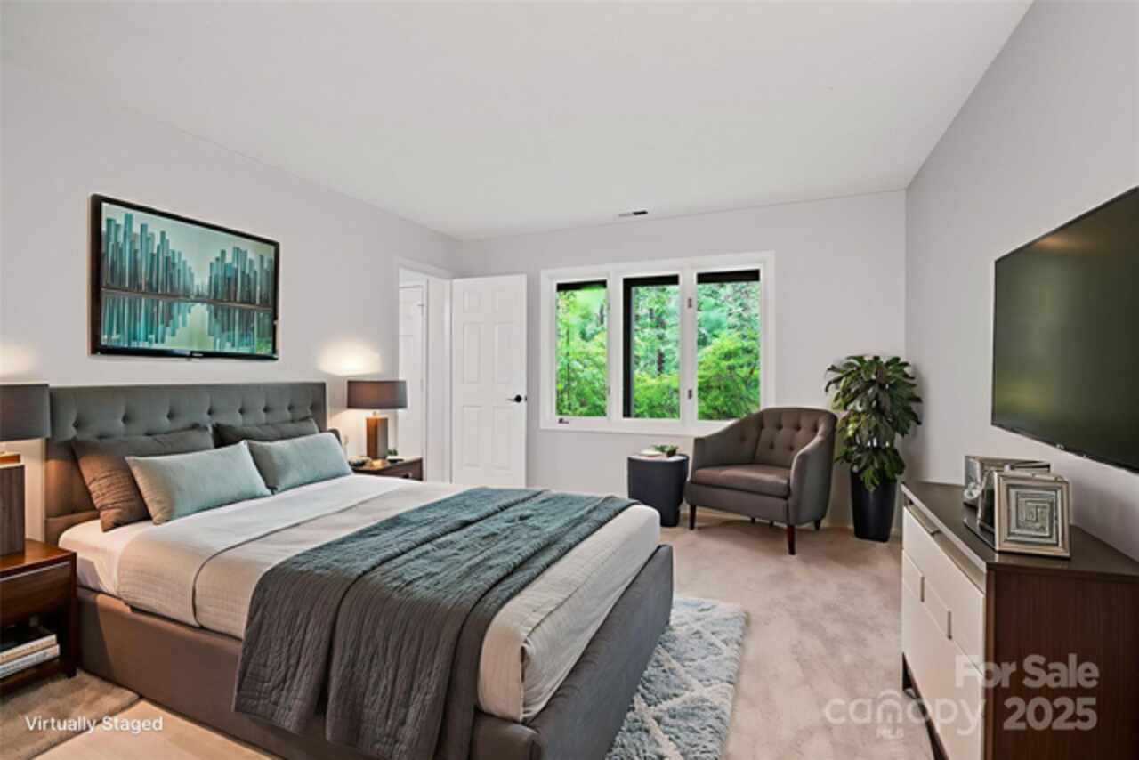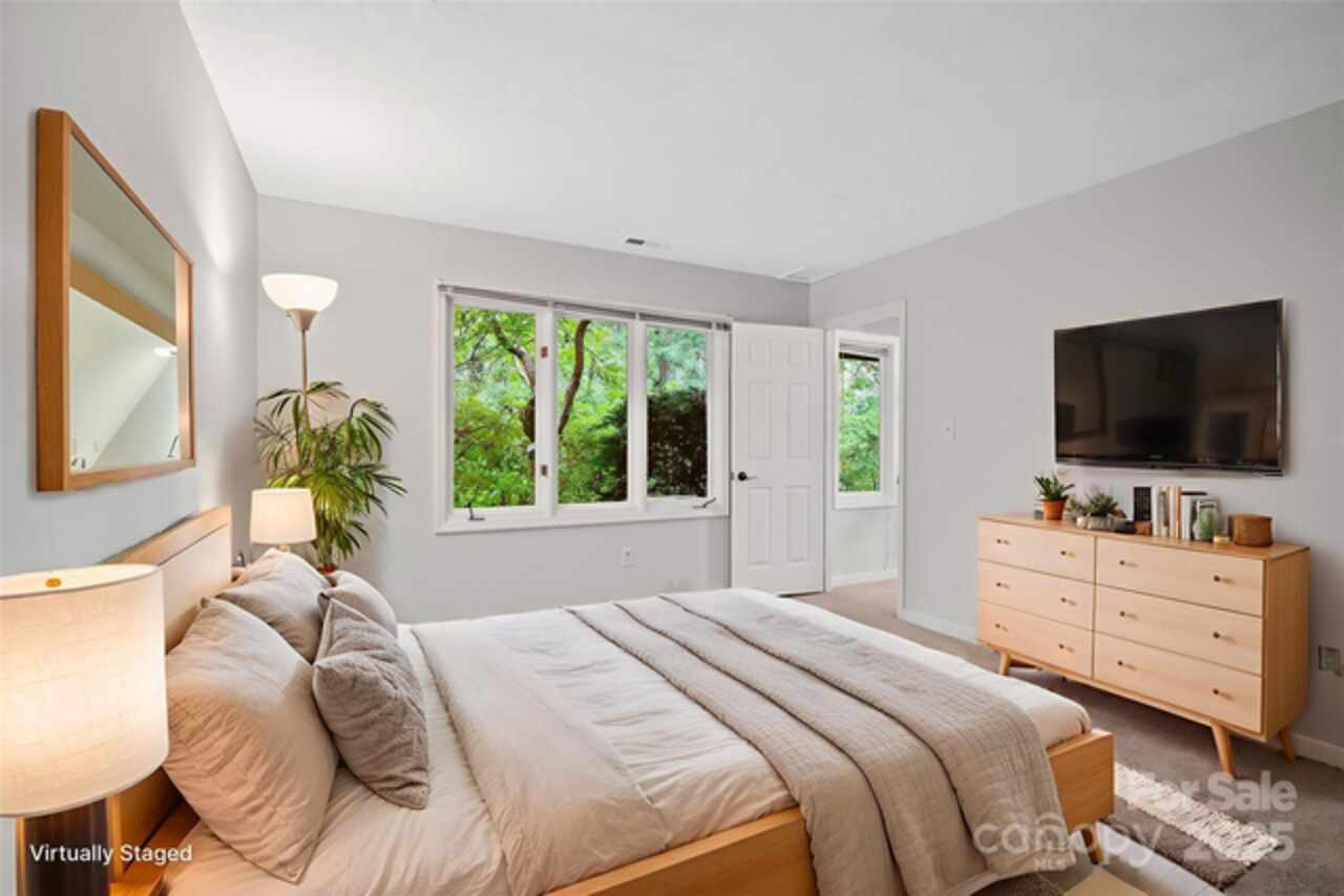 Discover relaxed elegance in this updated townhome in North Asheville’s desirable Belvedere community. Just minutes from downtown, Beaver Lake, Fresh Market, restaurants, and the library, this home blends comfort, style, and convenience. The light-filled living room features soaring ceilings and a gas fireplace, creating a warm, open space to unwind or entertain. The kitchen shines with granite counters, stainless steel appliances, and a skylight overhead. All-new flooring and fresh paint throughout add a crisp, modern touch. The main-level primary suite offers dual sinks, dual closets, and a tiled shower. Downstairs, two additional bedrooms and a fully renovated full bath provide ideal guest space or home office options. Relax on your private back deck overlooking wooded views, or enjoy the community’s pool & social gatherings like the neighborhood book group. Lawn care is included—so you can focus on living, not maintaining.