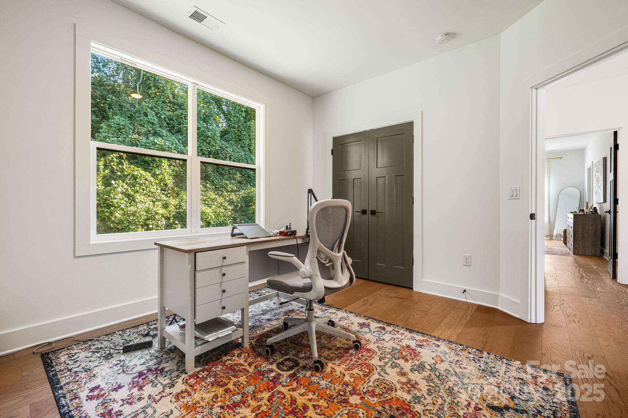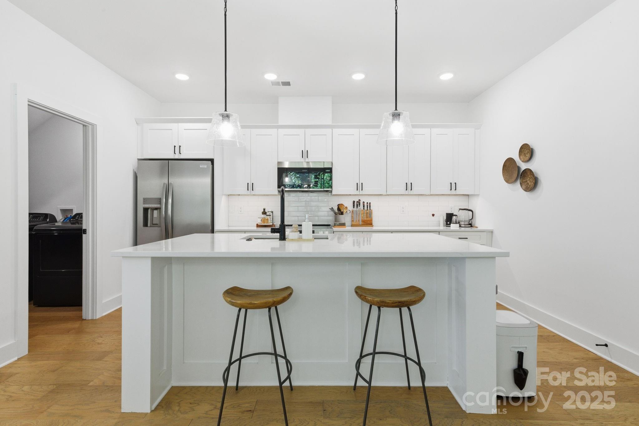 Built in 2024, this stunning new home in Asheville’s Oakley neighborhood blends modern style, comfort, and convenience in a peaceful setting. The open main level welcomes you with airy, light-filled living and dining areas that flow effortlessly into the gorgeous kitchen — complete with quartz countertops, stainless steel appliances, and custom cabinetry. Sliding doors lead from the kitchen to a covered back patio, perfect for relaxing or entertaining year-round. The home sits on a private lot, offering a sense of seclusion rarely found so close to town. Upstairs, you’ll find three spacious bedrooms and two full baths, including a luxurious primary suite with a large walk-in closet and a beautifully tiled shower. The oversized laundry room doubles as a pantry and storage hub, keeping everything organized and accessible. Outside, the backyard is ideal for plant lovers and gatherings alike, with space for gardens, play, and quiet moments on the patio. With no storm damage, thoughtful design, and high-quality finishes throughout, this home offers the best of modern Asheville living — just minutes from downtown, Biltmore Village, and local trails.