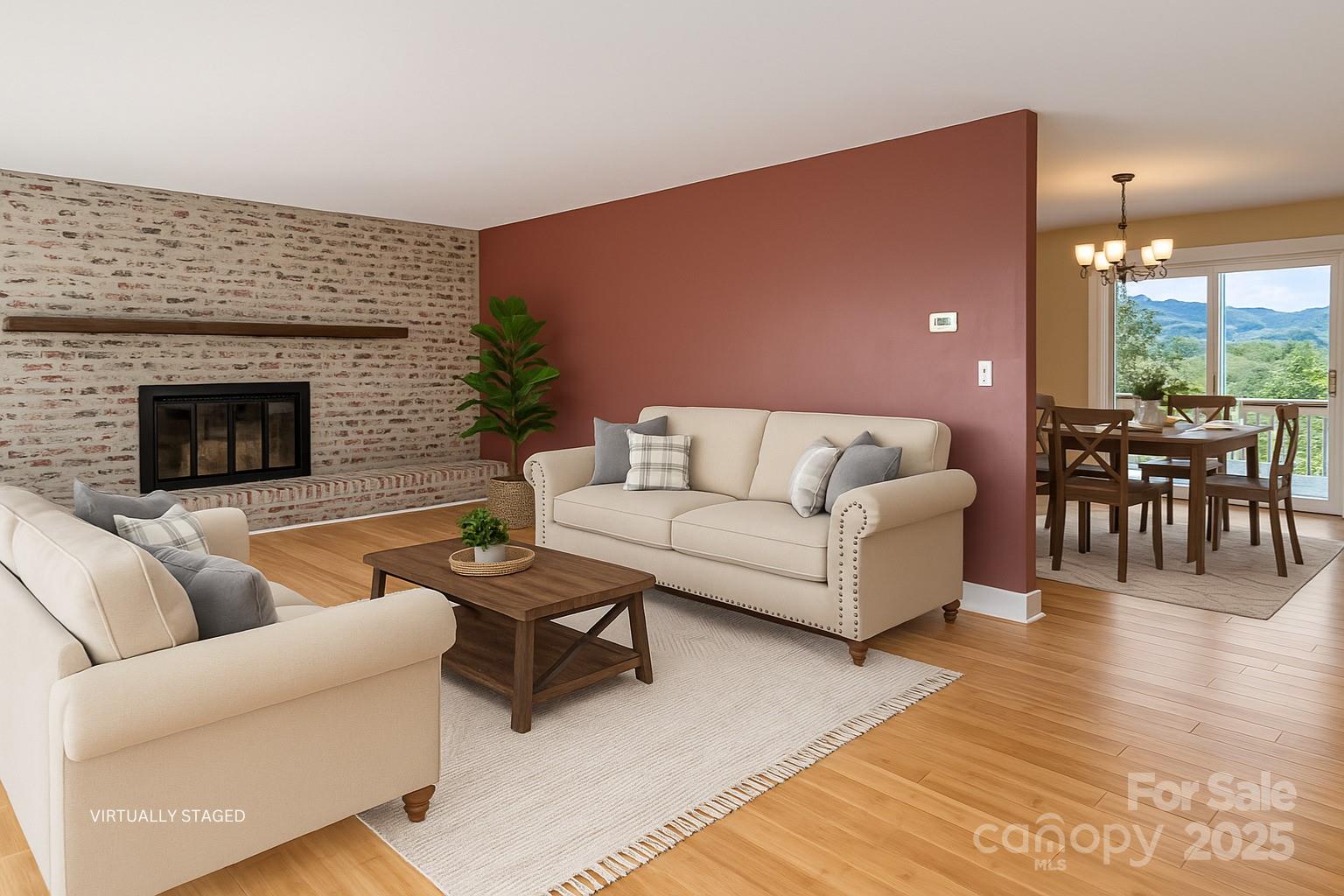 Back on the market with expanded living space and long-range mountain views, this classic brick rancher offers a flexible layout on nearly two acres suited for gardening, play, and simple homesteading. The home now provides 3 bedrooms, 2 full baths, and a daylight rec room for a total of 1851 sq ft, along with about 500 sq ft of finished bonus and office space with its own entrance for work, fitness, creative pursuits, or guest overflow. A comfortable living room with bay window looks out over pastoral surroundings, and the dining area opens to a deck positioned for sunset views across the Bald Mountain Range. The land includes garden beds, rain barrels, a small chicken cottage, and a variety of fruiting and flowering plantings. The finished basement offers walk-out access and room to spread out. Recent updates include a newer roof, septic system, sediment filter, hot water heater, bamboo flooring, and popcorn ceiling removal, while the kitchen and baths remain clean and ready for simple personalization. With mountain views from the house and yard and a location minutes from Ingles, area schools, and Asheville, the property combines space, scenery, and everyday convenience. Seller offer $10, 000 credit toward repairs.