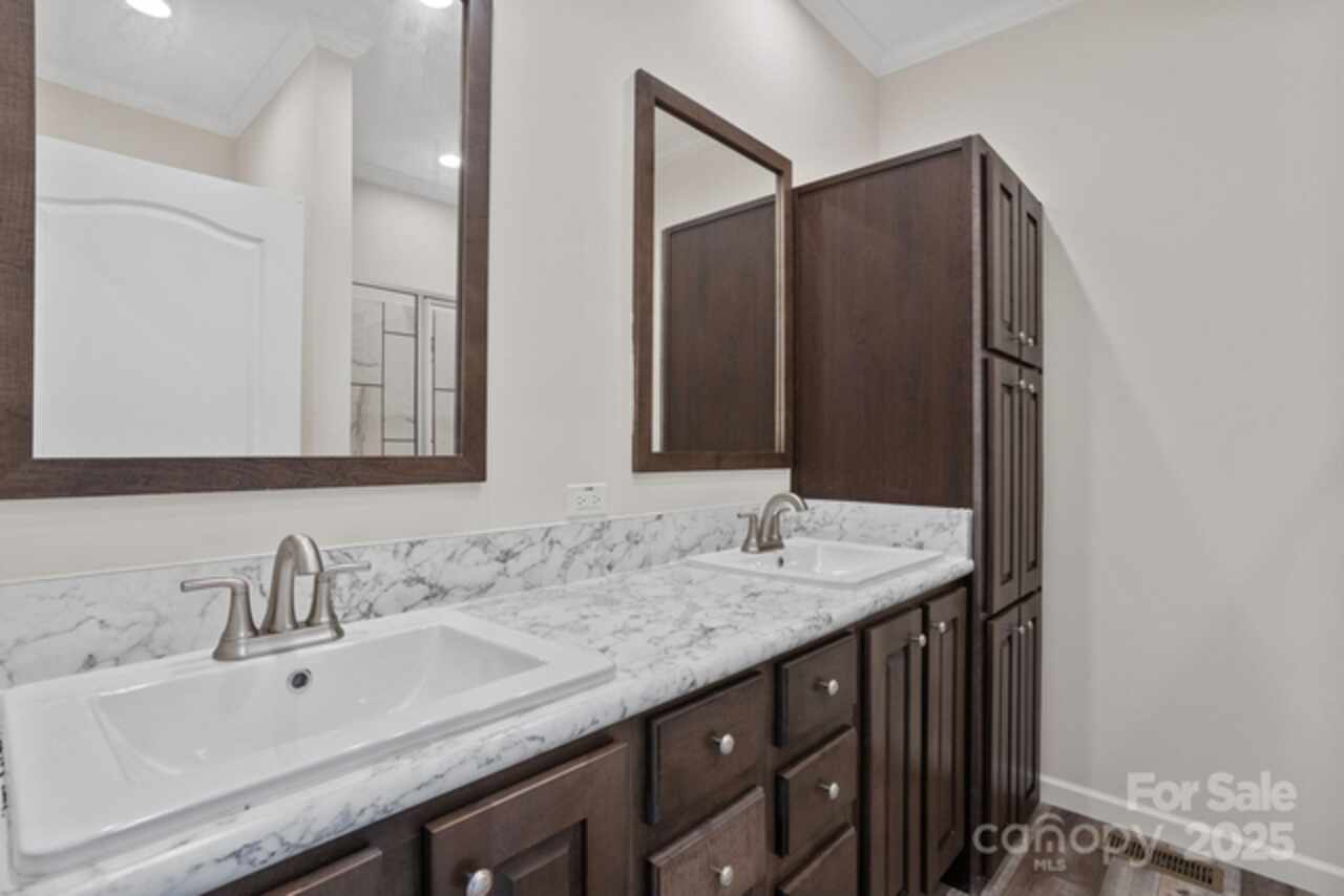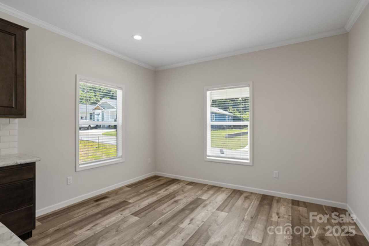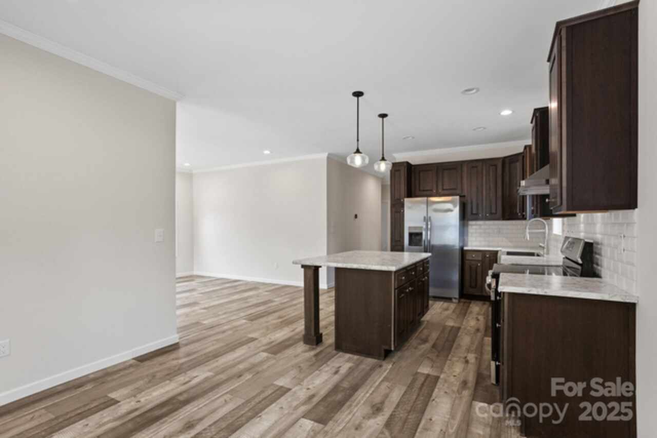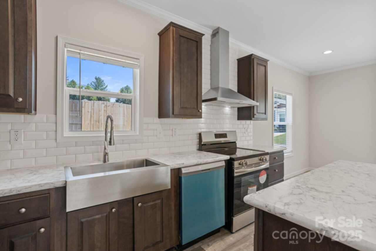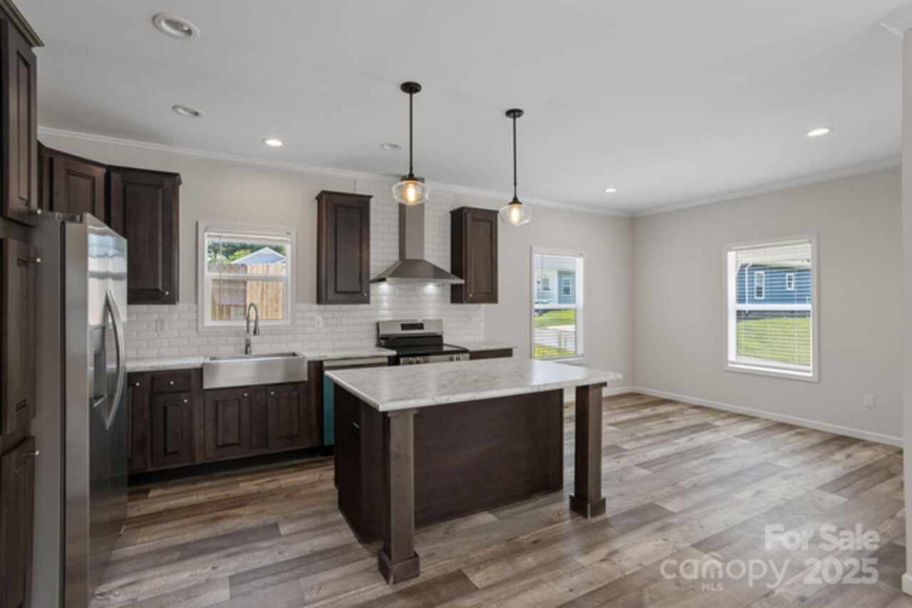 Welcome to the beautiful community of Brooks Cove—just 10 minutes from downtown Asheville! This brand-new, move-in ready home offers the perfect blend of style, comfort, and convenience. From the charming covered front porch, step into a spacious, open-concept layout featuring a bright great room and a kitchen with an oversized island, upgraded appliances, tile backsplash, abundant counter space, and a generous dining area—ideal for entertaining. The primary suite is a true retreat with a spa-like bathroom, including dual vanities, raised-height cabinets, a walk-in tiled shower, and plenty of storage. Two additional bedrooms offer flexibility for guests, a home office, or creative space. The large guest bathroom is equally well-appointed. Enjoy the outdoors year-round with a rear covered porch and a backyard perfect for pets, play, or peaceful relaxation. Additional features include recessed lighting, front yard irrigation, and Ecobee smart thermostats.