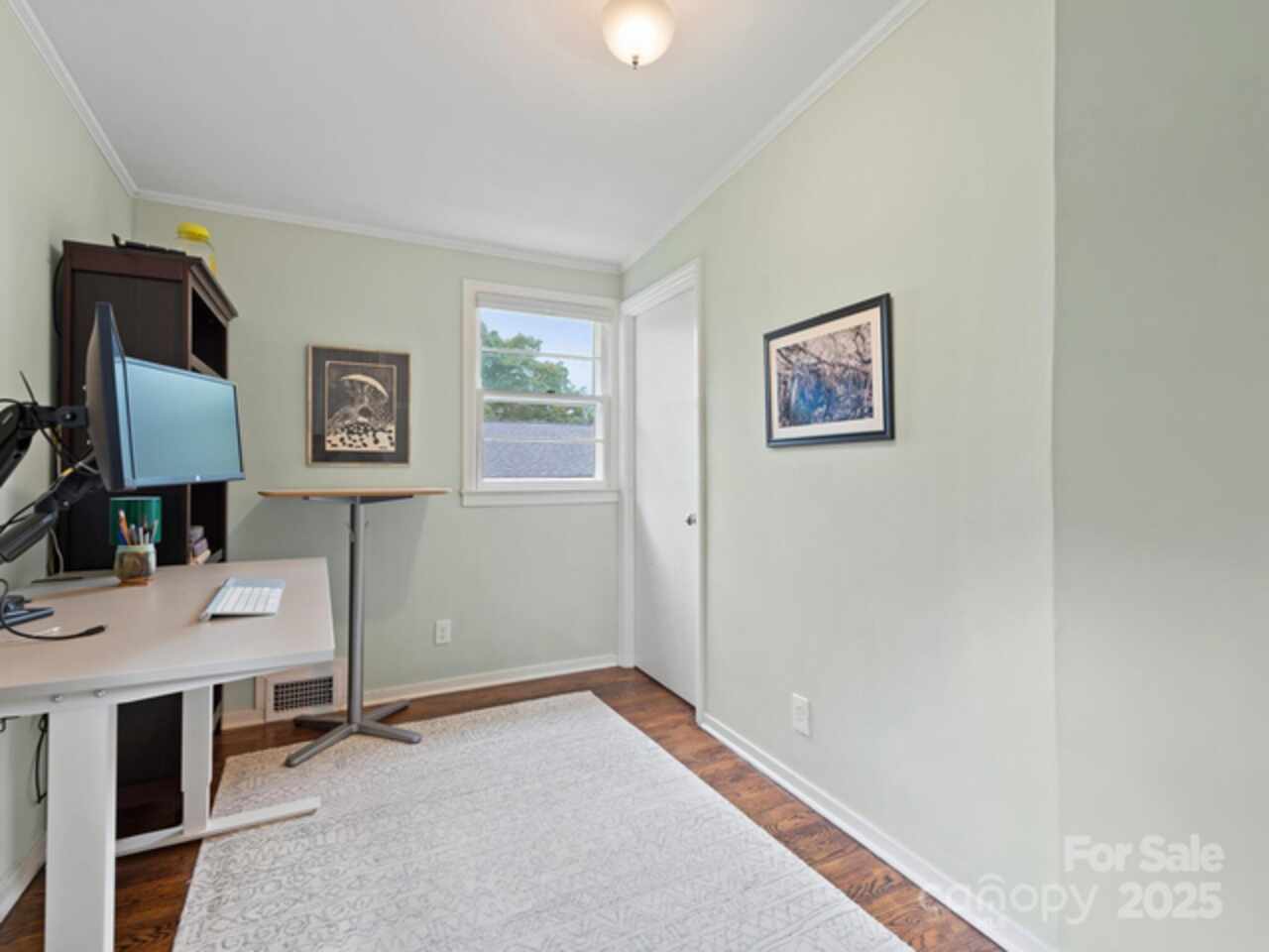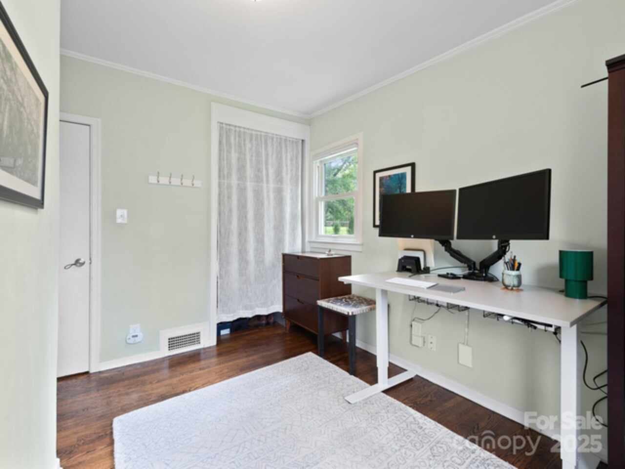 This quintessential West Asheville bungalow is truly move-in ready! A welcoming front porch, off-street parking, and mature landscaping set the stage before stepping inside to hardwood floors and an open, light-filled layout. The modern kitchen shines with stainless steel appliances, an induction range, marble countertops, and reverse-osmosis water filtration—plus direct access to the back deck, ideal for entertaining. The hallway leads to three comfortable bedrooms, a built-in office nook, and an updated bath. A versatile full basement, accessed from the smaller bedroom/office, provides abundant storage, workshop space, and laundry. All of this in an unbeatable location within easy walking distance to West Asheville’s vibrant arts scene, eclectic dining, breweries, local park, and more yet feels tucked away on quiet, "no outlet" neighborhood street.