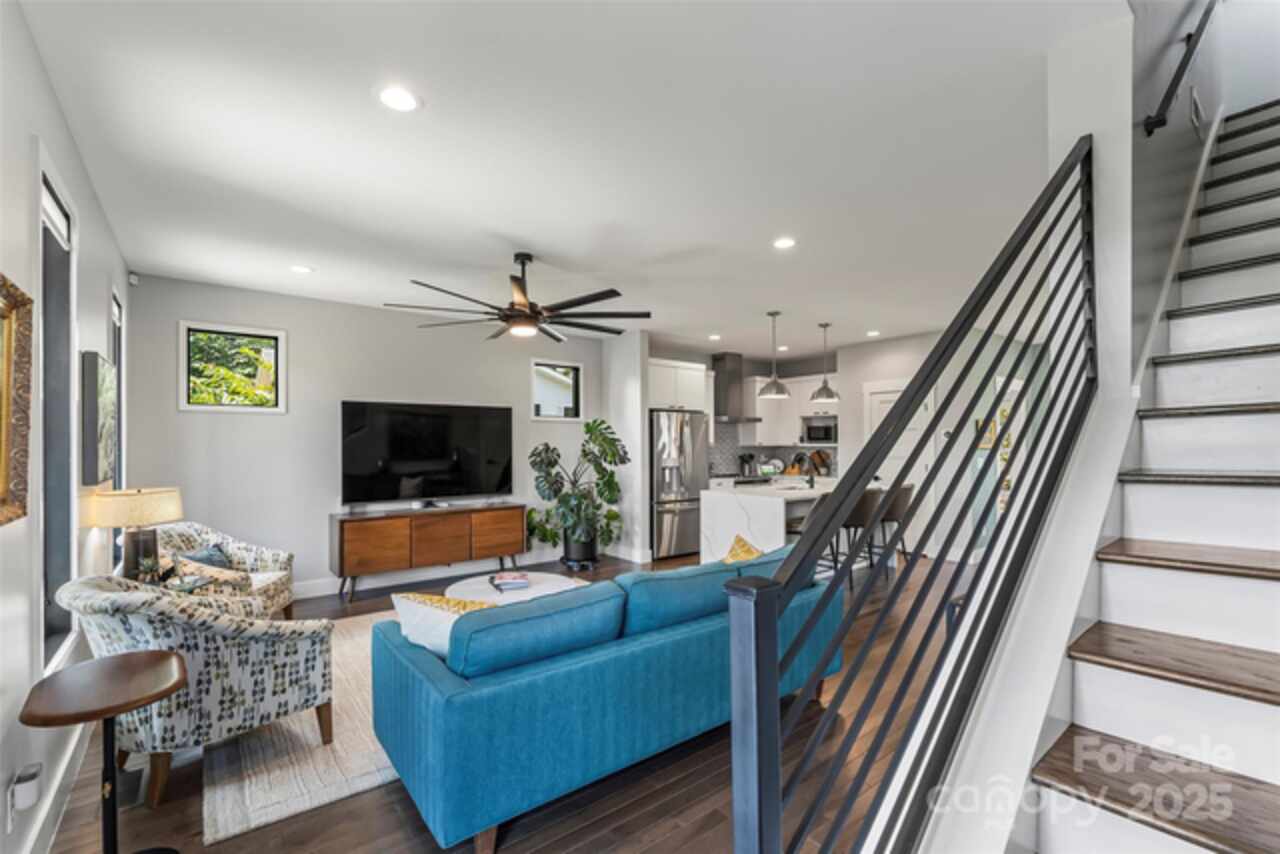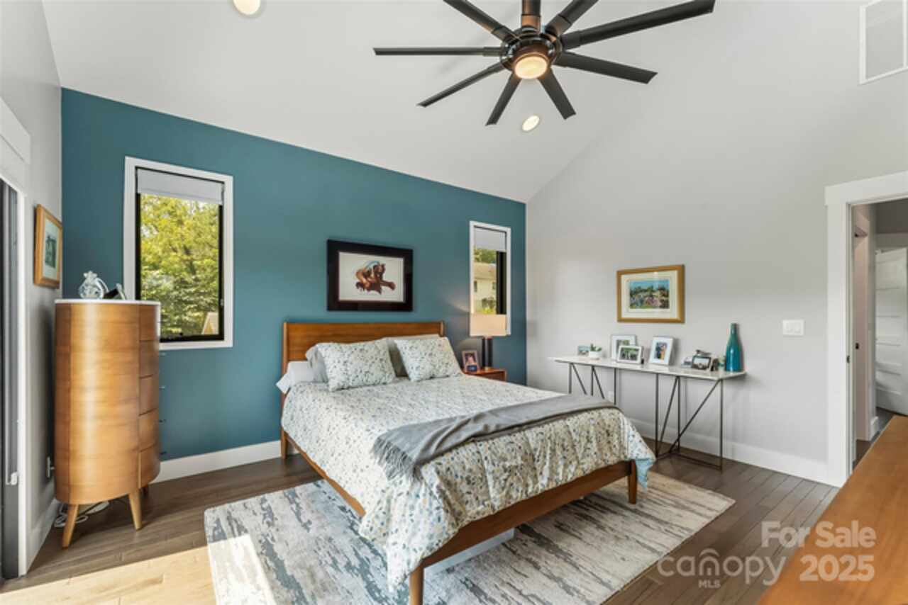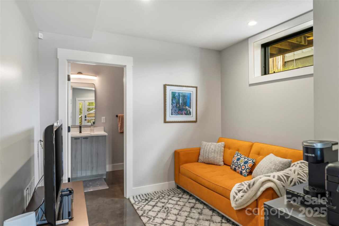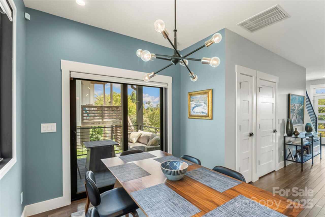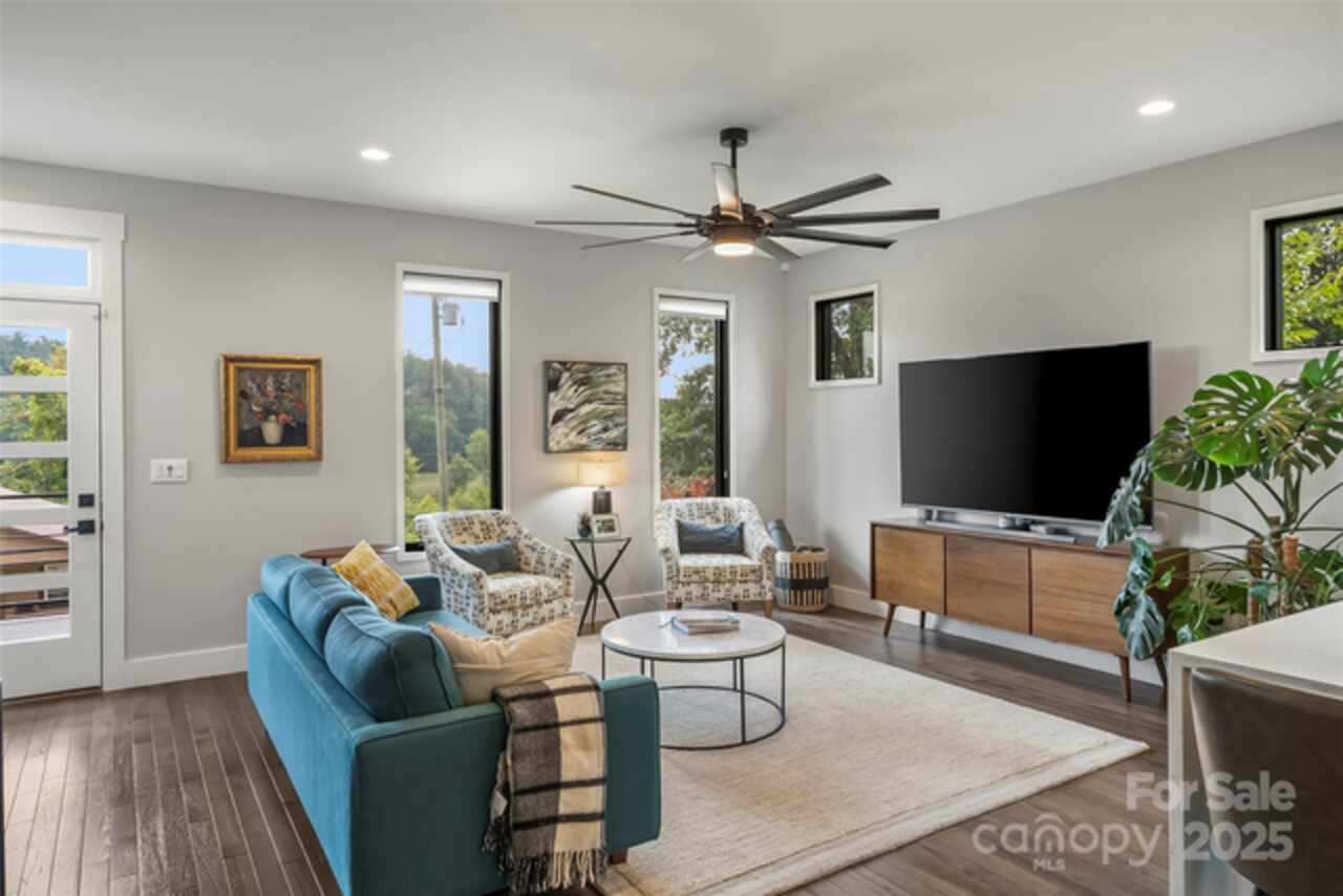 Highly desirable East-West Asheville location with French Broad River and mountain views, and walkable to the River Arts District! Located on a quiet street within walking distance to the river, Carrier park, greenways, shopping and dining. Enjoy views of the beautiful Biltmore property right across the river. House is only 5 years old and shows like new! Top quality materials used in this 3-story home with beautiful appointments including Hickory wood floors, ceramic tile bath floors, river stone and subway tile shower surrounds, quartz countertops, and upgraded lighting. Basement has a 1 car garage, utility room, a full bath and a finished flex room/bedroom with built-in cabinets for closet space or drop zone. Basement utility room has washer/dryer and sink hookups, although not currently in use. Main level has an open concept great room, dining room, kitchen and half bath with front, side, and back decks! Upstairs has the primary bedroom with ensuite bathroom, high vaulted ceiling and private balcony, as well as 2 other bedrooms, another full bath, and laundry. There is an extra parking pad off the top of the driveway. Enjoy the amazing views from both the front and back porches! NO HOA!! Washer, dryer and refrigerator included.