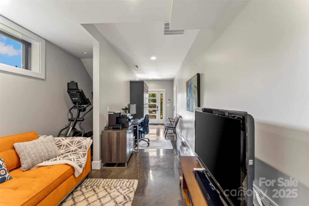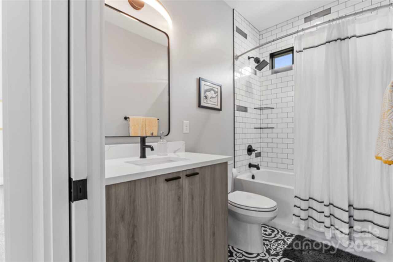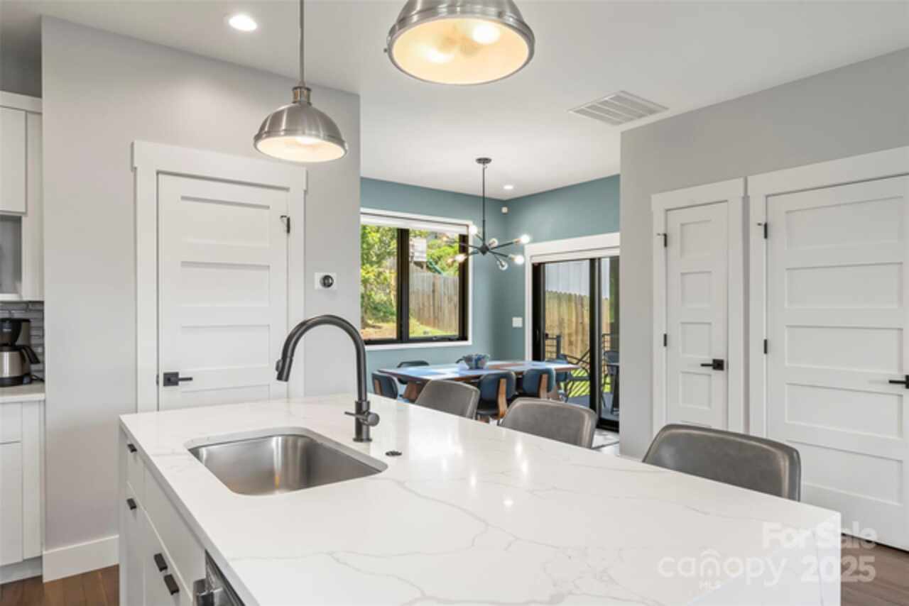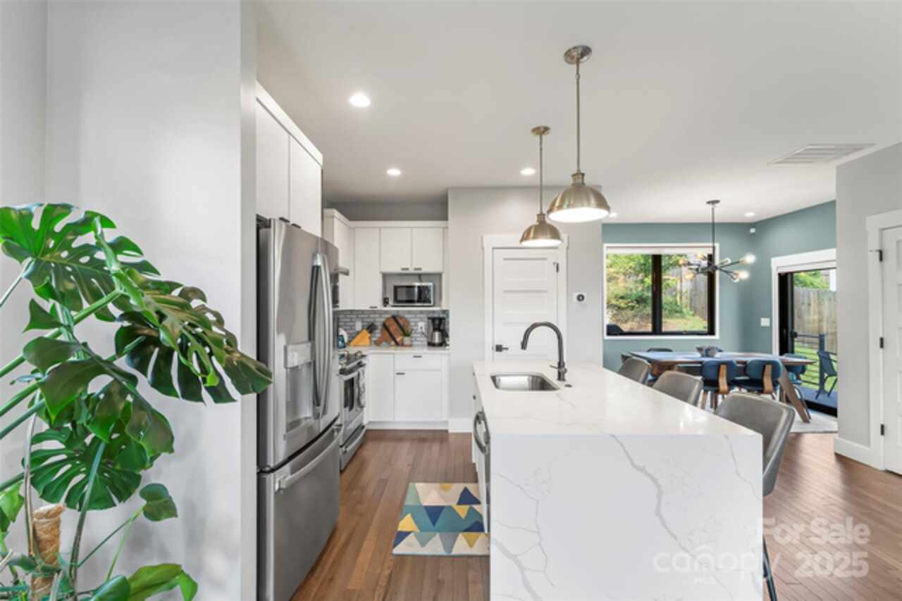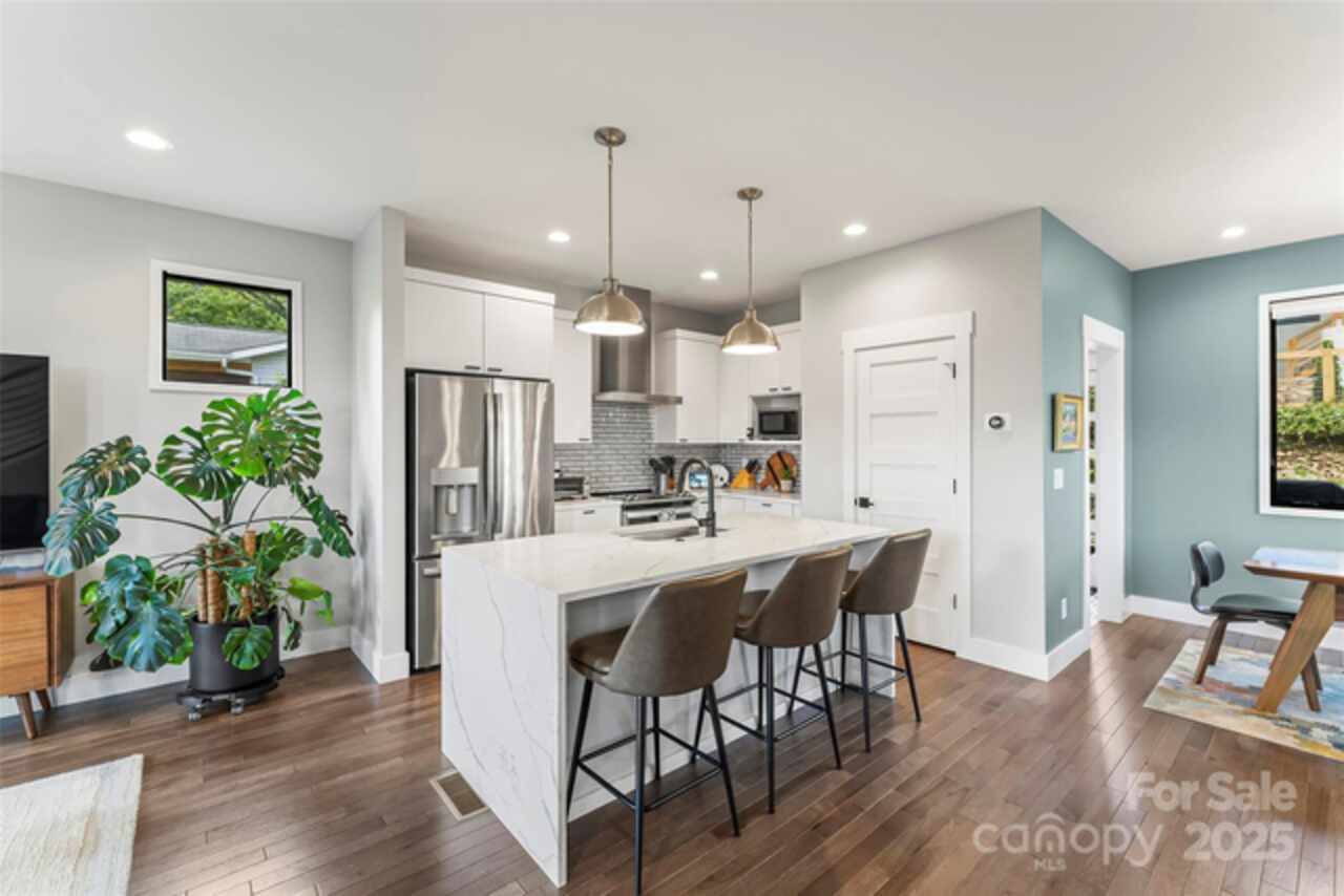 Highly desirable East-West Asheville location with French Broad River and mountain views, and walkable to the River Arts District! Located on a quiet street within walking distance to the river, Carrier park, greenways, shopping and dining. Enjoy views of the beautiful Biltmore property right across the river. House is only 5 years old and shows like new! Top quality materials used in this 3-story home with beautiful appointments including Hickory wood floors, ceramic tile bath floors, river stone and subway tile shower surrounds, quartz countertops, and upgraded lighting. Basement has a 1 car garage, utility room, a full bath and a finished flex room/bedroom with built-in cabinets for closet space or drop zone. Basement utility room has washer/dryer and sink hookups, although not currently in use. Main level has an open concept great room, dining room, kitchen and half bath with front, side, and back decks! Upstairs has the primary bedroom with ensuite bathroom, high vaulted ceiling and private balcony, as well as 2 other bedrooms, another full bath, and laundry. There is an extra parking pad off the top of the driveway. Enjoy the amazing views from both the front and back porches! NO HOA!! Washer, dryer and refrigerator included.