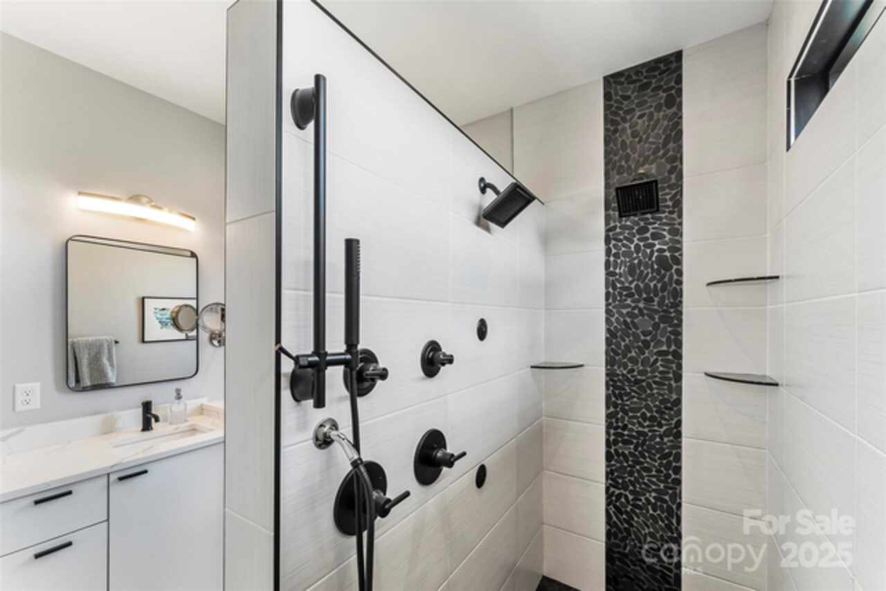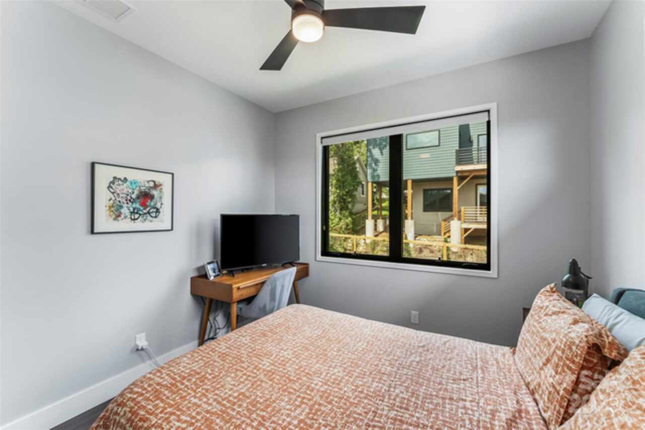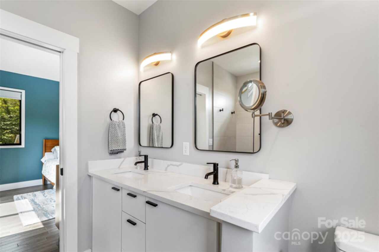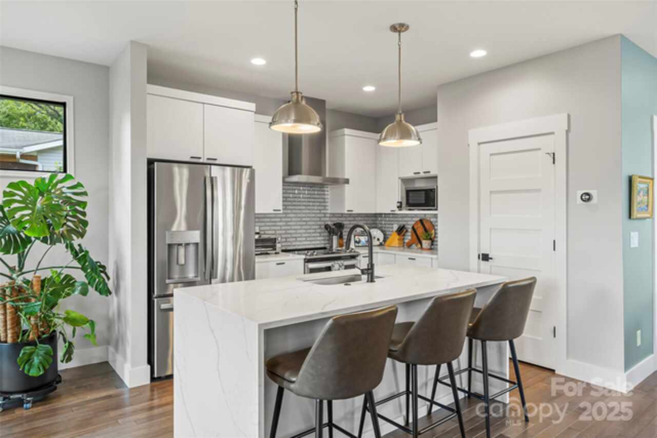 Highly desirable East-West Asheville location with French Broad River and mountain views, and walkable to the River Arts District! Located on a quiet street within walking distance to the river, Carrier park, greenways, shopping and dining. Enjoy views of the beautiful Biltmore property right across the river. House is only 5 years old and shows like new! Top quality materials used in this 3-story home with beautiful appointments including Hickory wood floors, ceramic tile bath floors, river stone and subway tile shower surrounds, quartz countertops, and upgraded lighting. Basement has a 1 car garage, utility room, a full bath and a finished flex room/bedroom with built-in cabinets for closet space or drop zone. Basement utility room has washer/dryer and sink hookups, although not currently in use. Main level has an open concept great room, dining room, kitchen and half bath with front, side, and back decks! Upstairs has the primary bedroom with ensuite bathroom, high vaulted ceiling and private balcony, as well as 2 other bedrooms, another full bath, and laundry. There is an extra parking pad off the top of the driveway. Enjoy the amazing views from both the front and back porches! NO HOA!! Washer, dryer and refrigerator included.