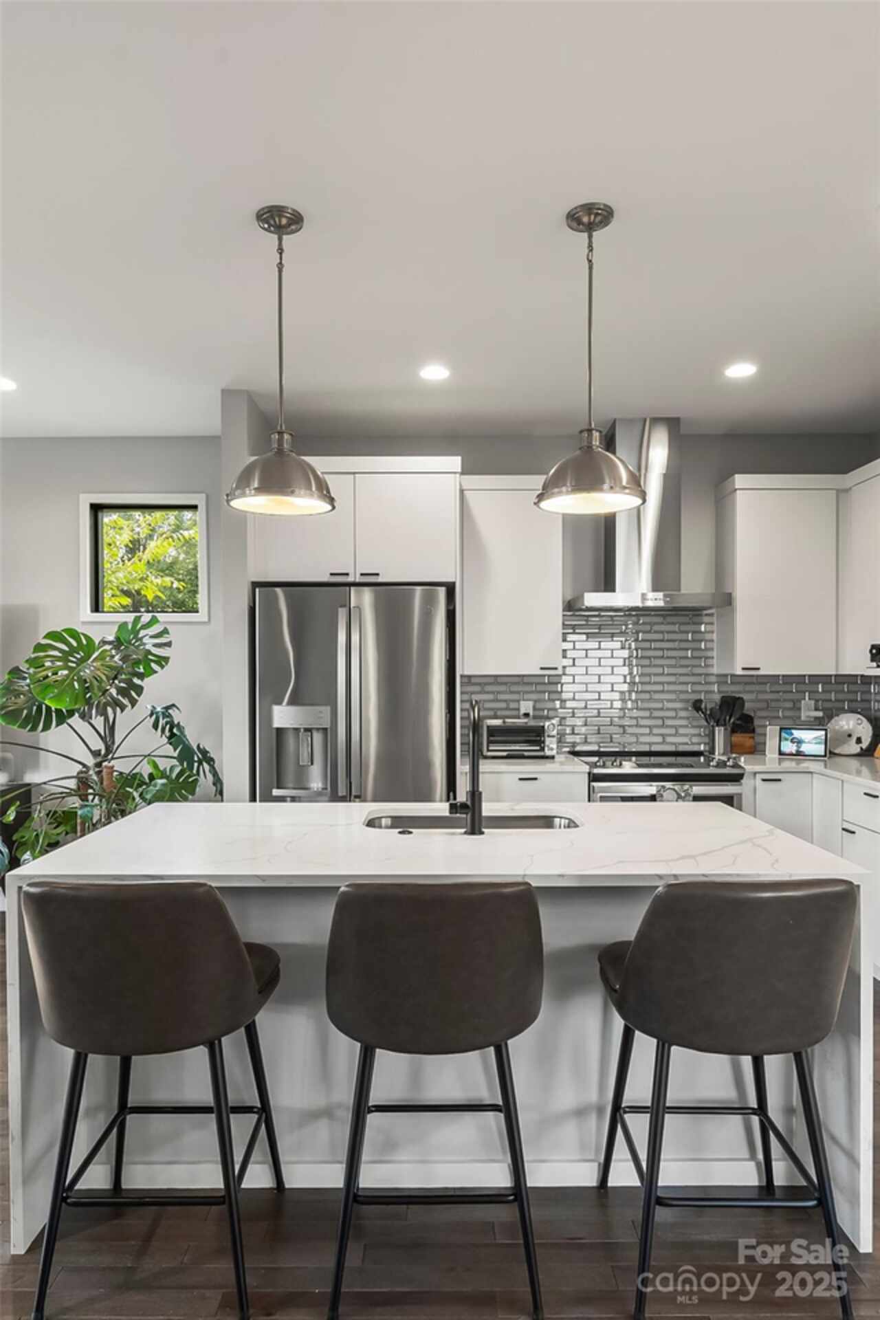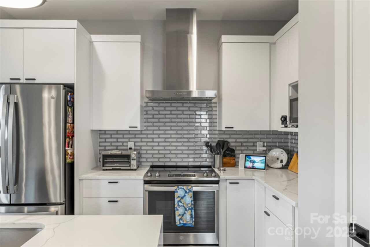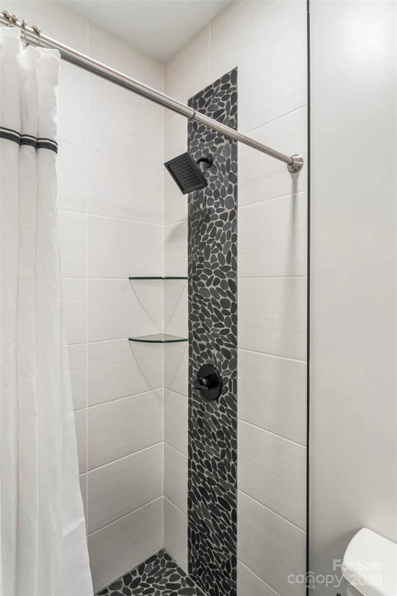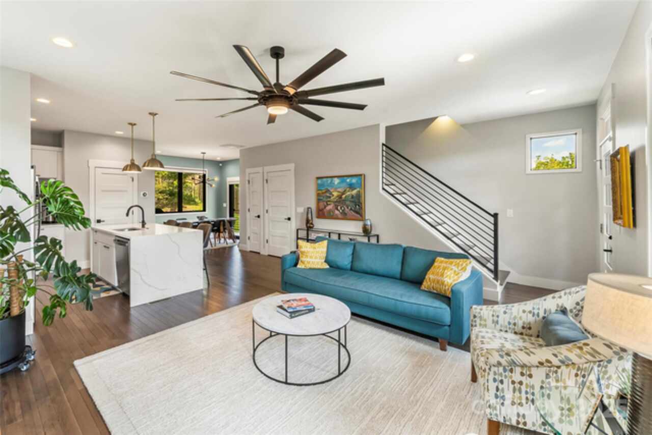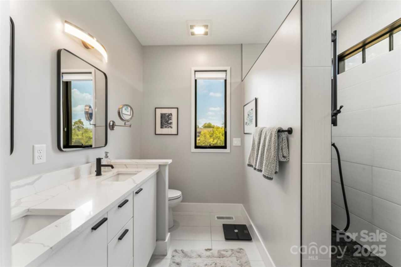 Highly desirable East-West Asheville location with French Broad River and mountain views, and walkable to the River Arts District! Located on a quiet street within walking distance to the river, Carrier park, greenways, shopping and dining. Enjoy views of the beautiful Biltmore property right across the river. House is only 5 years old and shows like new! Top quality materials used in this 3-story home with beautiful appointments including Hickory wood floors, ceramic tile bath floors, river stone and subway tile shower surrounds, quartz countertops, and upgraded lighting. Basement has a 1 car garage, utility room, a full bath and a finished flex room/bedroom with built-in cabinets for closet space or drop zone. Basement utility room has washer/dryer and sink hookups, although not currently in use. Main level has an open concept great room, dining room, kitchen and half bath with front, side, and back decks! Upstairs has the primary bedroom with ensuite bathroom, high vaulted ceiling and private balcony, as well as 2 other bedrooms, another full bath, and laundry. There is an extra parking pad off the top of the driveway. Enjoy the amazing views from both the front and back porches! NO HOA!! Washer, dryer and refrigerator included.
