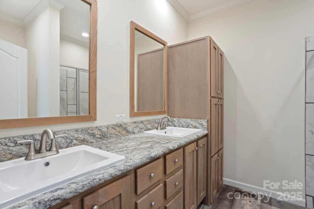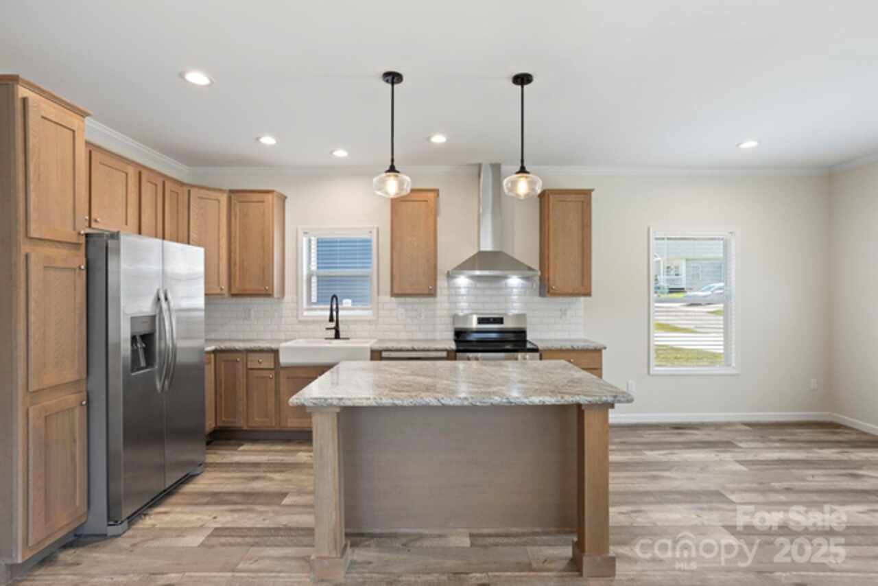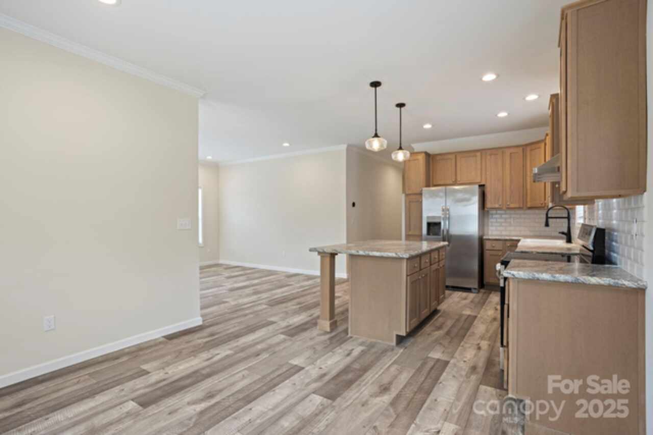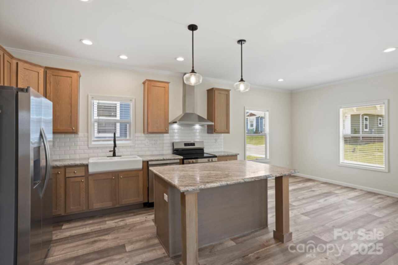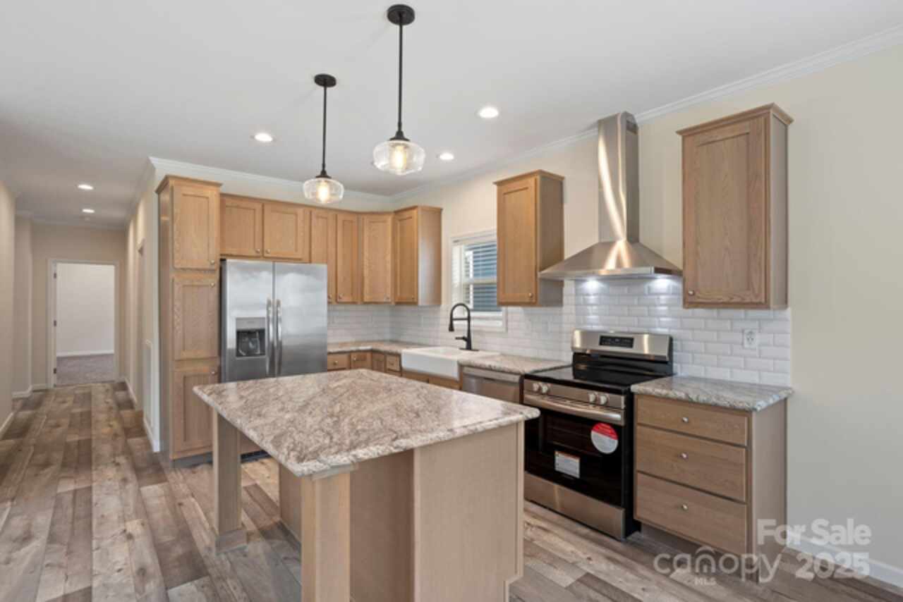 Welcome to the beautiful community of Brooks Cove—just 10 minutes from downtown Asheville! This brand-new, move-in ready home offers the perfect blend of style, comfort, and convenience. From the charming covered front porch, step into a spacious, open-concept layout featuring a bright great room and a kitchen with an oversized island, upgraded appliances, tile backsplash, abundant counter space, and a generous dining area—ideal for entertaining. The primary suite is a true retreat with a spa-like bathroom, including dual vanities, raised-height cabinets, a walk-in tiled shower, and plenty of storage. Two additional bedrooms offer flexibility for guests, a home office, or creative space. The large guest bathroom is equally well-appointed. Enjoy the outdoors year-round with a rear covered porch and a fully privacy-fenced backyard, perfect for pets, play, or peaceful relaxation. Additional features include recessed lighting, front yard irrigation, and Ecobee smart thermostats.