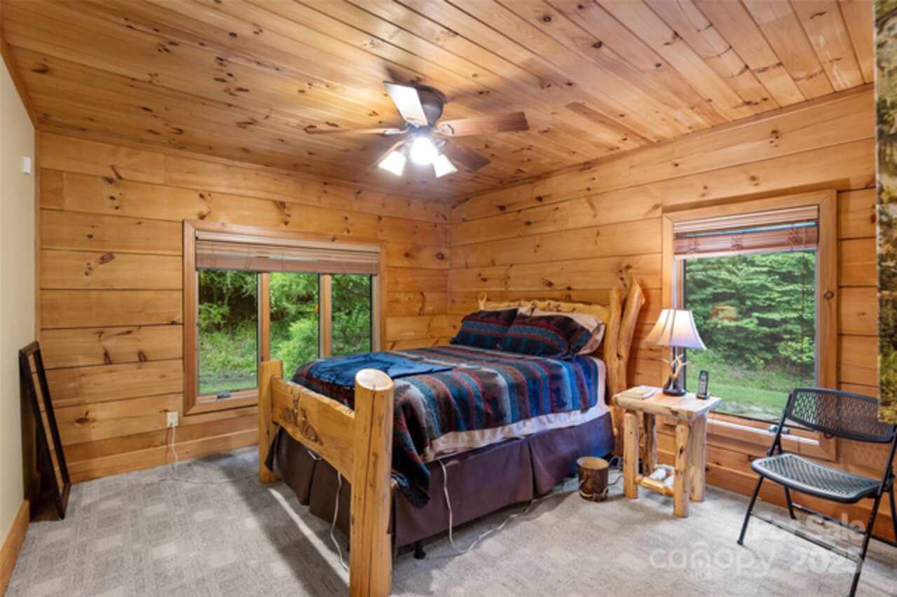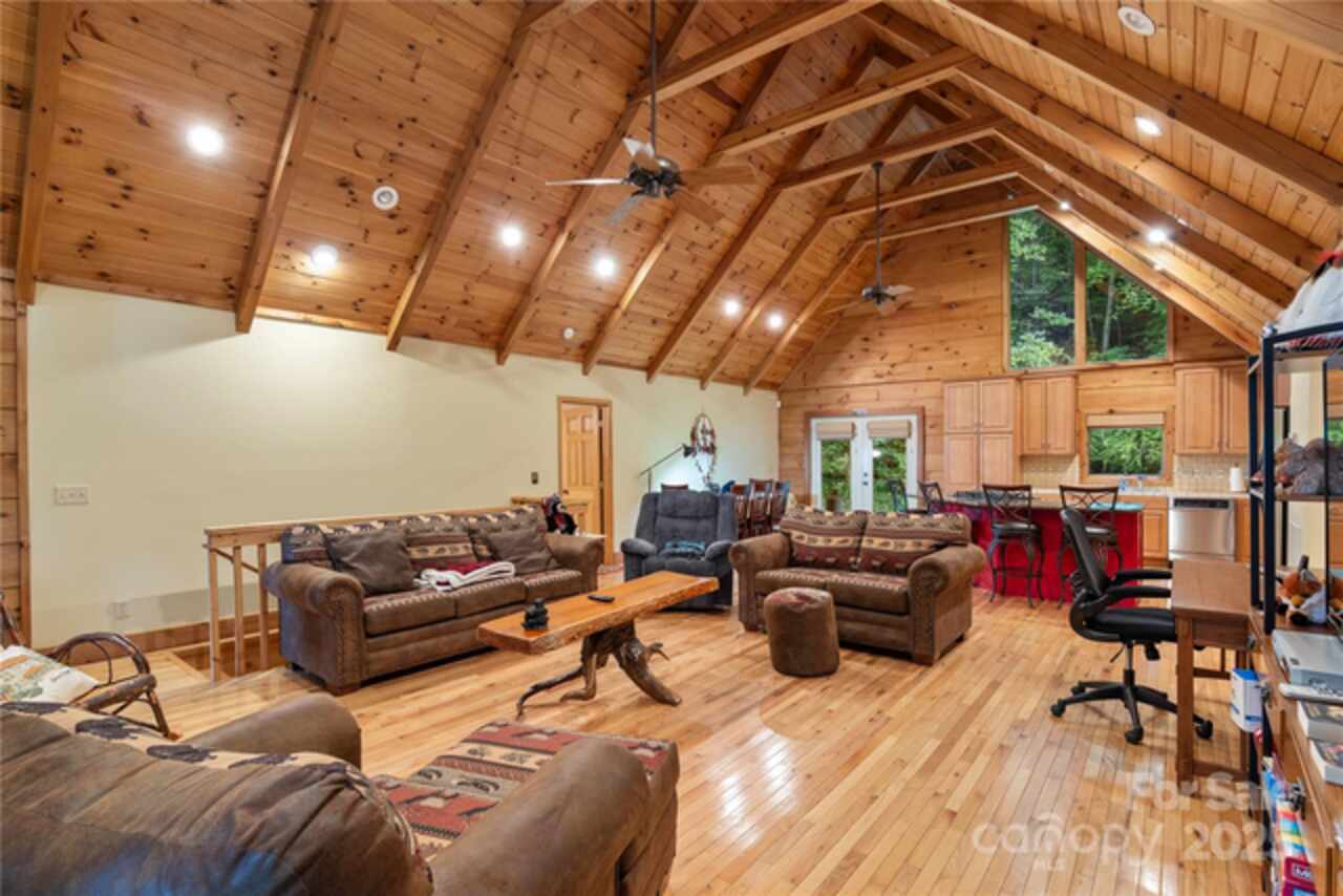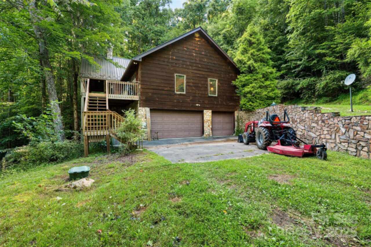 A rare and impressive legacy property of approximately 191 acres offering an extensive ¾-mile (apx) of river frontage on Big Laurel Creek, a picturesque and stocked trout stream. This exceptional family compound or mountain cabin getaway is a true escape from the ordinary, combining rustic charm with modern conveniences. The centerpiece of the property is a magnificent log cabin, featuring timeless A-frame construction with oversized rooms designed for comfort and gathering. Step inside to an awe-inspiring open-concept great room with 19-foot ceilings and impressive post and beam construction. Expansive windows fill the space with natural light, offering stunning views of the surrounding forest and rushing creek below. The main level boasts a smart, split-bedroom design with three bedrooms and two full baths, while the lower level provides additional living space with a large family room, a guest bedroom, and an ensuite full bath. Designed for all-season enjoyment, the home is equipped with two furnaces, central air conditioning, and a propane furnace for cozy comfort. It features two stone fireplaces; the main level has a built-in woodstove insert, and the lower level has a gas log insert. The large, partially covered, full-length front deck and lower level fully covered deck is a perfect spot for morning coffee, evening campfires, or simply listening to the tranquil sounds of the rushing creek. You can rest assured knowing this property withstood the recent 100-year+ storm with no damage whatsoever. The property itself is a recreational paradise. It features extensive trails perfect for ATVs or hiking. A small cleared pasture area at the front of the site is ideal for a garden or family picnics. The land is south-facing and reaches a ridge top to the north, offering breathtaking views and plenty of potential for additional homesites. This property is comprised of 4 different tax parcels, offering a myriad of possibilities. In addition to the main cabin, there is a detached 1-bedroom, 1-bath guest cabin (approximately 655 sq. ft., not included in the primary square footage) and a large 3-car garage to store all your toys and equipment. The convenience of high-speed fiber internet ensures you can stay connected while enjoying mountain seclusion. With minimal zoning and no known private restrictions, this property offers incredible potential. Its location provides seclusion while remaining highly accessible: just 20 minutes from Wolf Laurel ski resort, 30 minutes from downtown Asheville, 15 minutes from Mars Hill, and 25 minutes from Weaverville. This is an unparalleled opportunity you won't want to miss. Can be purchased mostly furnished, if desired and could make for a great short term vacation rental when out of town! Please see video link: https://youtu.be/AuWer9xEk7o