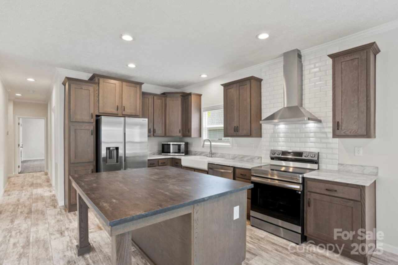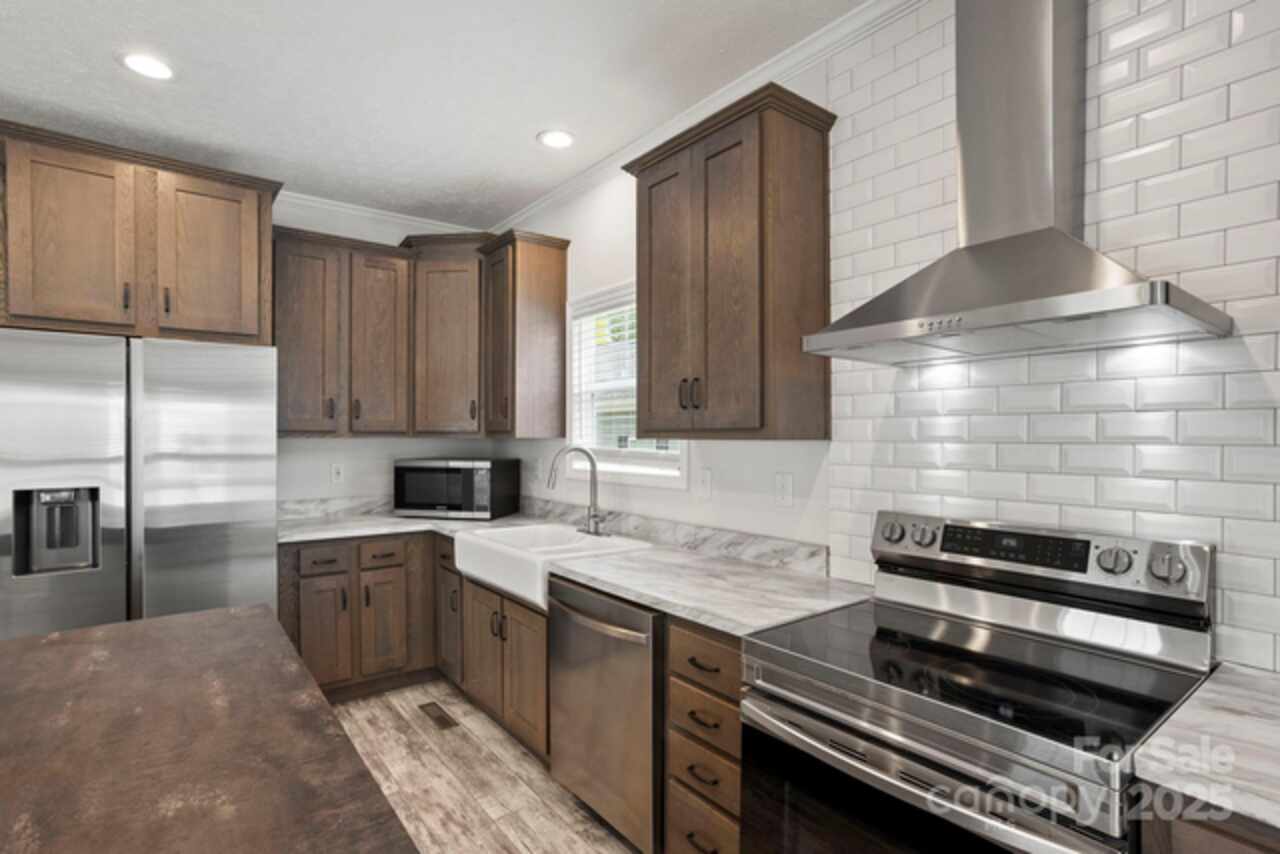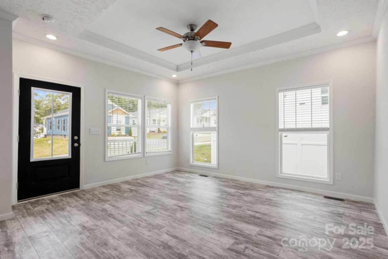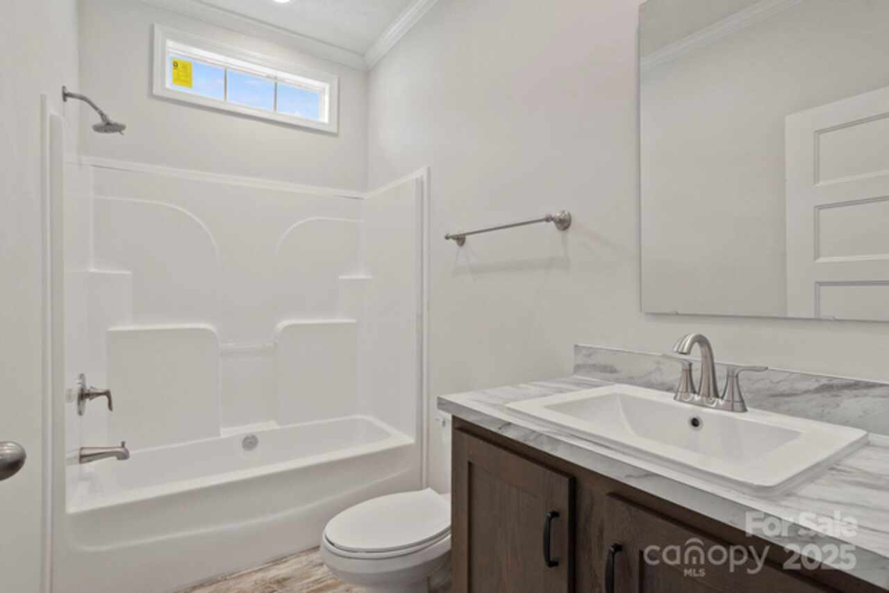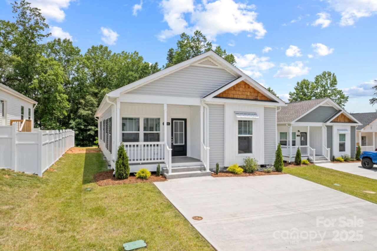 Welcome to the beautiful community of Brooks Cove—just 10 minutes from downtown Asheville! This brand-new, move-in ready home offers the perfect blend of style, comfort, and convenience. From the charming covered front porch, step into a spacious, open-concept layout featuring a bright great room and a kitchen with an oversized island, upgraded appliances, tile backsplash, abundant counter space, and a generous dining area—ideal for entertaining. The primary suite is a true retreat with a spa-like bathroom, including dual vanities, raised-height cabinets, a walk-in tiled shower, and plenty of storage. Two additional bedrooms offer flexibility for guests, a home office, or creative space. The large guest bathroom is equally well-appointed. Enjoy the outdoors year-round with a rear covered porch and a backyard perfect for pets, play, or peaceful relaxation. Additional features include recessed lighting, front yard irrigation, and Ecobee smart thermostats.
