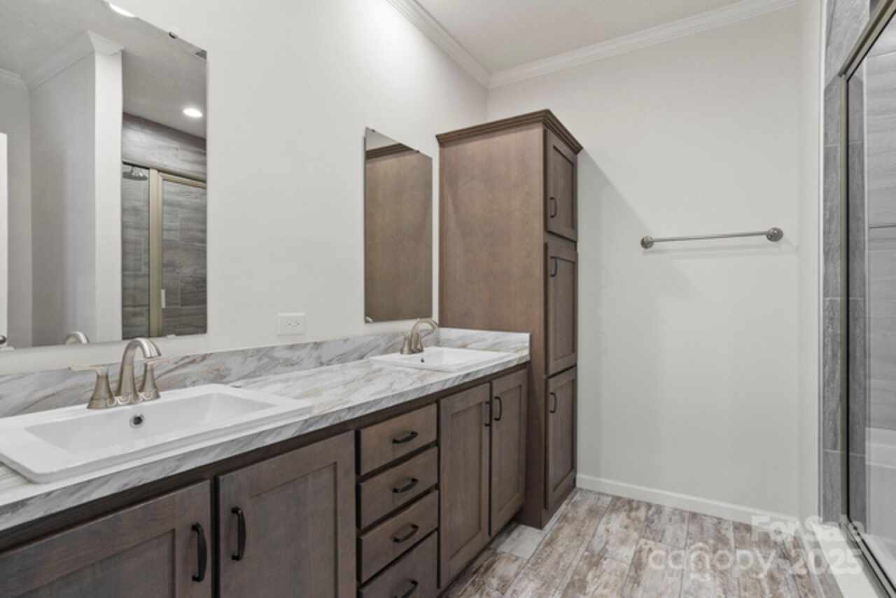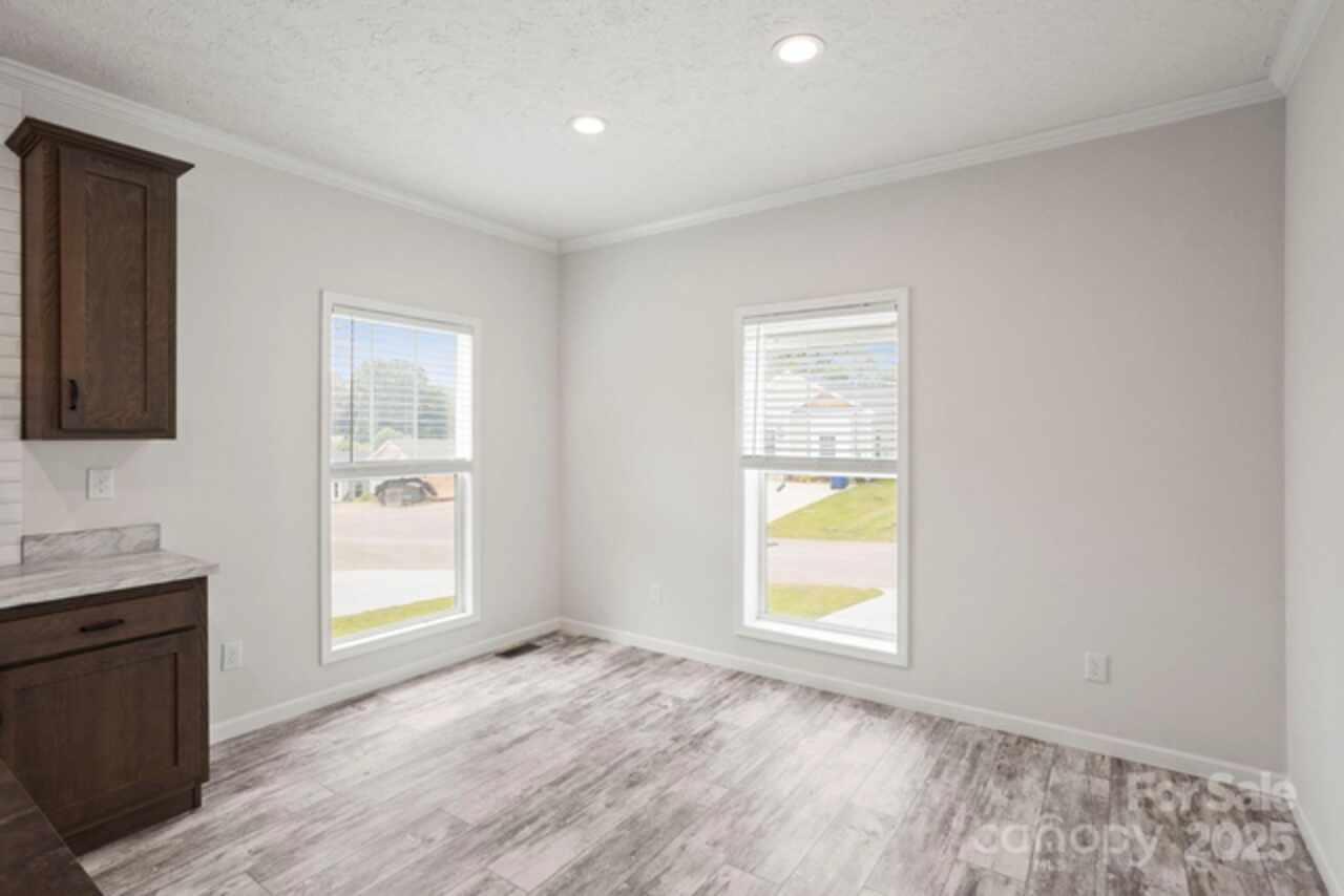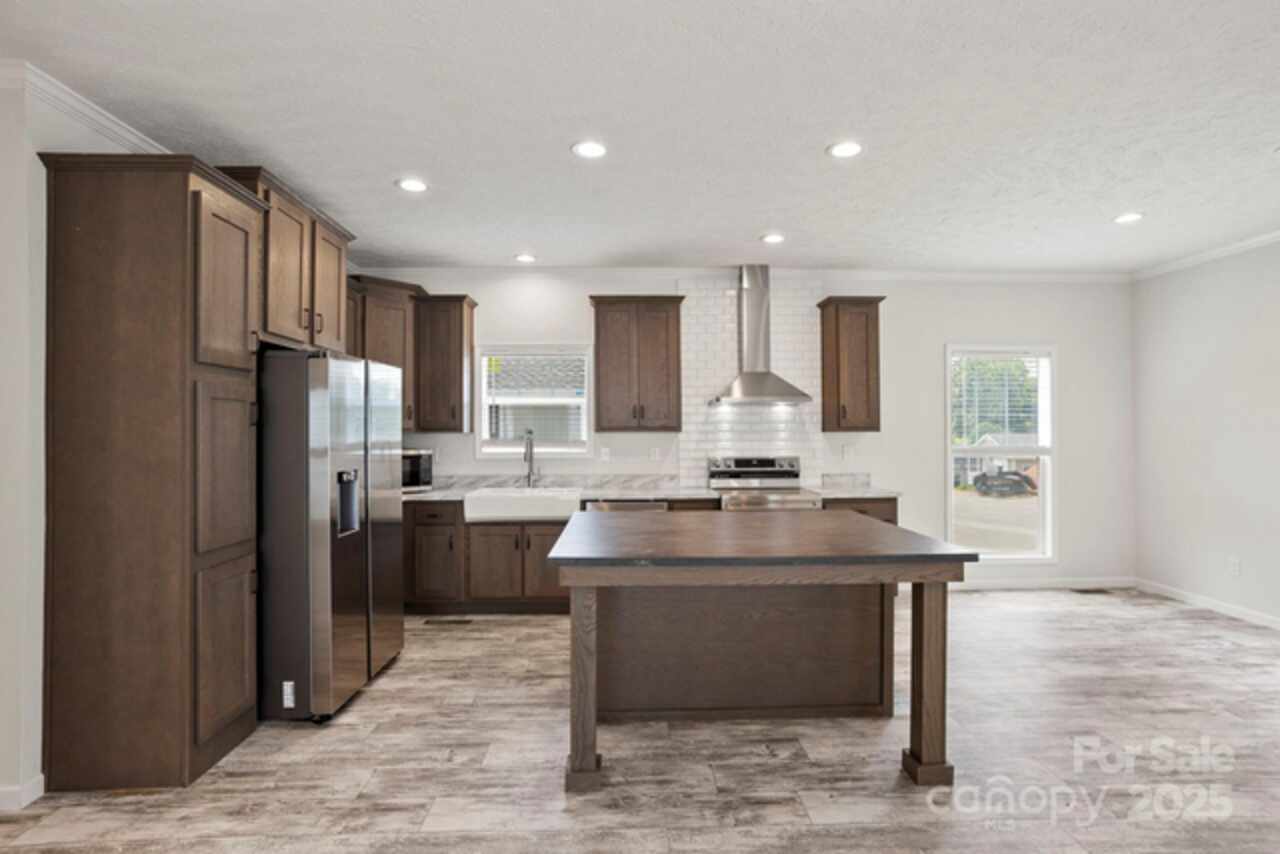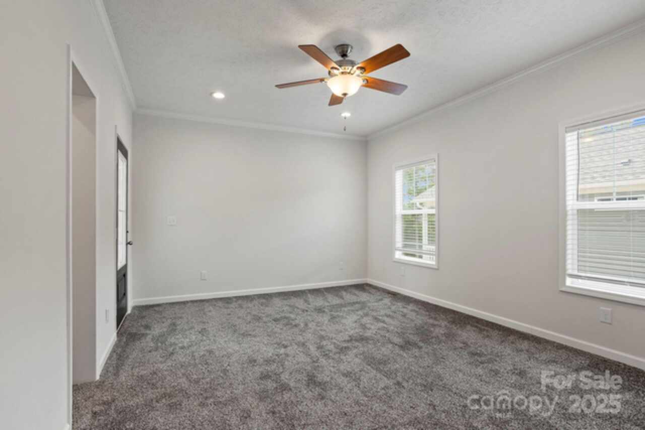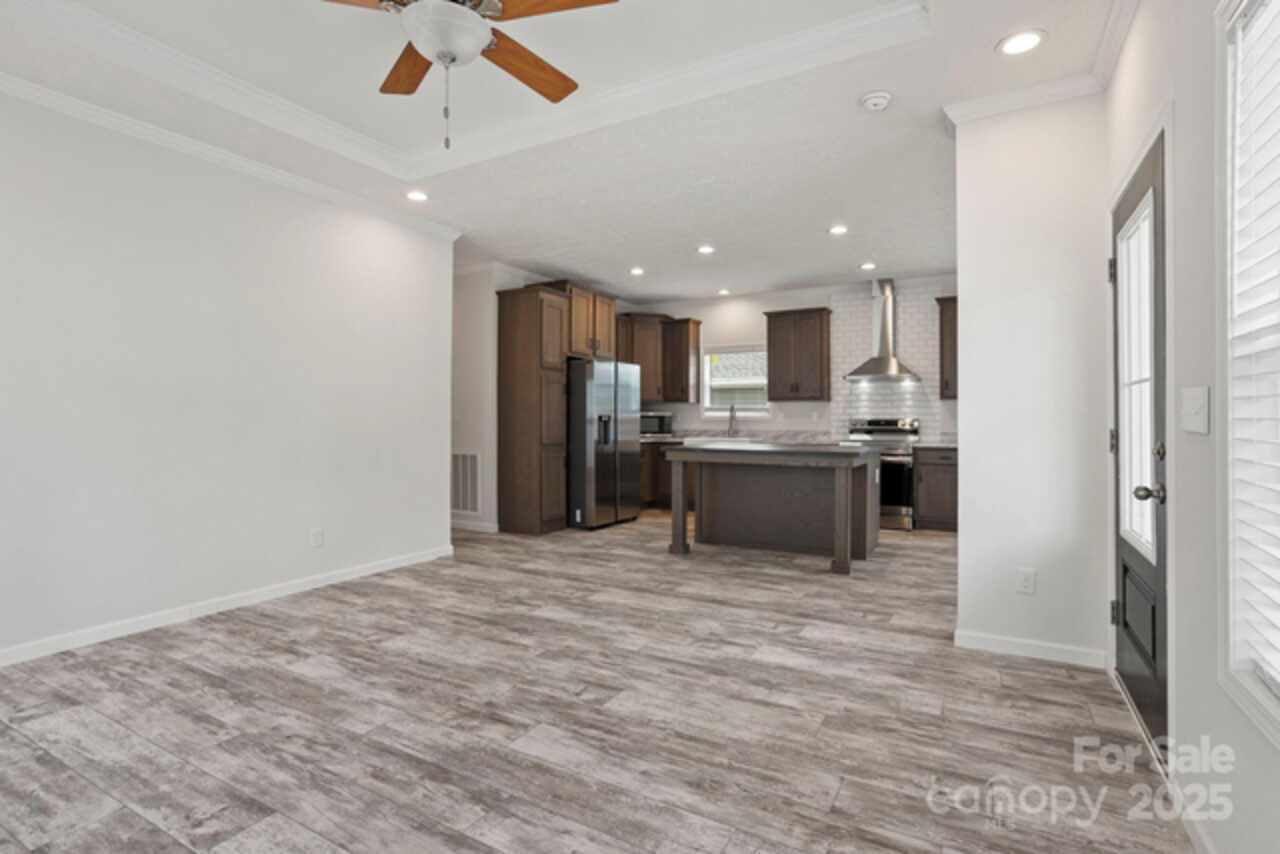 Welcome to the beautiful community of Brooks Cove—just 10 minutes from downtown Asheville! This brand-new, move-in ready home offers the perfect blend of style, comfort, and convenience. From the charming covered front porch, step into a spacious, open-concept layout featuring a bright great room and a kitchen with an oversized island, upgraded appliances, tile backsplash, abundant counter space, and a generous dining area—ideal for entertaining. The primary suite is a true retreat with a spa-like bathroom, including dual vanities, raised-height cabinets, a walk-in tiled shower, and plenty of storage. Two additional bedrooms offer flexibility for guests, a home office, or creative space. The large guest bathroom is equally well-appointed. Enjoy the outdoors year-round with a rear covered porch and a backyard perfect for pets, play, or peaceful relaxation. Additional features include recessed lighting, front yard irrigation, and Ecobee smart thermostats.