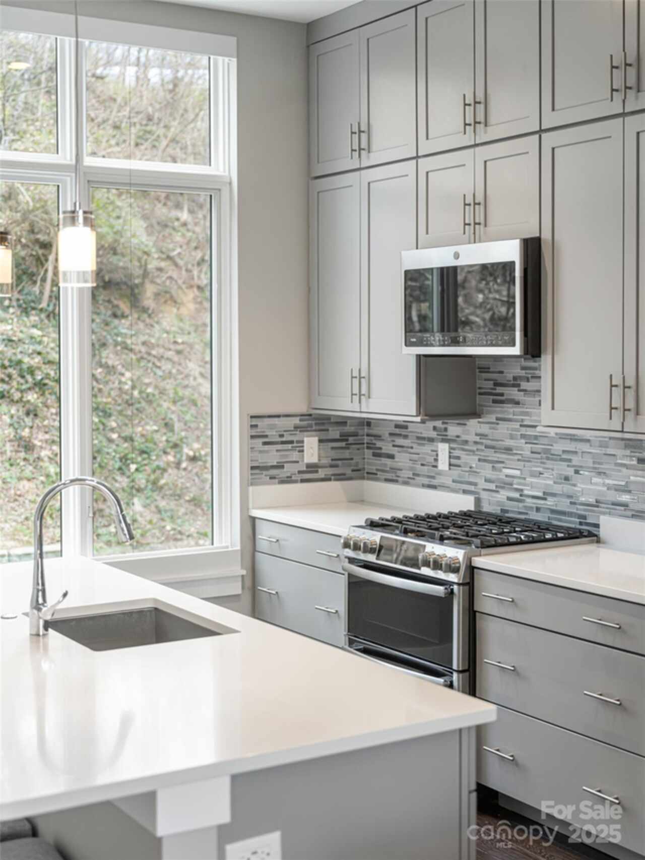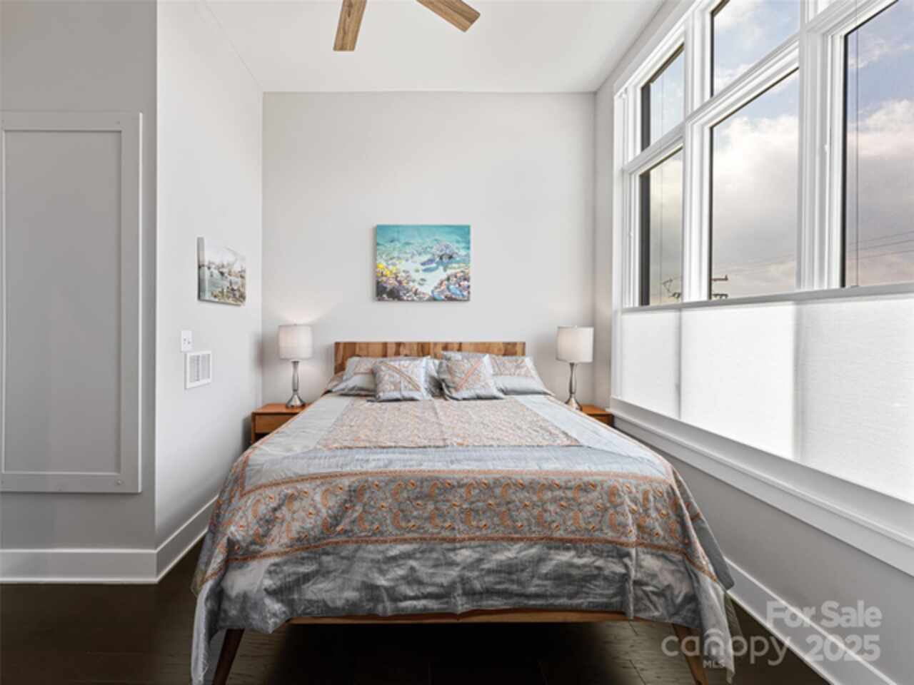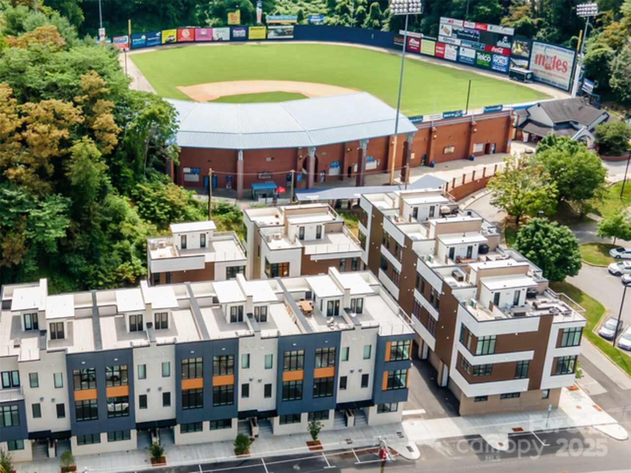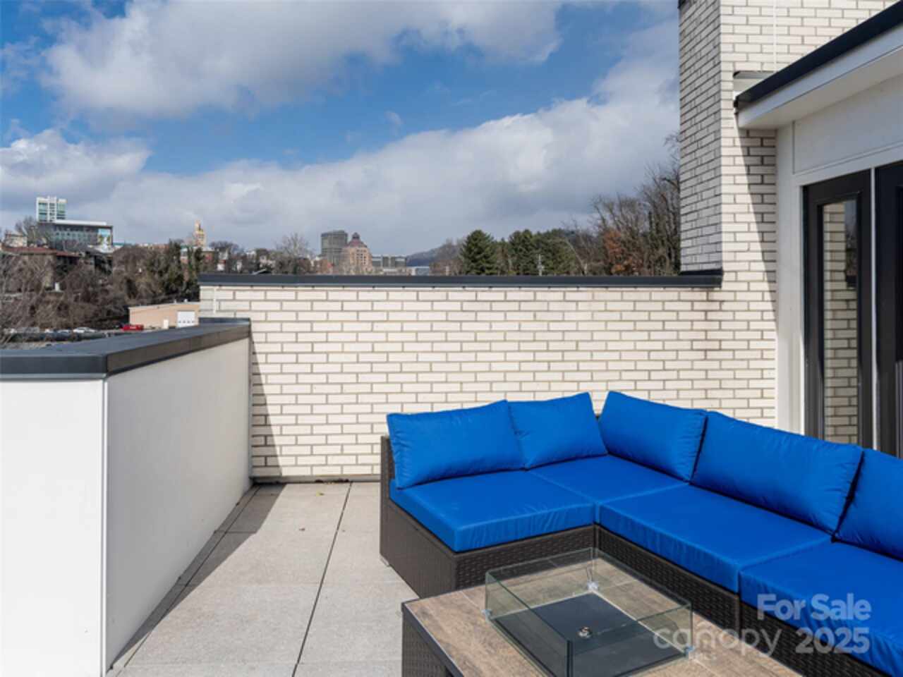 Experience the epitome of modern urban living in this stunning 3-bedroom, 3.5-bathroom townhome in the heart of downtown Asheville. Designed with sleek contemporary architecture, this exquisite residence features expansive windows that flood the space with natural light, soaring 10-foot ceilings, and a thoughtfully designed open-concept main living area. Every bedroom is a private retreat, complete with en-suite bathrooms, offering both luxury and comfort. The three-level interior is complemented by a huge, private rooftop terrace, perfect for entertaining or unwinding under the stars, with gas hookups for grill and firepit. For ultimate convenience, enjoy the attached two-car garage and the option for a private elevator. Nestled in an unbeatable location, just one block from the vibrant Brewery District, McCormick Field, and mere moments away from the charm & culture of downtown Asheville. (not in a flood zone)