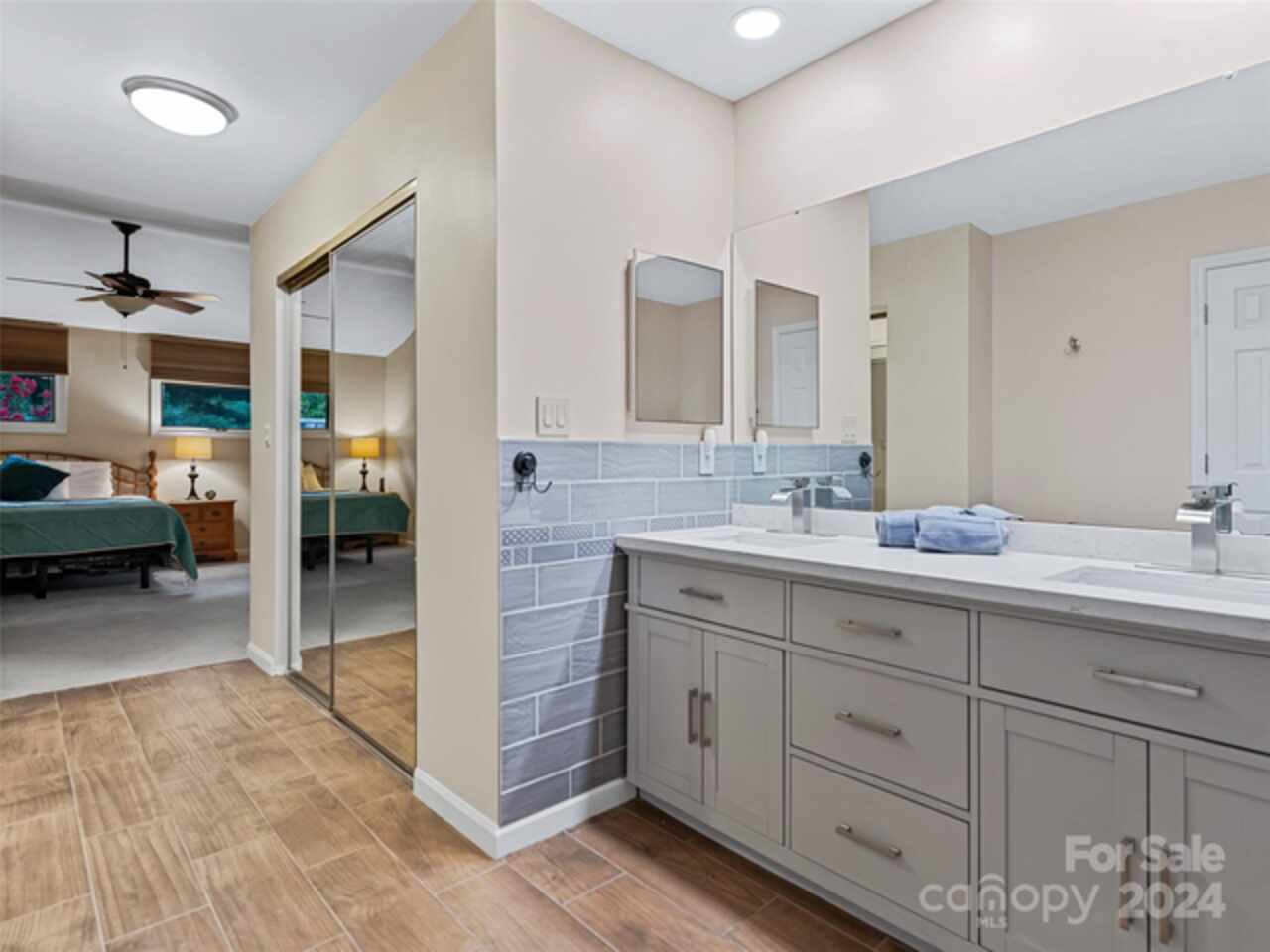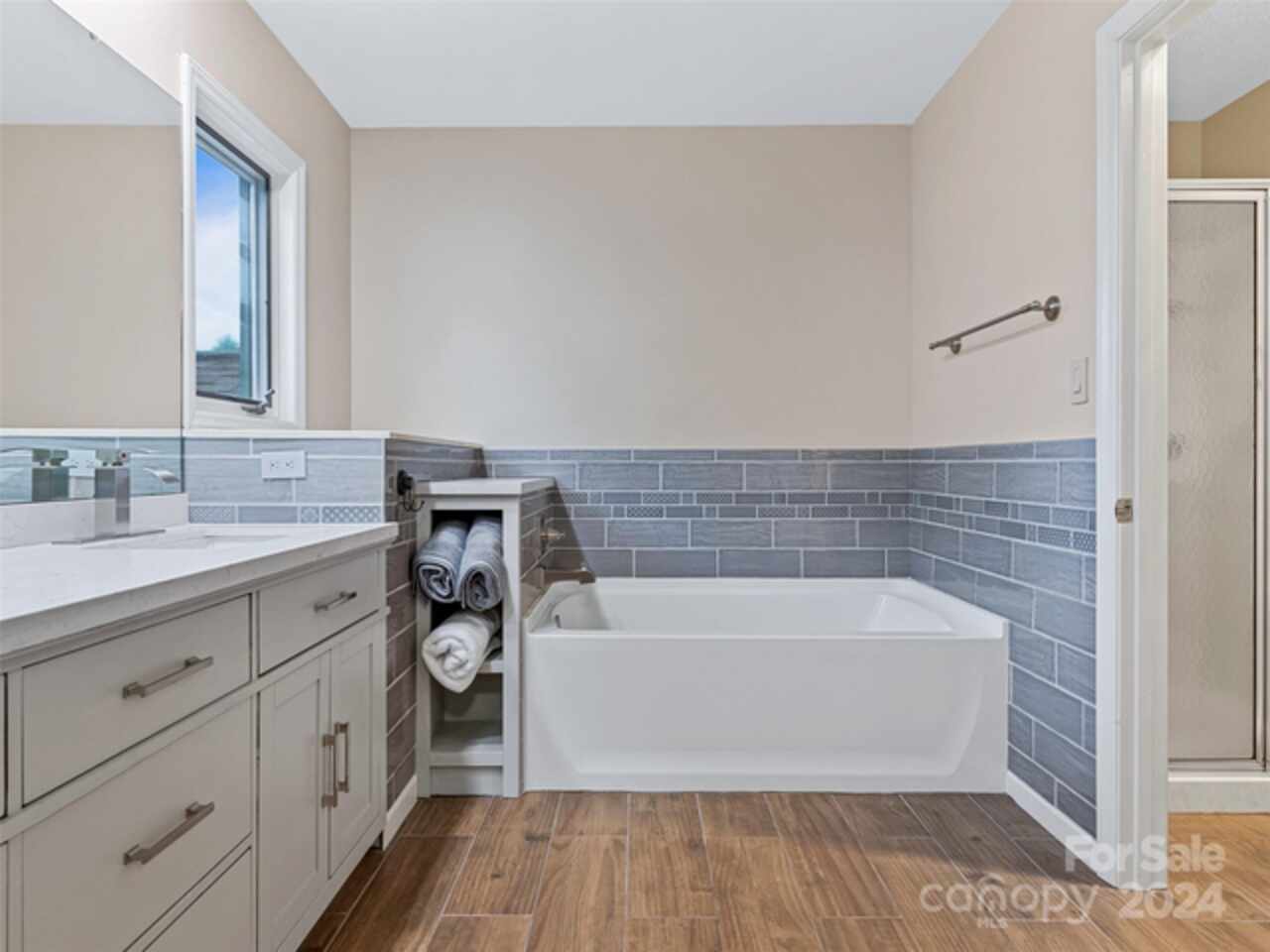 Experience the ease of living in this move-in-ready townhome, nestled in the desirable Deerwood community in South Asheville. Just 15 minutes from downtown, this home offers access to a pool, pickleball courts, and tennis courts—perfect for staying active and social. The main floor features wood floors, an open kitchen with high-end appliances, granite counters, and bar seating, and a spacious living room with a raised ceiling and access to a back deck where you can unwind and enjoy the sights and sounds of local birds. The primary suite includes two walk-in closets, and the ensuite bathroom features a soaking tub with a tile inlay, a new double vanity, and a convenient laundry chute. With ample storage throughout and an attached two-car garage, this home offers comfort and practicality. Located just 15 minutes from Asheville Airport and two minutes from the Blue Ridge Parkway.
