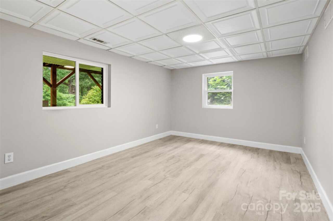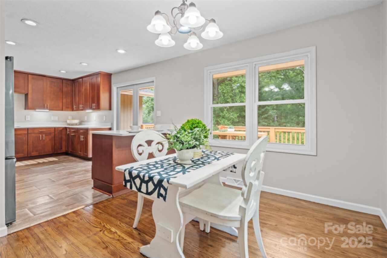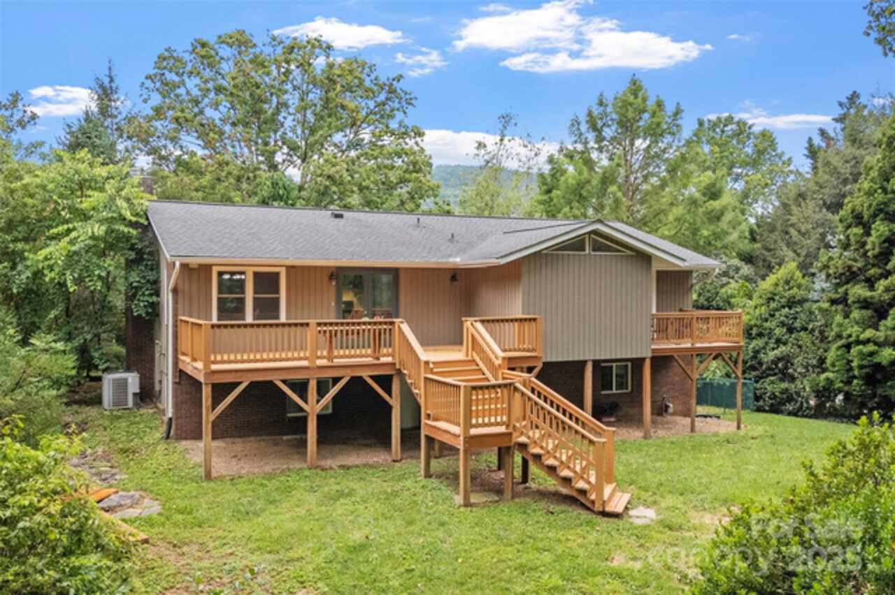 This spacious 5/3 home is set on a peaceful cul-de-sac and offers the perfect blend of privacy, functionality, and style. Inside, you'll find bright, modern living spaces with hardwoods, a beautifully updated kitchen, and a cozy brick fireplace with wood stove insert. The finished lower level provides flexible space for guests, home office, or a second living area, complete with its own bath and built-ins. Whole-house water filtration system, fresh paint throughout, and an updated bathroom. Outside, the expansive deck overlook a large, private yard with master gardener-designed hummingbird and pollinator gardens, mature trees, and fenced dog area with pet door access from the attached garage. There is also a detached garage with electric. Minutes from downtown Asheville, yet tucked into a tranquil wooded setting, this home offers the best of both worlds—peaceful retreat and urban convenience. Don't miss your chance to own this thoughtfully updated gem in the heart of Beaverdam!