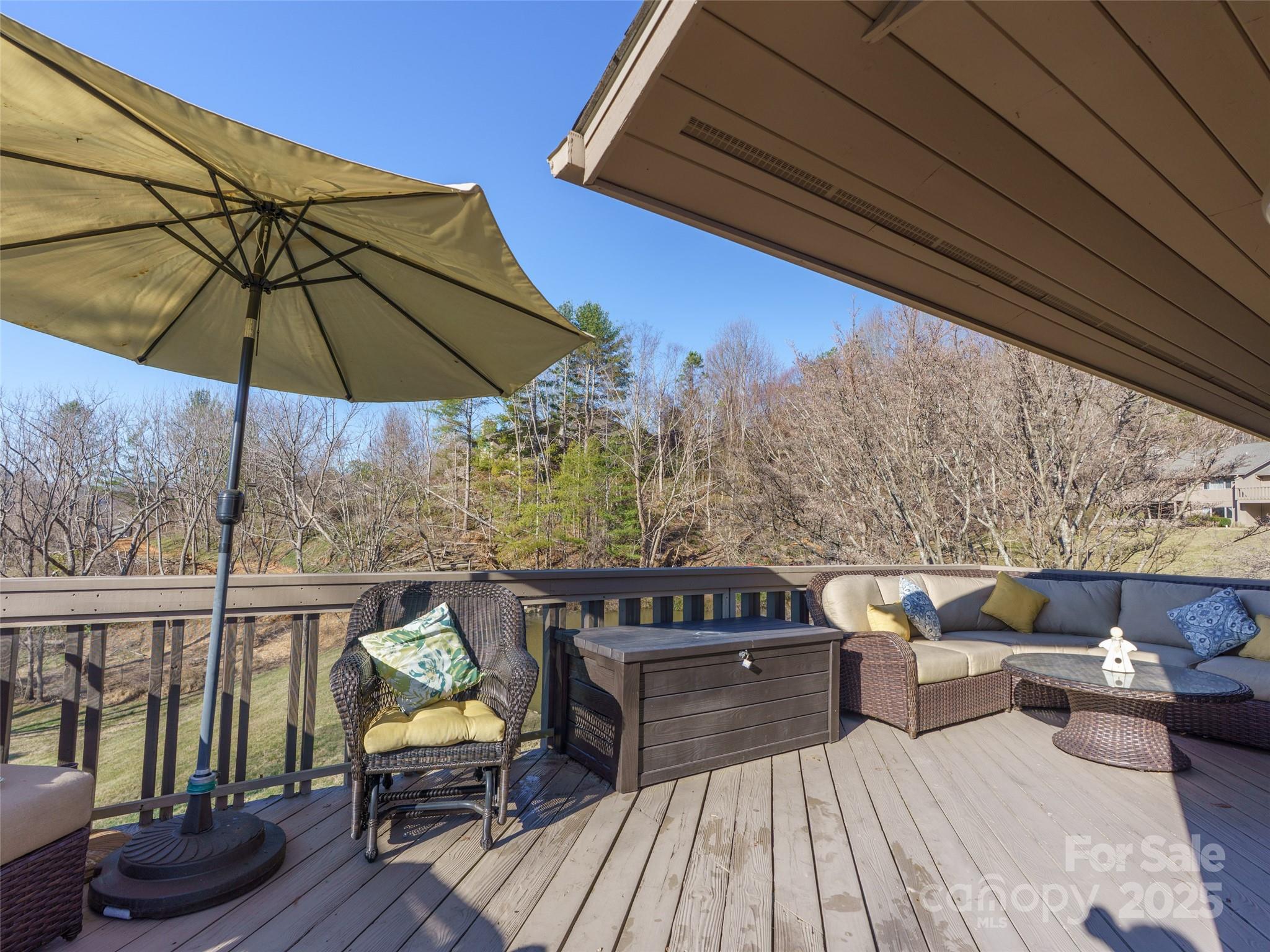 Wake up to a mountain panorama and a tranquil pond view. This 3-bedroom, 3-bath condominium at Beaverdam Run enjoys one of the community’s most sought-after settings, with sweeping vistas to the east and south and a peaceful view of the community pond. Imagine lingering over breakfast or dinner on the wraparound porch as the sun rises or sets over the Blue Ridge—truly an unforgettable backdrop. Inside, the main level features a bright and cheerful kitchen with a pantry, breakfast nook, and convenient access to the grill. The living room features a locally crafted mantle atop the stone fireplace. The primary suite boasts an updated bathroom and an enlarged walk-in closet, while the second main-level bedroom—currently used as an office with built-ins—can easily be converted into an en-suite guest room with the addition of a simple pocket door. Downstairs, you’ll find two additional bedrooms, a large family/rec room with its own fireplace, and a heated storage/exercise area (not counted in the square footage) that’s perfect for hobbies or workouts. Beaverdam Run is a gated, 115-acre community in North Asheville offering resort-style amenities: indoor pool, clubhouse, tennis and pickleball, fitness center, gardens, walking trails, and a pond with a soothing water feature. And you’re just about 3 miles from grocery shopping, restaurants, and everyday conveniences—perfect for combining mountain serenity with in-town ease. Lawn maintenance is included—just lock, leave, and enjoy the mountains.