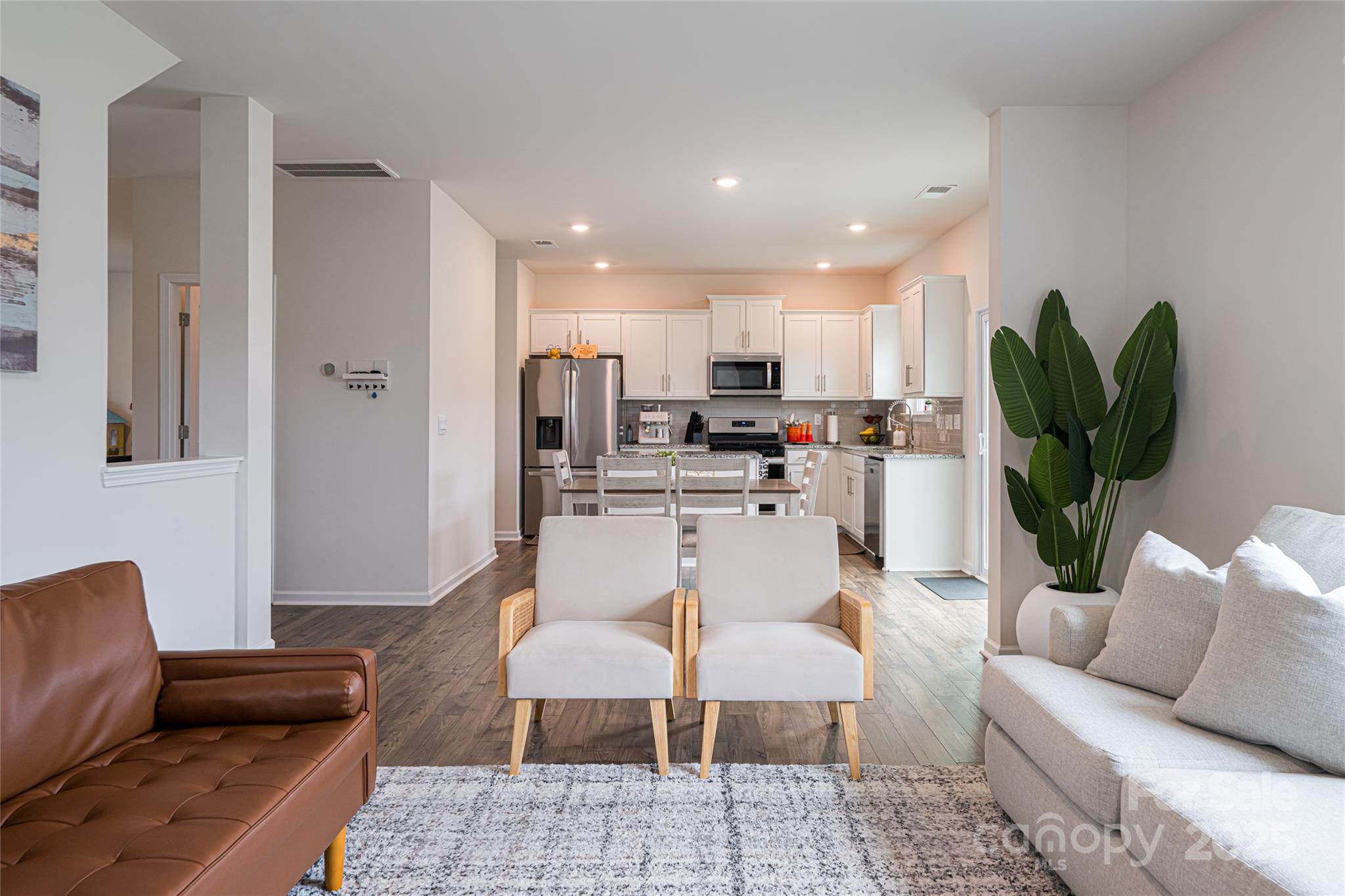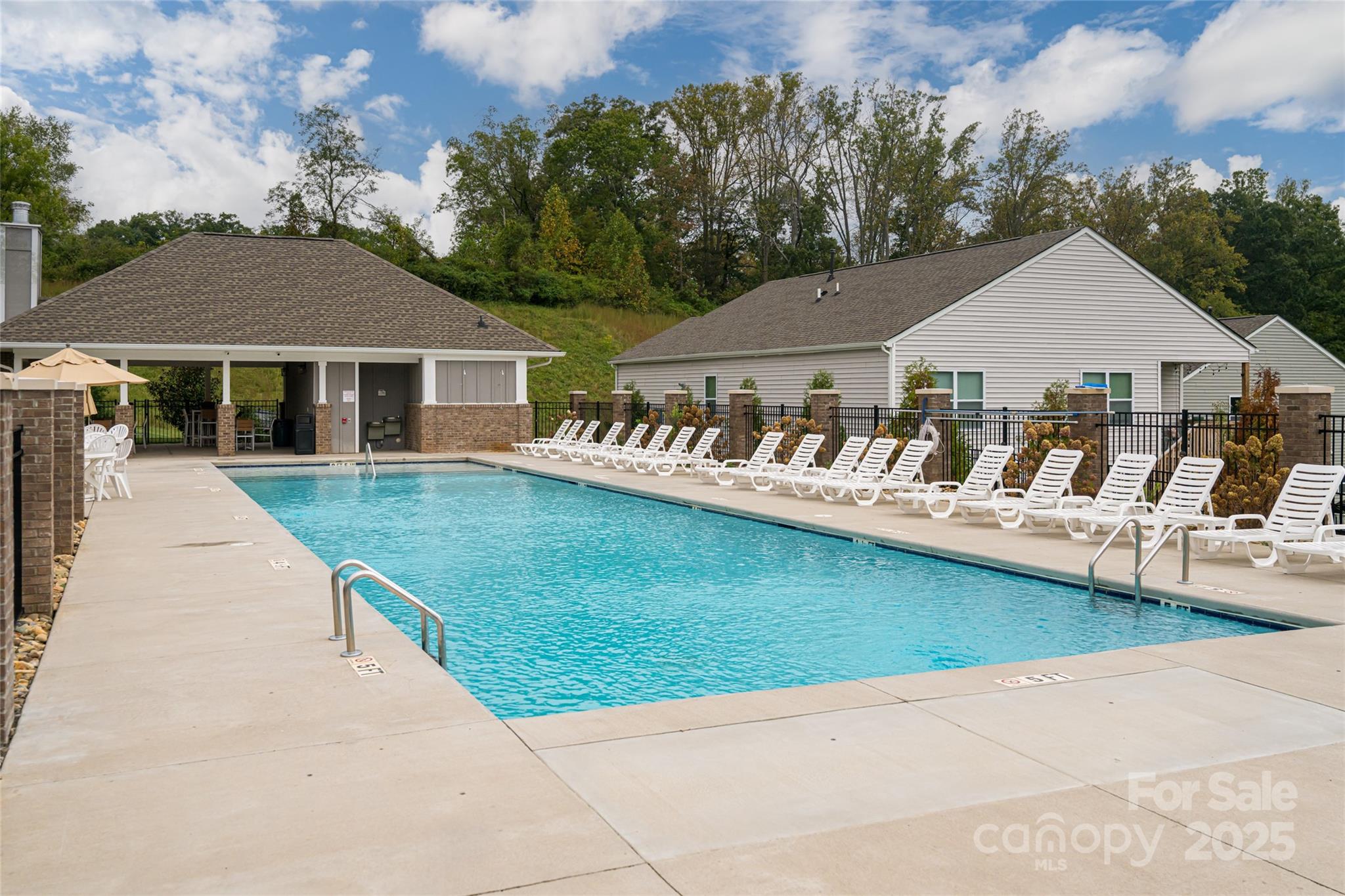 Welcome to 150 Monroe Creek Blvd, a stunning single-family residence built in 2023, offering the desirable Pinehurst floor plan in the sought-after Fountain Park community. This incredible value provides the best of newer construction, complete with the DR Horton Home Warranty, all just under 7 miles from the cultural hub of Downtown Asheville. This spacious two-story home features 4 generous bedrooms and 2.5 baths across 2, 273 square feet of finished living space. The main level boasts a flowing open-concept design, ensuring seamless sight lines from the kitchen through to the family room, perfect for entertaining and modern living. The gourmet kitchen is a chef's delight, equipped with 36-inch white shaker cabinets, elegant granite countertops with a tile backsplash, a center kitchen island, a gas range, and a dedicated pantry. Durable LVP flooring runs throughout the main living areas, beautifully contrasting with the comfortable carpeting in the bedrooms. Upstairs, you will find all four bedrooms, including the private primary retreat which features a luxurious ensuite bathroom and an expansive walk-in closet. For ultimate convenience, the laundry room is also located on the upper level. Interior features are complemented by a cozy Gas Log Fireplace, vaulted ceilings, and an energy saving heat pump for heating and cooling. The exterior features low-maintenance stone veneer and vinyl siding, an attached 2-car garage, a driveway, and a welcoming Front Porch, Patio, and Rear Porch where you can relax and enjoy the Mountain Views. As a resident of Fountain Park, you gain exclusive access to fantastic community amenities, including an Outdoor Pool and Cabana, for a very low HOA fee. Don't miss this opportunity to own a nearly new home close to everything Asheville has to offer!