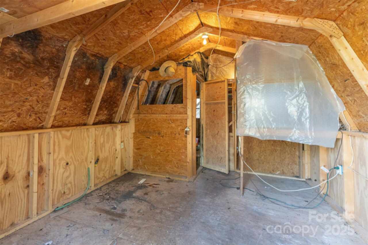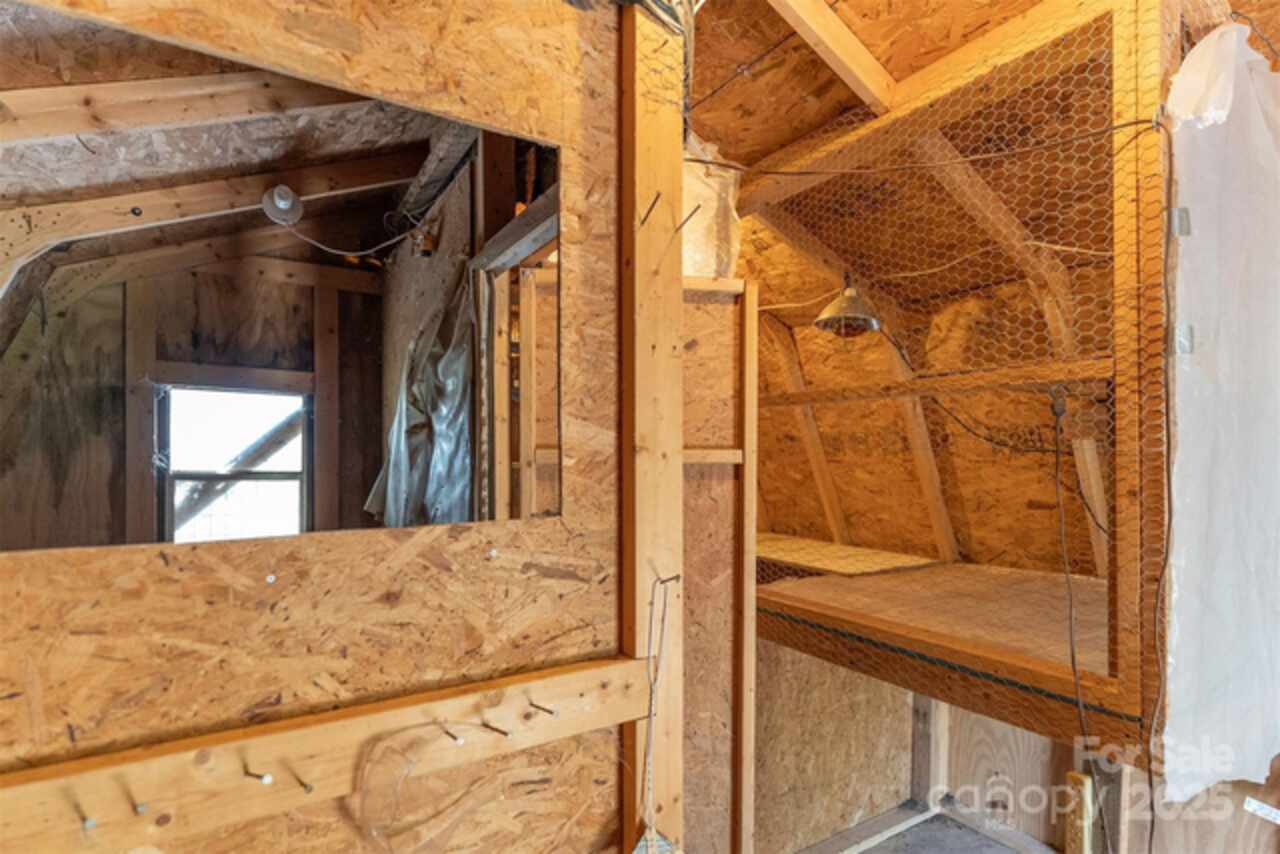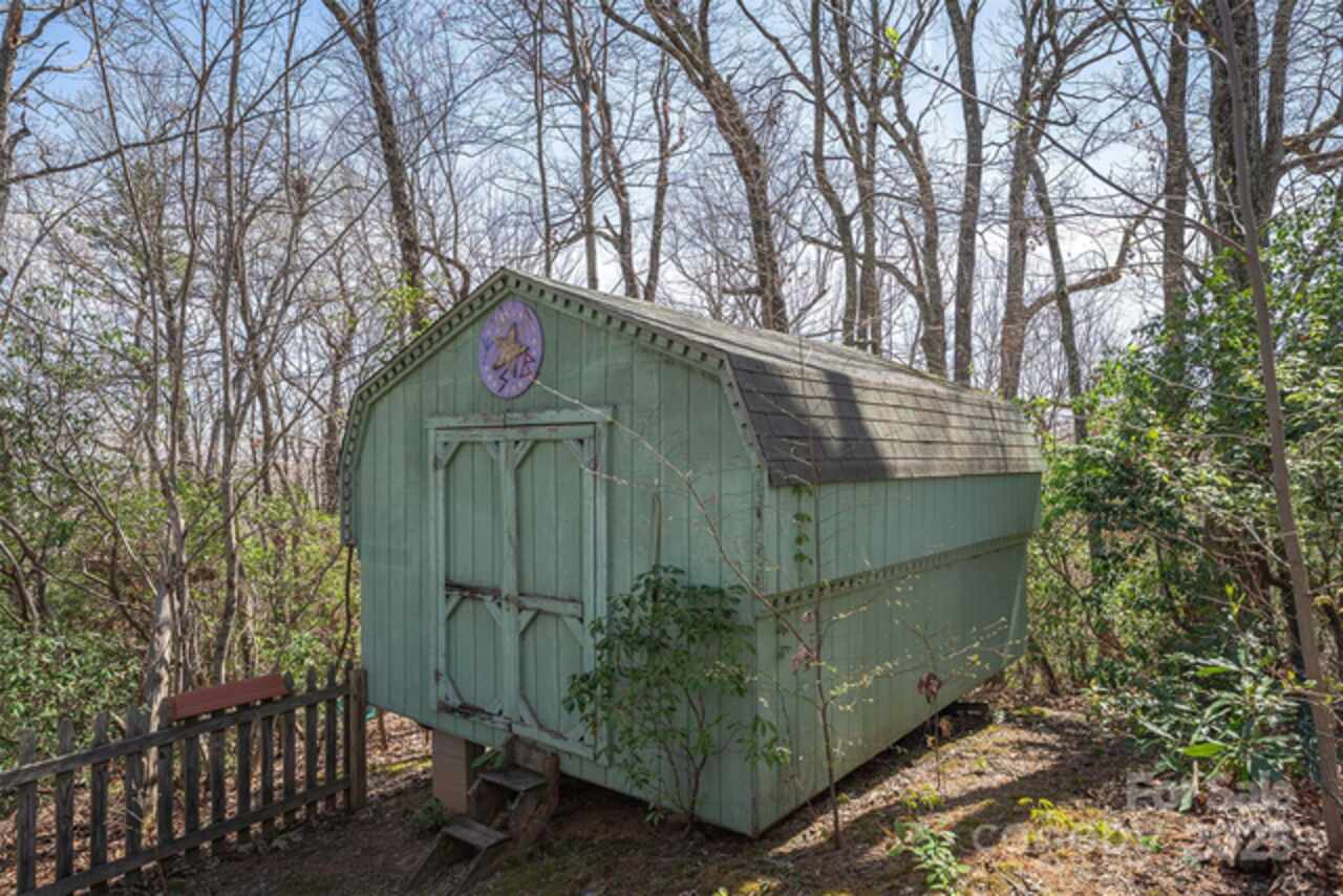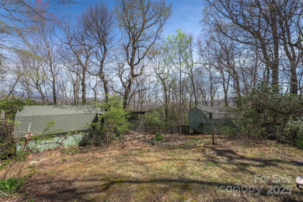Eight miles south of charming downtown Black Mountain you'll find a diamond in the rough. A rustic cabin with inviting tall ceilings and four porch options is waiting for your touches. A few coats of paint will elevate this private wooded retreat bringing instant equity. The primary bedroom sits lofted over the open living room while the secondary bedroom boasts is own private screened in porch. Two large sheds, one with an attached chicken coop is perfect for homesteaders looking for room for a workshop. Sunny side yard is ready for your veggies and herbs. The TreeHaven community takes care of its own. The gravel roads are quickly repaired after storms keeping the property accessible yet secluded. Sellers are excited to find a new caretaker and are offering a $2, 450 credit at closing for cosmetic repairs with a proper purchase price offer.