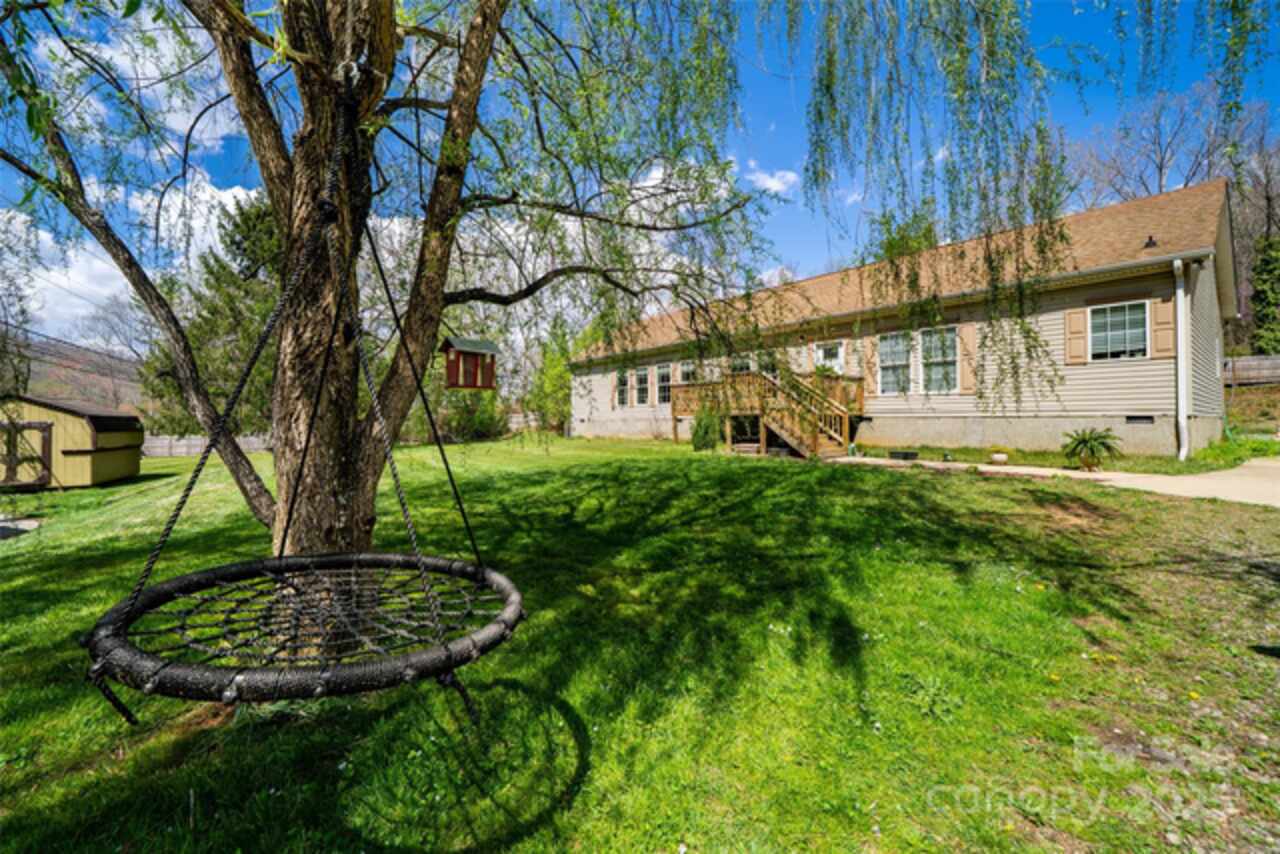 Discover your dream Asheville lifestyle in this beautifully renovated contemporary home, nestled within the highly sought-after Pioneer Trails community. Perfectly positioned in the desirable Bee Ridge/Avondale area, this property offers unparalleled convenience – just 10 minutes from vibrant downtown Asheville, moments from the scenic Blue Ridge Parkway, and mere minutes to major shopping, dining, and essential amenities. Enjoy the best of both worlds with a prime location just outside city limits, benefiting from lower county taxes. Situated on a generous 1.01-acre private lot, the mostly wooded surroundings provide a serene escape with lovely winter mountain views. Outdoor living shines with a huge, brand-new full-length open front deck perfect for entertaining, complemented by a large 19' x 20' covered rear porch ideal for relaxing family meals or offering future screening or expansion possibilities. Step inside to find a home transformed by extensive recent renovations, leaving nothing left to do but move in. Updates include fresh exterior paint, a new architectural roof, the stunning new front deck, a newer heat pump/AC system, durable new vinyl plank flooring throughout, fresh interior paint, and new vinyl insulated windows. The heart of the home is the completely new kitchen, boasting stainless steel appliances, gleaming granite countertops, and a convenient eat-in bar. Further enhancements include a new side deck, stylish new light fixtures, new interior and exterior doors, new garage doors, beautifully updated bathrooms, and a new whole-house water filtration system. Cathedral ceilings soar over the open living and dining areas, bathing the space in natural light that extends seamlessly onto the large covered rear porch. A massive stone woodburning fireplace anchors the living room, creating an inviting and cozy atmosphere perfect for mountain evenings. The thoughtful split-bedroom design features three bedrooms and two full baths, ensuring privacy. The large primary suite opens directly onto the new front deck, plus offers a spacious walk-in closet with a custom barn door and a private en-suite bath. Conveniently located off the kitchen, the main level laundry room also serves as a large walk-in pantry and leads out to the new open side deck. Adding fantastic versatility, the daylight basement offers an additional 635 sq ft of finished, heated space featuring a family room and a full bath, presenting excellent potential for a media room, home office, or guest suite (this space was finished without permits, not counted in total square footage). The large two-car basement garage provides ample storage with tandem parking possibilities on one side, while the other side is best suited for a compact vehicle. Don't miss this opportunity to embrace a fully updated, private retreat offering exceptional convenience and modern comfort, ready for you to start creating lasting memories.