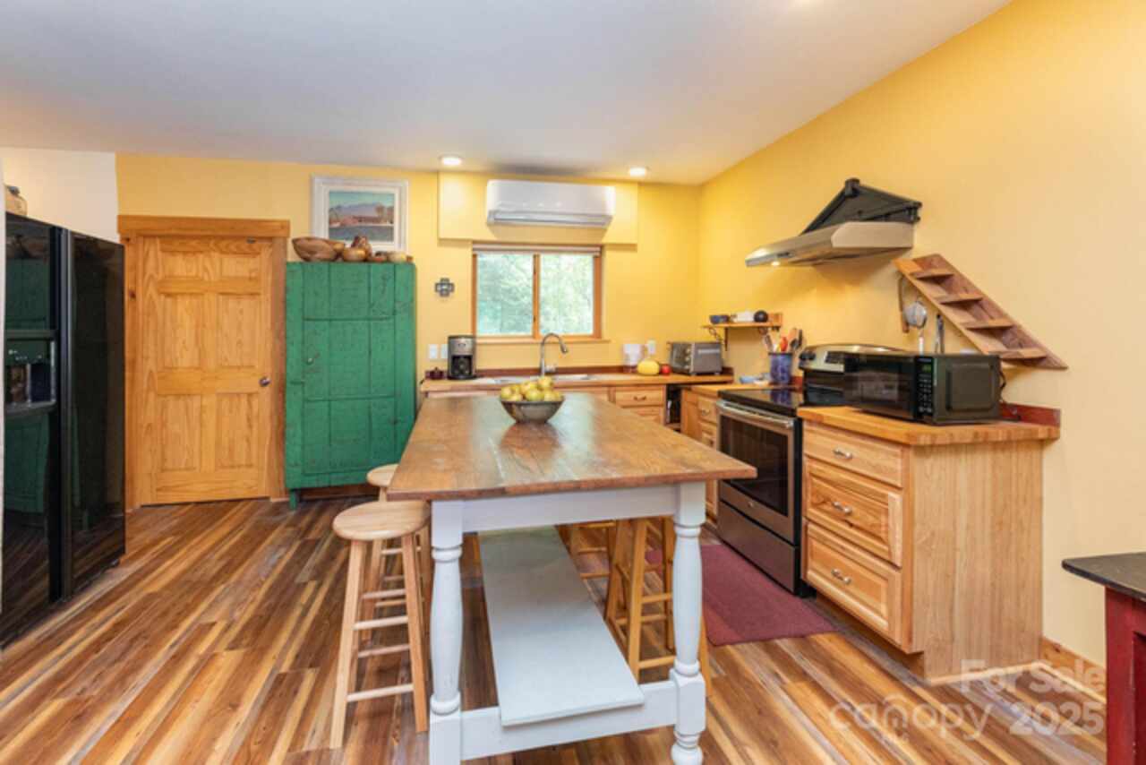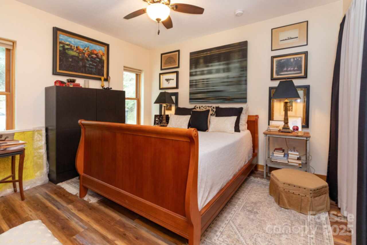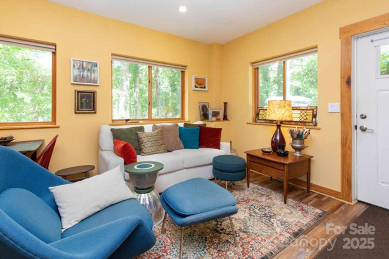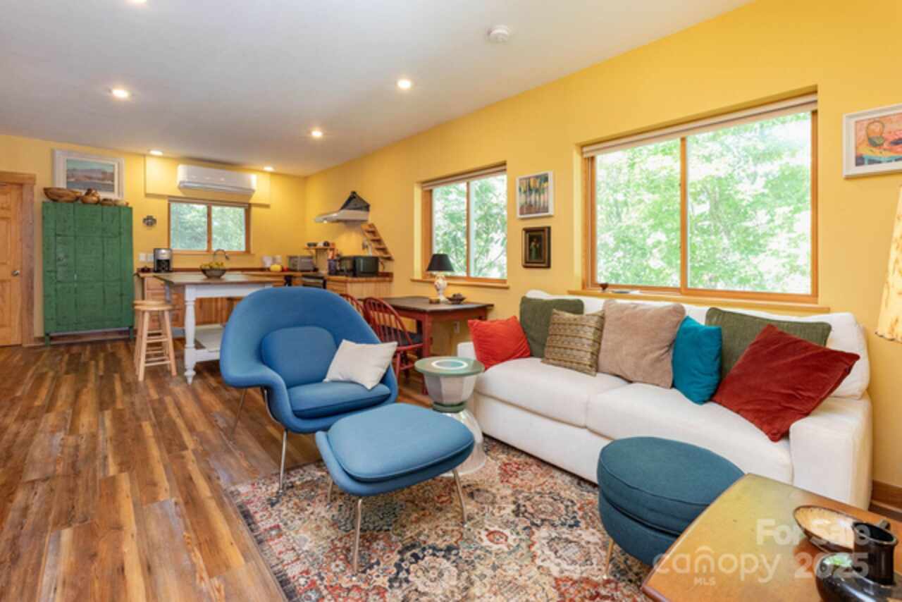 This custom-built cottage blends modern design with mountain charm in the Ridgecrest area of Black Mountain. The main level offers 2BR/2BA with a bright open floor plan, gleaming woodwork, chef’s kitchen with soapstone counters, Bosch appliances, custom cabinets, and a welcoming front porch. Thoughtful layout places the laundry room between both baths, each with pocket door access. The lower-level apartment includes 1BR/1BA, full kitchen, open living area, private driveway/entrance, and attached garage—ideal for guests, family, or rental income. Outdoor shower and wood-burning sauna add unique mountain-living perks. Conveniently located just off I-40, only 5 minutes to downtown Black Mountain. Outdoor enthusiasts can bike directly onto the Kitzuma Trail, or take a quick 10-minute drive to Catawba Falls for a scenic hike. With versatile living arrangements and outdoor amenities that embrace the mountain lifestyle, this property is perfect for families, retirees, investors, or second-home buyers. Note: Lower level currently has a long-term tenant; available for second showings only.