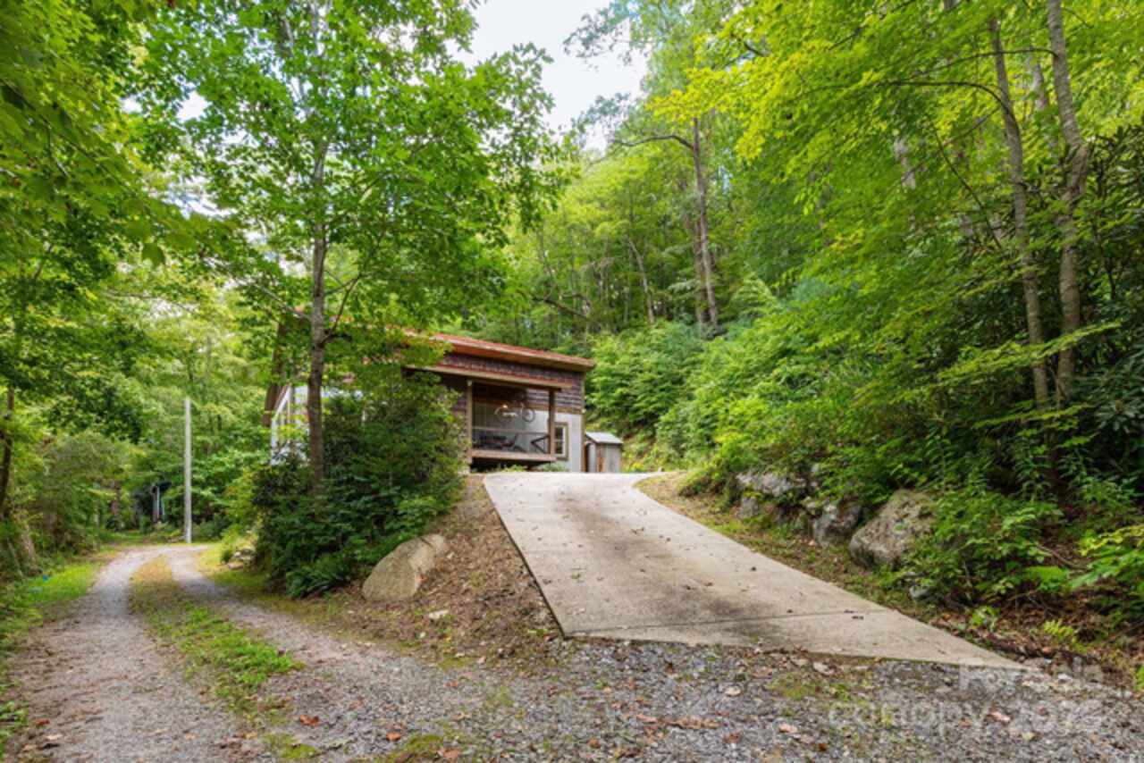 This custom-built cottage blends modern design with mountain charm in the Ridgecrest area of Black Mountain. The main level offers 2BR/2BA with a bright open floor plan, gleaming woodwork, chef’s kitchen with soapstone counters, Bosch appliances, custom cabinets, and a welcoming front porch. Thoughtful layout places the laundry room between both baths, each with pocket door access. The lower-level apartment includes 1BR/1BA, full kitchen, open living area, private driveway/entrance, and attached garage—ideal for guests, family, or rental income. Outdoor shower and wood-burning sauna add unique mountain-living perks. Conveniently located just off I-40, only 5 minutes to downtown Black Mountain. Outdoor enthusiasts can bike directly onto the Kitzuma Trail, or take a quick 10-minute drive to Catawba Falls for a scenic hike. With versatile living arrangements and outdoor amenities that embrace the mountain lifestyle, this property is perfect for families, retirees, investors, or second-home buyers. Note: Lower level currently has a long-term tenant; available for second showings only.