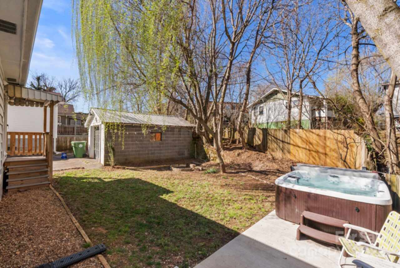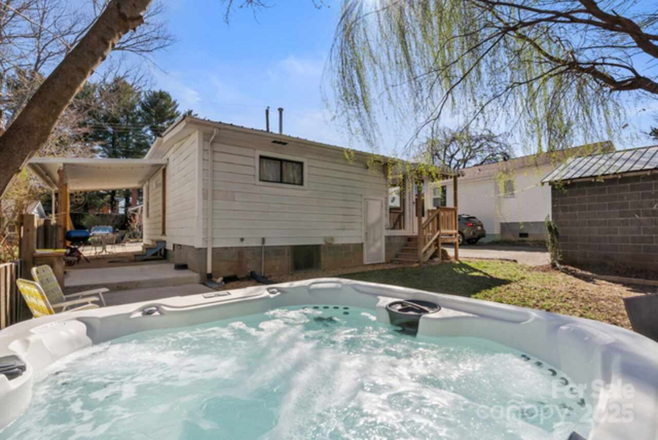 Quintessential West Asheville cottage in a prime walkable location—just steps from Haywood Road’s popular cafés, shops, and restaurants! This charming home combines vintage character with modern updates, featuring a retro kitchen, warm cottage vibe, and a smart layout with 2 bedrooms + 2 baths. The spacious primary suite has its own private entrance and full bath—ideal for guests or a rental (homestay permit in place). Outside, relax in your private backyard retreat with a hot tub, covered carport, and patio. Recent updates include a 2022 heat pump with central cooling and a convenient laundry nook with washer/dryer. Durable metal siding and roof make maintenance easy, while the quiet dead-end street offers rare peace and privacy. With furnishings available to convey, this home is truly turnkey. Don’t miss this unique opportunity for easy city living in one of Asheville’s most desirable neighborhoods!