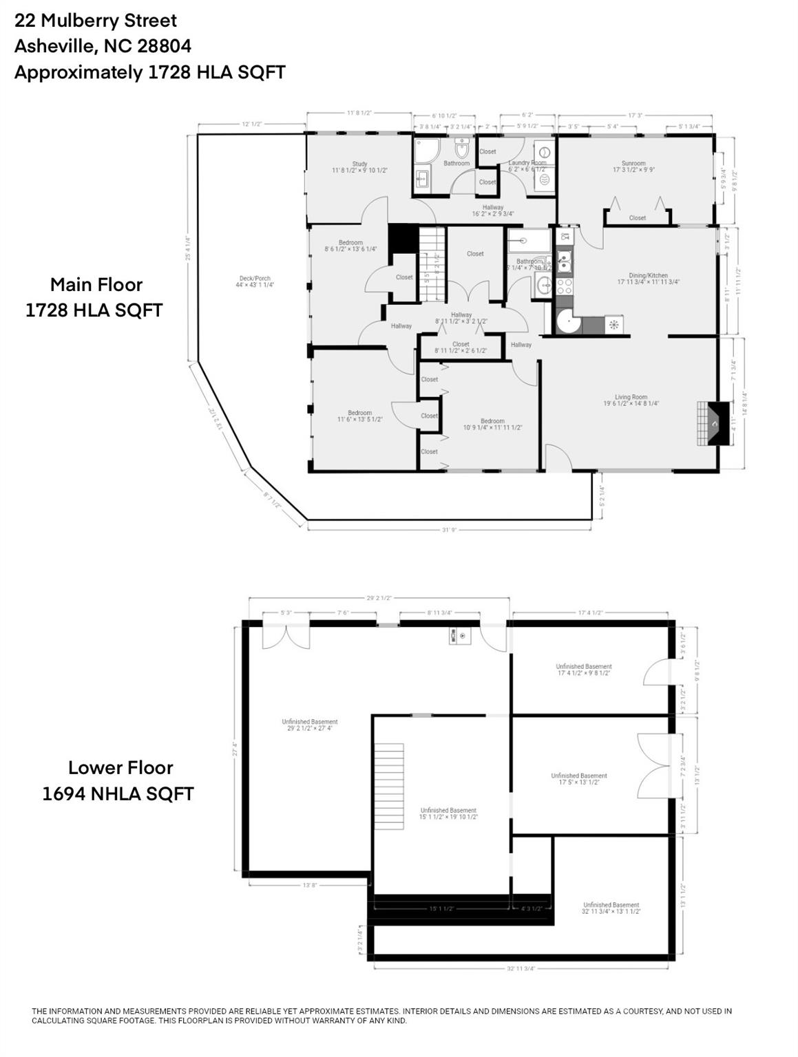 Perfect starter home or investment. Great opportunity to be in great area of Woodfin just 5 min to River Arts District and 7 Min to downtown Asheville. Great views of downtown Asheville and mountain sunrise. Enjoy this light filled one level home with view of Downtown Asheville. Home sits on .35 lot, Fully fenced for pets and play. The home has three bedrooms plus office and gorgeous sunroom with mountain views. Two renovated bathrooms. Huge closets for great storage on the main level. Tons of natural light throughout the home. The roof was replaced in 2025 and the there are two HVAC systems. This home has an open spacious living room and eat-in kitchen. Move-in ready and priced to sell! Basement has tons of room and stubs for additional bathroom potential. So much room to expand. Super convenient location. One block from the Asheville Community Yoga, short ride to the bike greenways. 3 minutes to UNCA campus. Additional lots behind home also available for additional price. Owned by the same family since it was built. Property priced to sell AS IS. 5 adjacent lots are available for purchase for $300, 000.