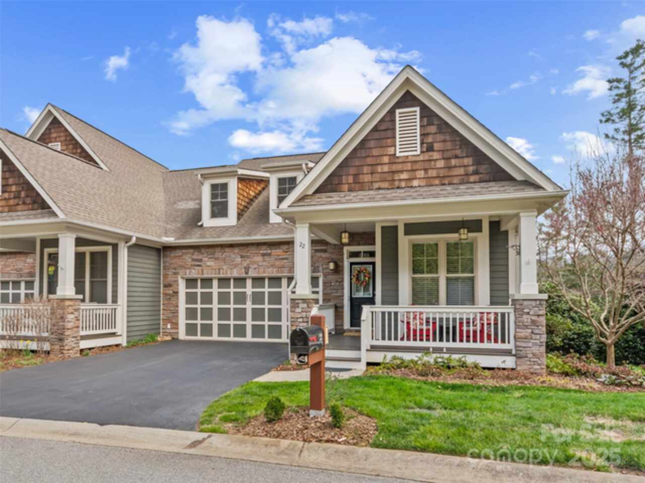 Rare find! End unit in gated Rockfish Cove in desirable Biltmore Lake. Lifestyle community with private 62 acre lake, miles of walking trails, non motorized boating, clubhouse, tennis/pickleball and basketball courts and more! Move-in ready home loaded with upgrades with open floorplan, 9'+ and cathedral ceilings, stone gas FP and year round views! Main level primary suite with walk in closet plus en suite full bath with double sinks, walk in tiled shower and garden tub. Open kitchen w/ Granite countertops, stainless appliance package and eat in bar. 2 guest bedrooms on lower level plus office/den on main level. On site level parking plus 2 car garage and plenty of guest parking at street. Townhomes are on a double culdesac street overlooking nature preserve at end of lake. Large covered porch, 2 rear decks with Trex flooring. Largest plan available!!