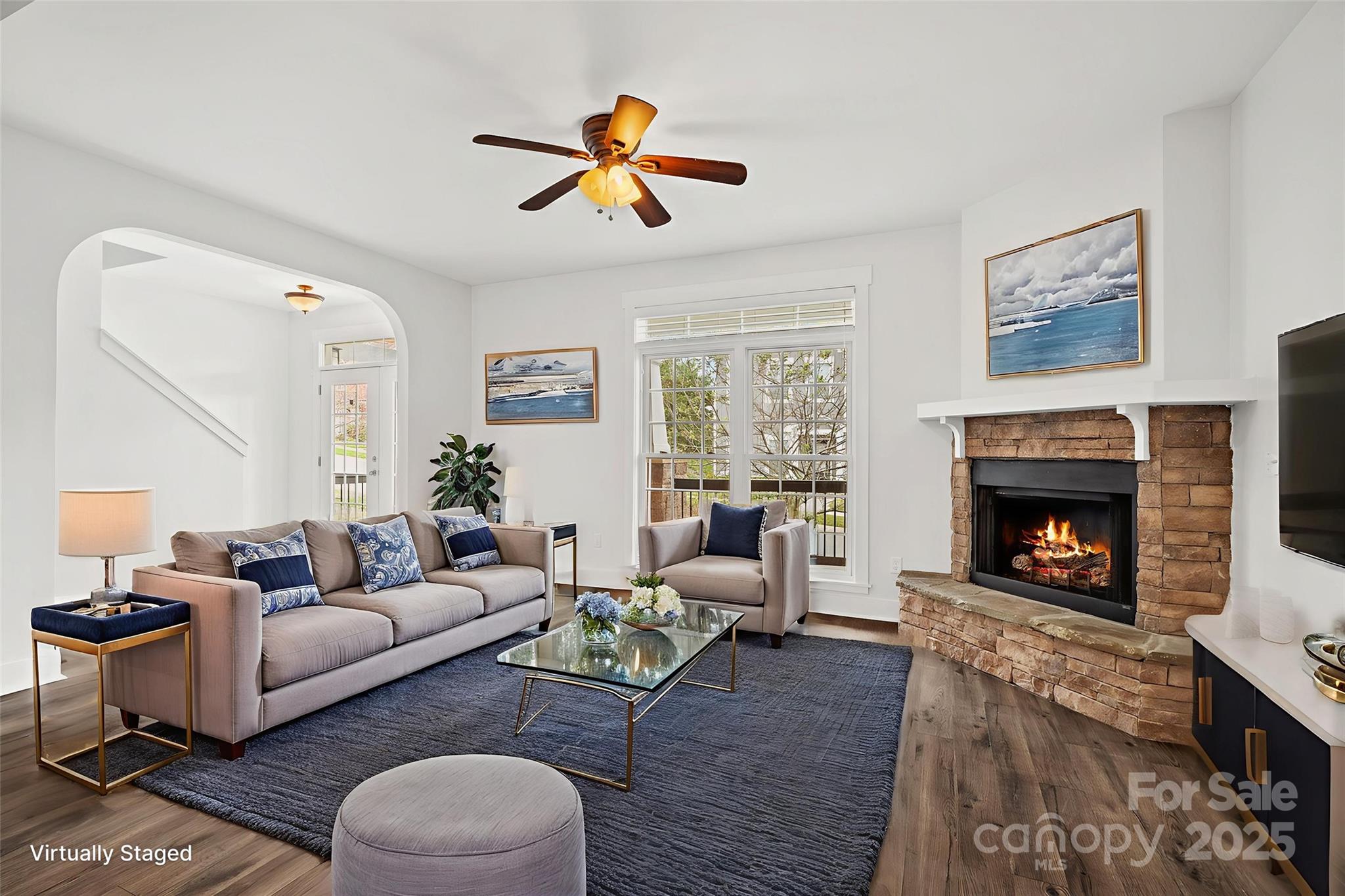 Perfectly situated between Asheville and Weaverville, this stylish end-unit townhouse offers the ideal blend of comfort, convenience, and charm. Thoughtfully designed with quality craftsmanship throughout, it sits along a tree-lined street with sidewalks in a beautiful neighborhood that feels peaceful yet close to everything. From the curb, the large covered porch with stone and timber accents makes a welcoming first impression. Inside, the freshly painted interior gives the home a bright, like-new feel. Natural light fills the open floor plan, highlighting graceful archways and a cozy stone fireplace that anchors the living area. The spacious kitchen features abundant cabinetry, generous counter space, and stainless steel appliances, opening to the dining area and rear deck for easy indoor-outdoor living. Upstairs, you’ll find two private bedroom suites, each with a walk-in closet and ensuite bath, providing comfort, privacy, and thoughtful design for everyday living. A large unfinished basement and two-car garage offer excellent storage and future flexibility. With easy access to Lake Louise, downtown Weaverville, and all the restaurants and shops of Asheville, this home delivers a low-maintenance lifestyle in a prime location where small-town charm meets city convenience.
