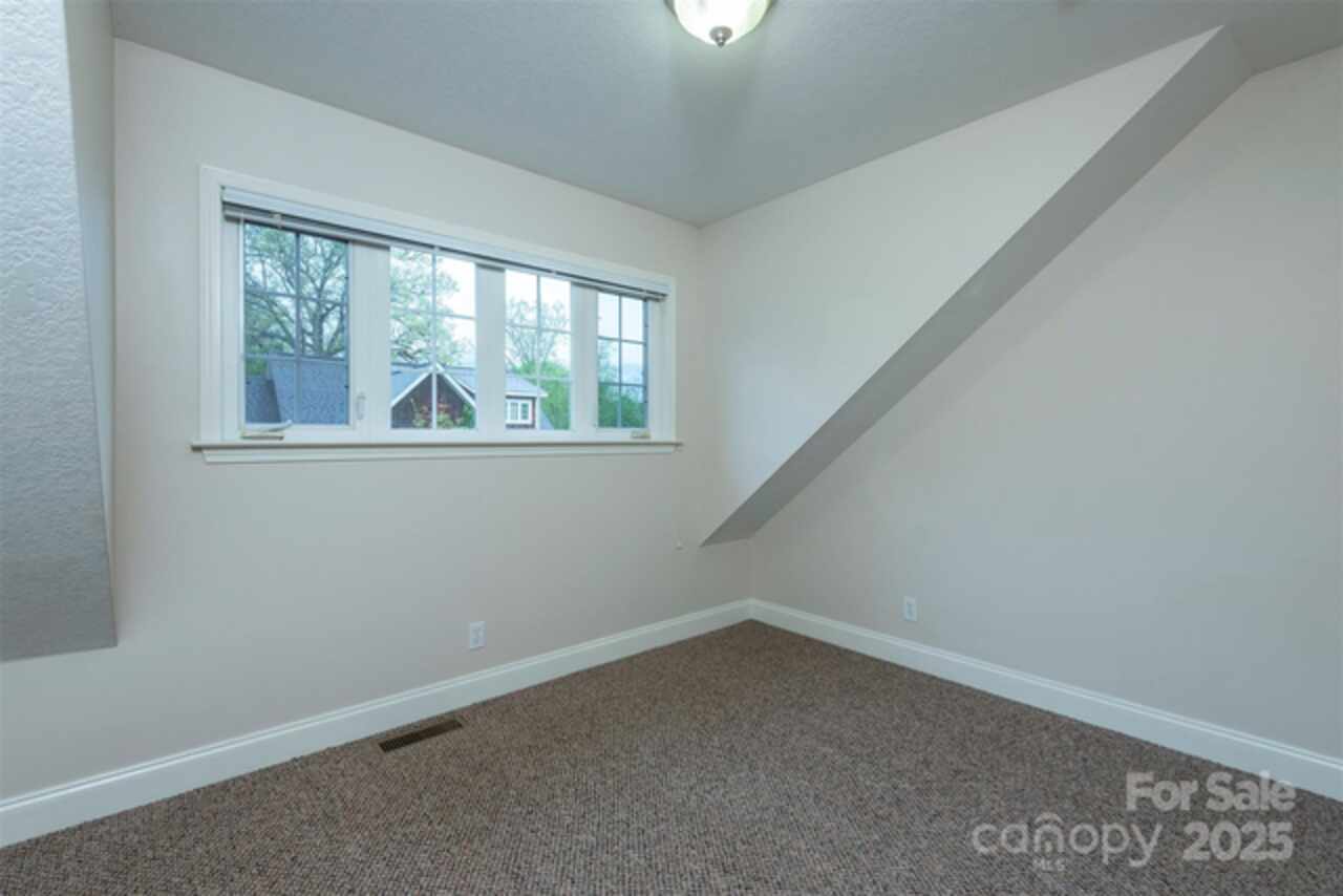 Walkable to downtown Black Mountain, this well-maintained Arts and Crafts townhome has an efficient floor plan with plenty of living space. It has three bedrooms and a bonus room. The 3rd bedroom doesn't have a second egress. The primary bedroom is on the main level with a walk-in closet. Laundry is on the main level. There is a lot of natural light, hardwood floors on the main level, a covered front porch, a back porch, a one-car garage, and a great location close to town.