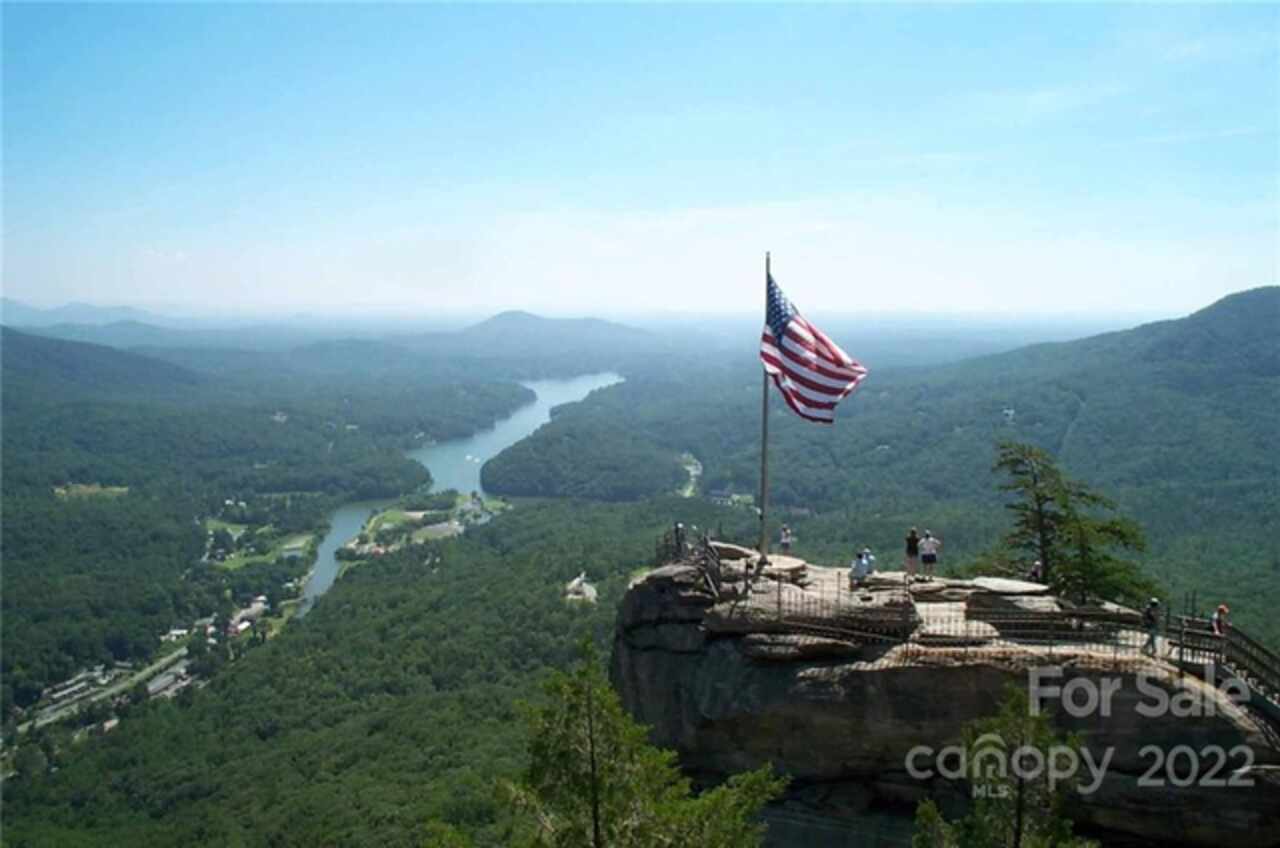 Highway 64/74 to Lake Lure, turn onto Pheasant at Lake Lure Baptist Church. Follow Pheasant to left on Wildcat, follow Wildcat to right on Redbird, follow Redbird to left on Otter Lane. Lot is just before 156 Otter Lane on the right. No sign.