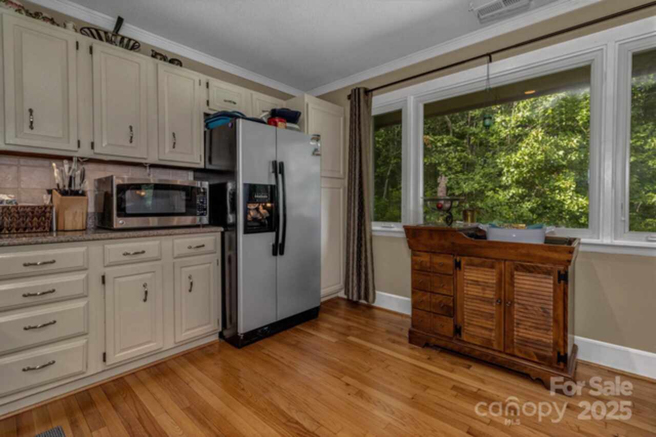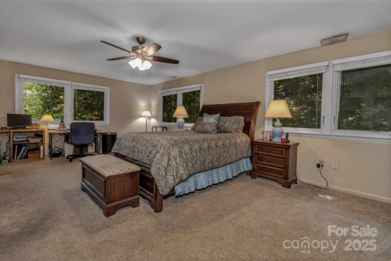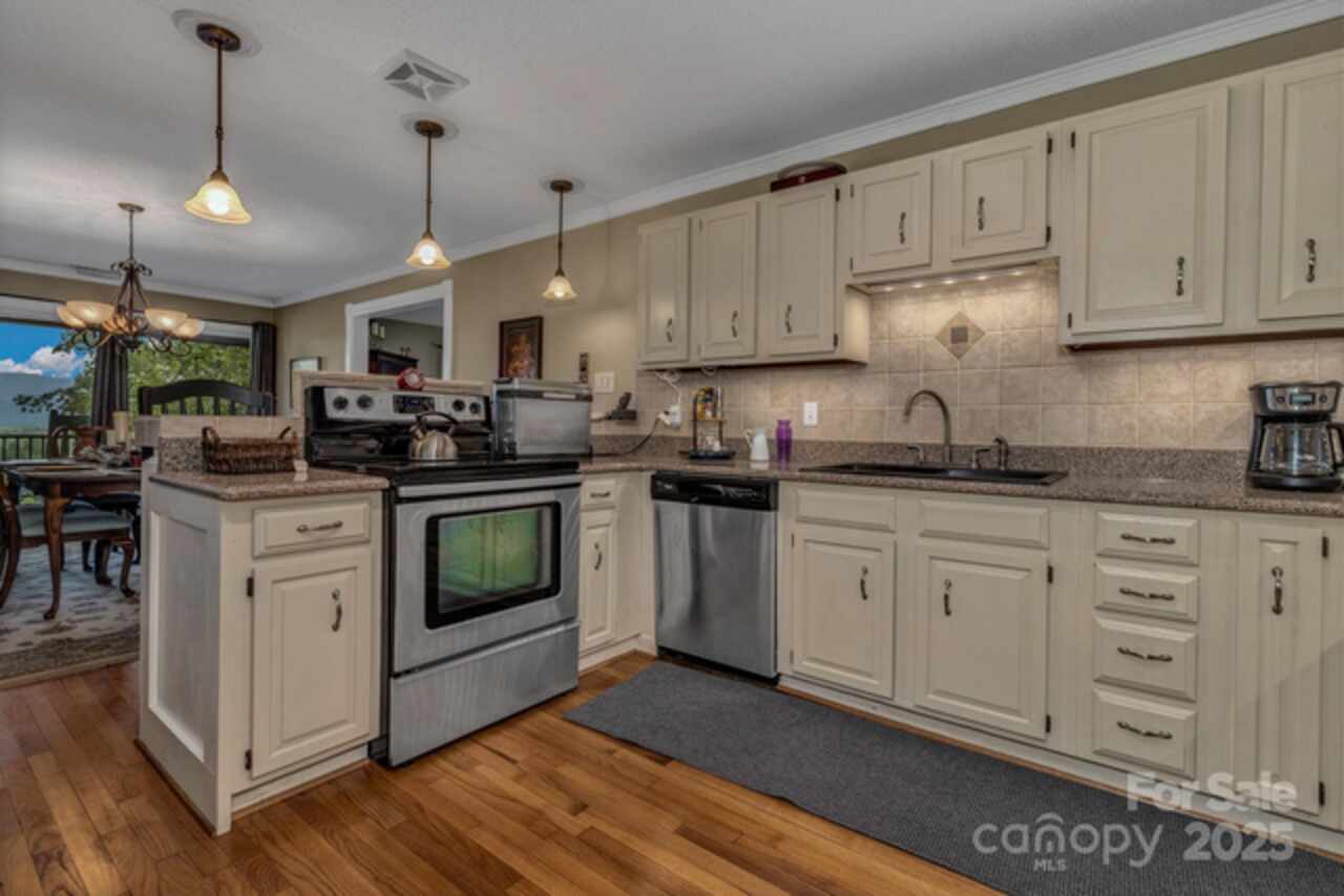 Welcome to 31 Mark Twain Road, a spacious split-level home nestled in Jewell Acres with its own community pond. This 4-bedroom, 3-bathroom home offers a flexible layout with 2 bedrooms and 2 bathrooms on the main level, and 2 additional bedrooms and a full bath on the lower level; perfect for guests, extended family, or a home office setup. You'll love the generous living spaces, including a bright living room with a cozy fireplace and a well-appointed kitchen that opens to the dining area. Covered porch with stellar mountain views ideal for morning coffee or evening unwinding. The oversized primary suite features a beautifully remodeled bathroom and ample closet space. Downstairs, a large great room with a gas fireplace provides even more space to relax or entertain. Newer high end windows throughout. An oversized two-car garage adds to the convenience. Don’t miss this opportunity to live in a peaceful, established neighborhood just minutes from everything Asheville has to offer.