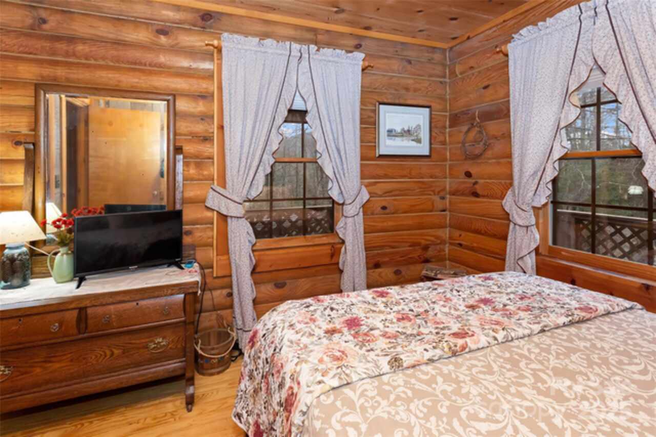 Extremely well kept, gorgeous log cabin getaway close to Black Mountain, Asheville, Hendersonville and Lake Lure. This cabin feels like a treehouse and is being sold completely turn key - Everything you'll need is in place - Even the tools in the shed/workshop are included! It's been a very successful rental and a personal getaway for the owners and they have taken excellent care of the property. It's beautifully appointed with handmade furniture, a stunning stone fireplace, antiques and a lot of love. Relax on the deck, sit by the fire-pit or get creative in the workshop. Whatever you do, you'll be glad you're doing it here! It has Spectrum fiber cable internet in place so you can stay connected at high speed (500 MBS), it also has Starlink installed as backup internet which can be activated anytime. Prequal needed to show. Showings 10am- 6pm. Call today!