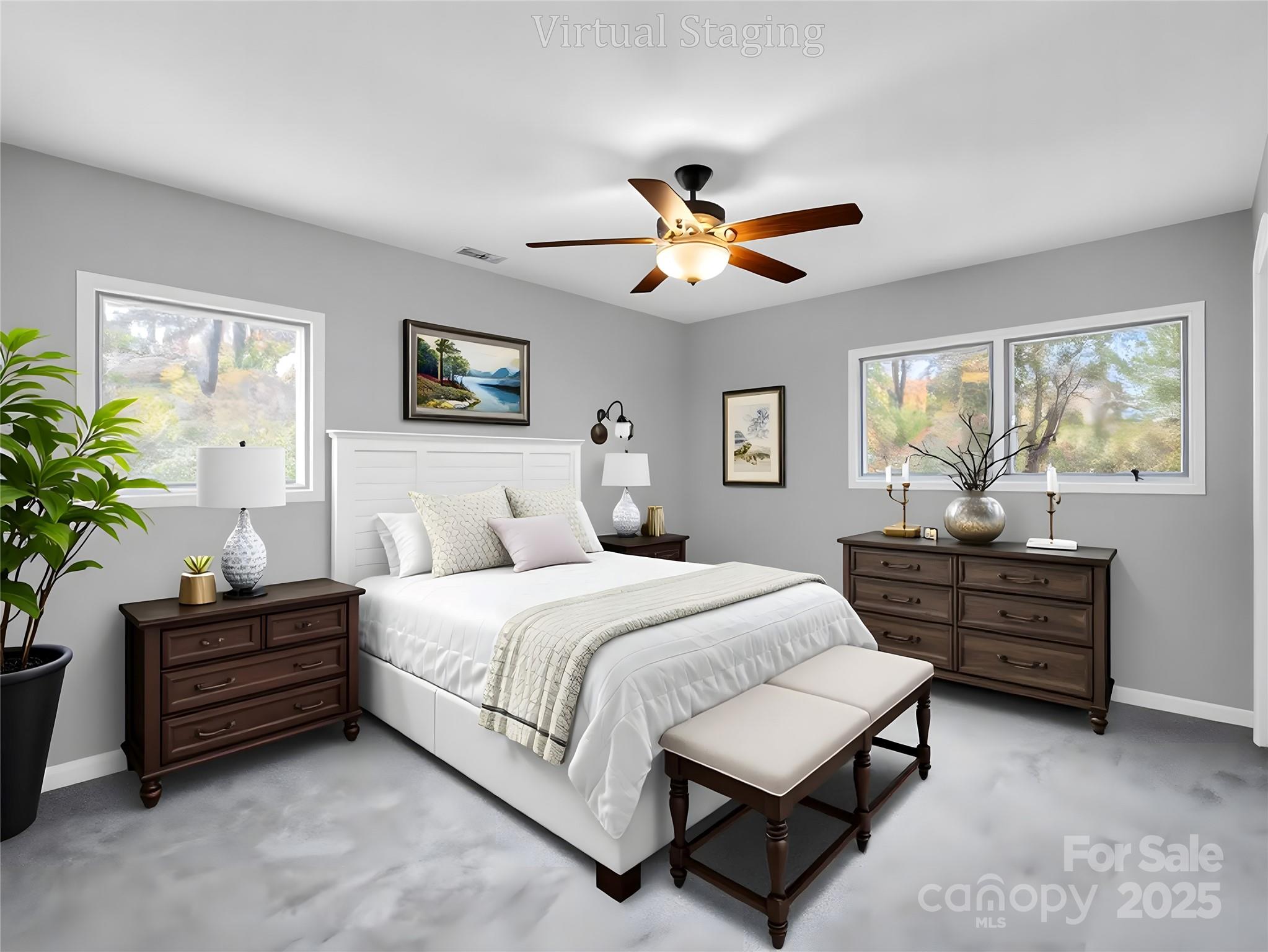 Escape to the tranquility of country living without sacrificing convenience. This refreshed split-level home, nestled in the Tiny Farms neighborhood, offers a perfect blend of peaceful seclusion and easy access to city amenities. Enjoy a mere 15-minute drive to Haywood Rd and just 20 minutes to downtown. Surrounded by a canopy of trees and lush, mature landscaping, the property provides a wonderfully private setting. Inside, the classic bi-level floor plan feels open and bright, recently updated with fresh paint, new carpet, and updated trim. The main upper floor is bathed in natural light from large windows, creating an inviting, open-concept living space. This level features a primary bedroom with an en-suite bathroom, a guest bedroom, and a versatile bonus room. From the dining area, step outside to discover a spacious back patio, ideal for outdoor entertaining. Downstairs, discover a cozy den complete with a gas log fireplace, 3rd bedroom, a laundry room, and convenient under-stair storage. Outside, the property boasts a two-level front yard and a sprawling, hilly backyard. An attached two-car garage in the basement offers ample space for parking, a workshop, and additional storage. Showing appointments now available, Contact today for a private showing.