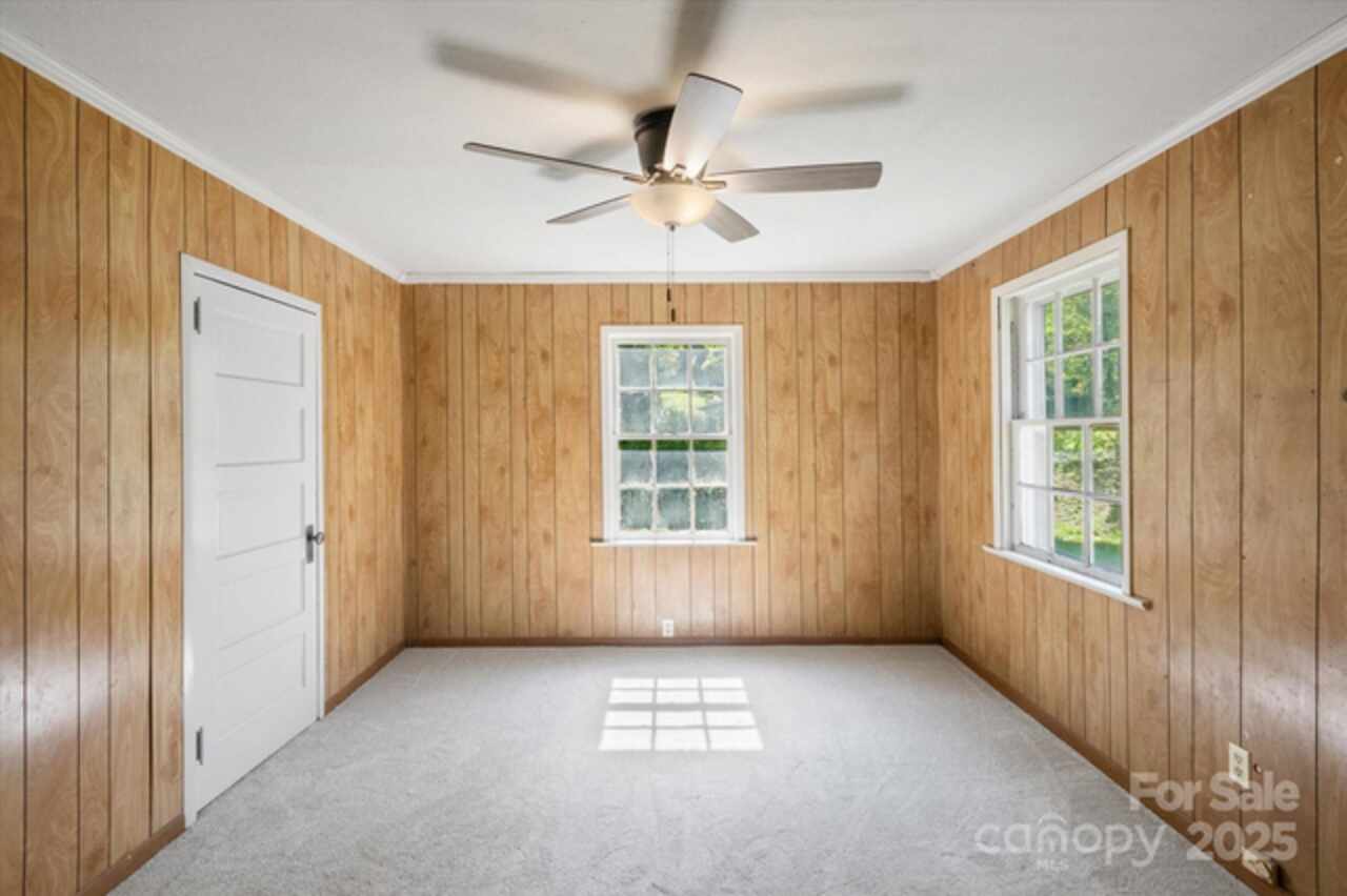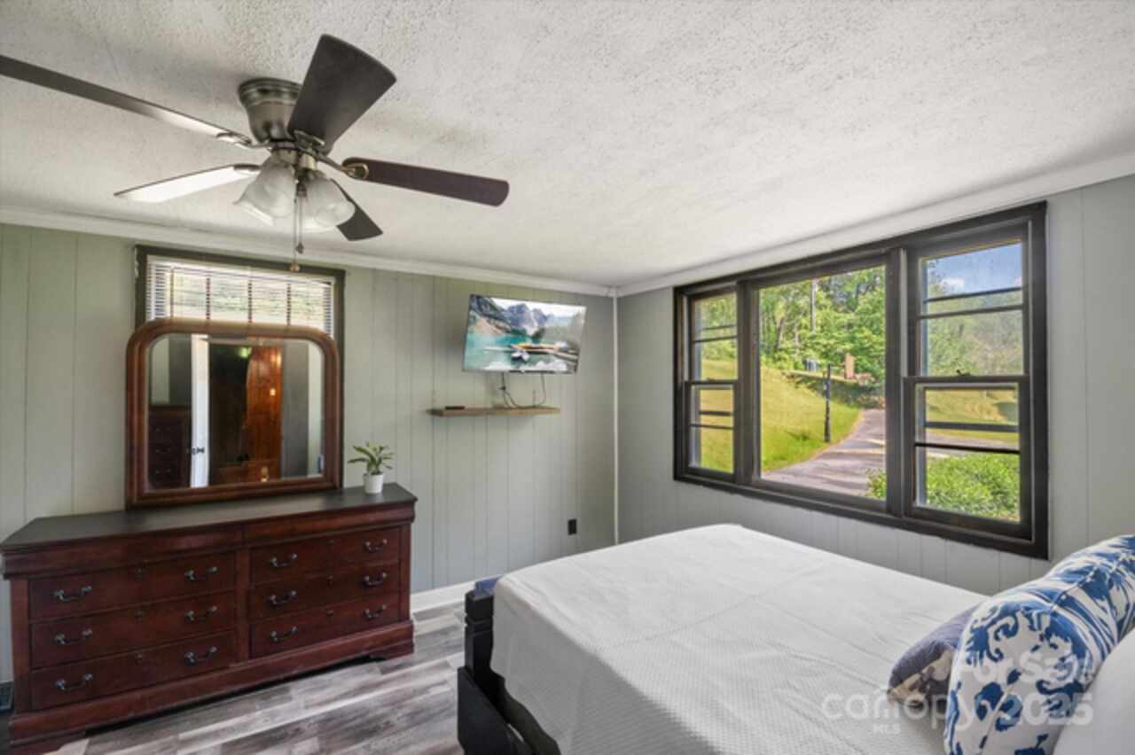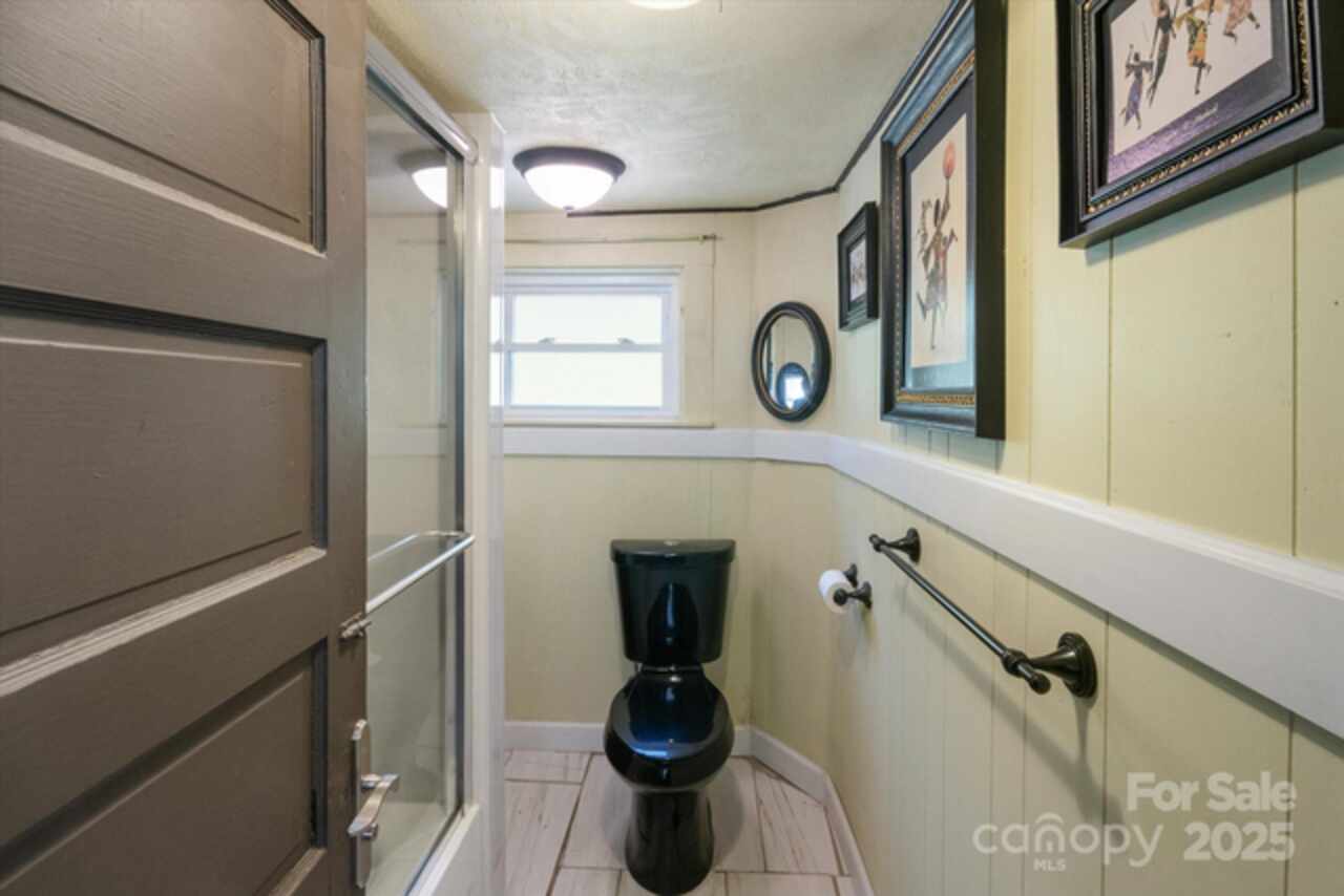Nestled on a peaceful half-acre lot, this 3-bedroom, 1-bath cottage offers vintage charm, a functional layout, and unbeatable convenience. Located in a quiet neighborhood just 15 minutes from downtown Asheville, this home is perfect for those seeking a serene setting with easy city access. Step onto the inviting front porch and enjoy the sound of the creek and views of the garden. Inside, original knotty pine paneling, hardwood floors, and a wood burning fireplace add warmth and character, while brand-new carpet in the bedrooms brings fresh comfort. The spacious primary bedroom includes a custom closet for added storage. The kitchen and living areas provide a cozy layout that’s move-in ready yet offers room for updates. The full unfinished basement adds excellent storage potential or workshop space, and the detached garage adds flexibility for parking or hobbies. With a little TLC, this charming property is ready to shine—don’t miss the opportunity to make it your own!