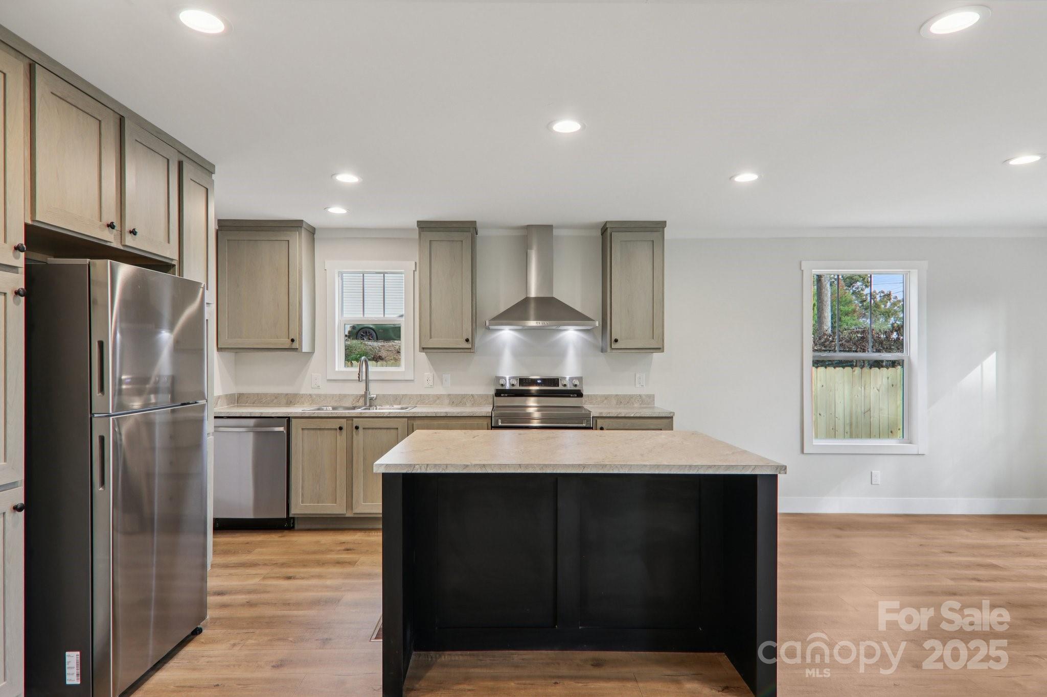 Dishwasher, Electric Range, Exhaust Hood, Refrigerator