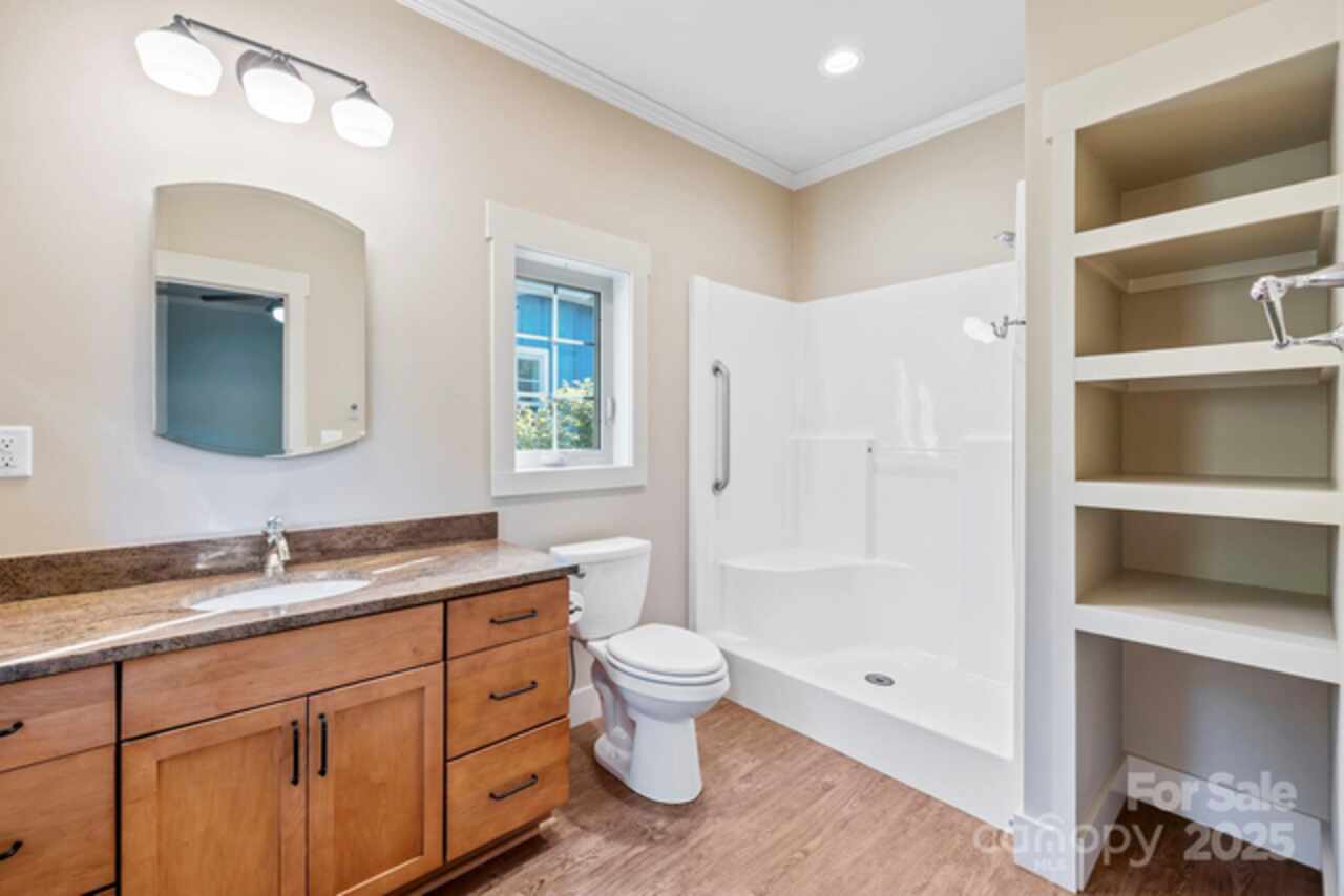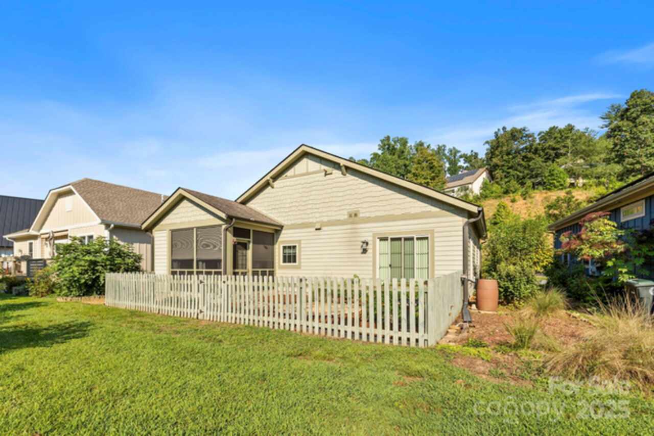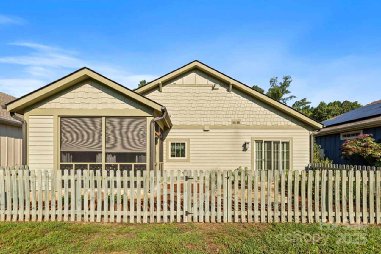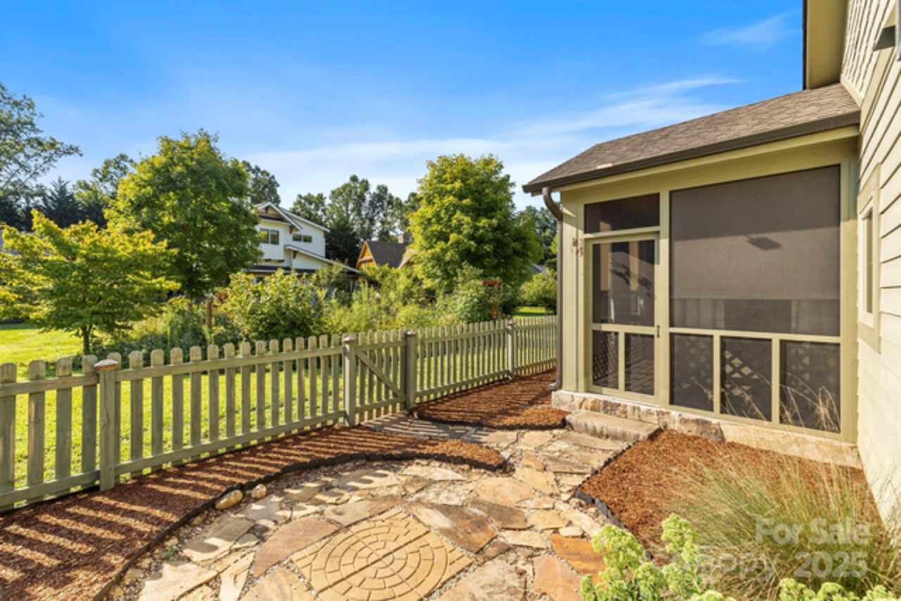 This inviting Arts & Crafts style home in a welcoming neighborhood is fresh and bright. The built in accents on the inside are picture perfect alone or adds charm displaying your own personal treasures! You will enjoy lounging on your screened in back porch looking onto your personal back garden or have a cozy evening by your living room fireplace. Your feet never need to be cold with radiant heated floors! Installed solar panels can help offset your electric bills. There are pull down attic stairs with plenty of storage space in the attic and a storage room built into the outside of the house for your outside needs. Enjoy figs from your own tree or plant flowers and/or vegetables in the community garden and take a leisurely evening stroll around this pleasantly designed neighborhood. In this gated eco-conscious community with a convenient location to downtown Asheville you will want make this house your new home!