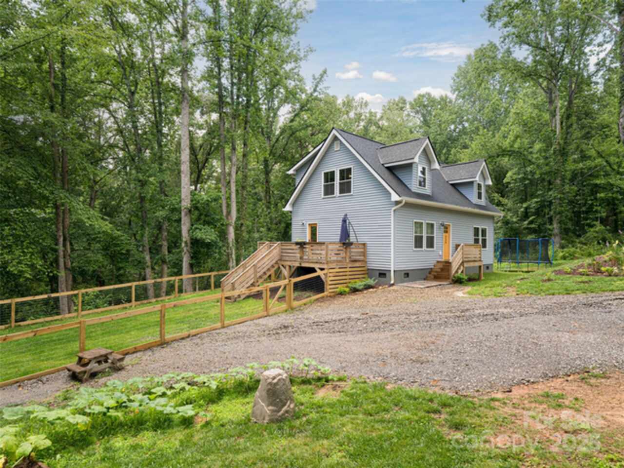 Tucked into a quiet, upscale neighborhood on a private, wooded lot, this thoughtfully designed home with apartment is just minutes from downtown Asheville and major conveniences, including future Publix. From the moment you arrive, the home’s curb appeal sets the tone with a brick mailbox pillar, rounded curbs, a variety of tastefully chosen trees and bushes, and a stately combination of brick, stone, and fiber cement siding. City water, natural gas, and optional city sewer connection provide long-term flexibility. Inside, refined architectural details elevate every space. Soaring ceilings, arched doorways, rounded corners, and extensive crown molding create a sense of openness and elegance. Oak hardwood floors, custom lighting with dimmers, and a three-zone heat pump system ensure both comfort and control. The great room features an impressive floor-to-ceiling brick fireplace with remote-controlled variable flame, while the kitchen offers granite countertops, stainless appliances and seamless access to a spacious 10’ x 20’ deck. A dedicated pantry and full laundry room add everyday convenience. The main-level primary suite includes a walk-in closet with attic access and a well-appointed bath with dual granite vanity, jetted tub, and separate tiled shower. Additional bedrooms are generously sized with elevated ceiling heights, enhancing the home’s airy feel. Downstairs, the property truly sets itself apart with a fully equipped private apartment complete with separate entrance, private deck, and independent HVAC zone. Featuring a bedroom, office/flex space, potential second bedroom with city sewer connection, full kitchen with granite counters, separate laundry, and living area, this space is ideal for multigenerational living, long-term rental, or guest accommodations. Additional highlights include a two-car garage with epoxy floors, workshop and storage space. This is a rare opportunity to own a versatile, high-quality home offering space, privacy, and income pote
