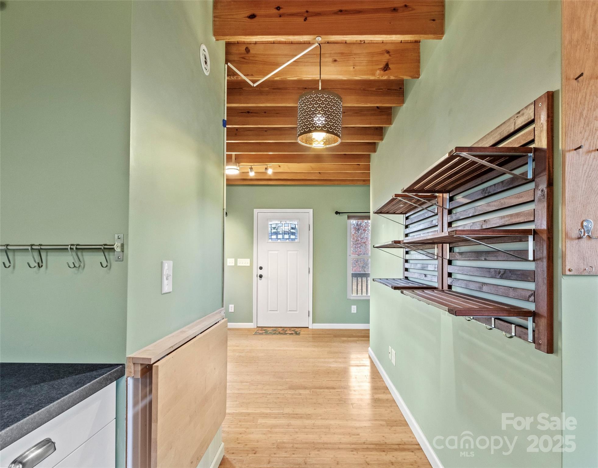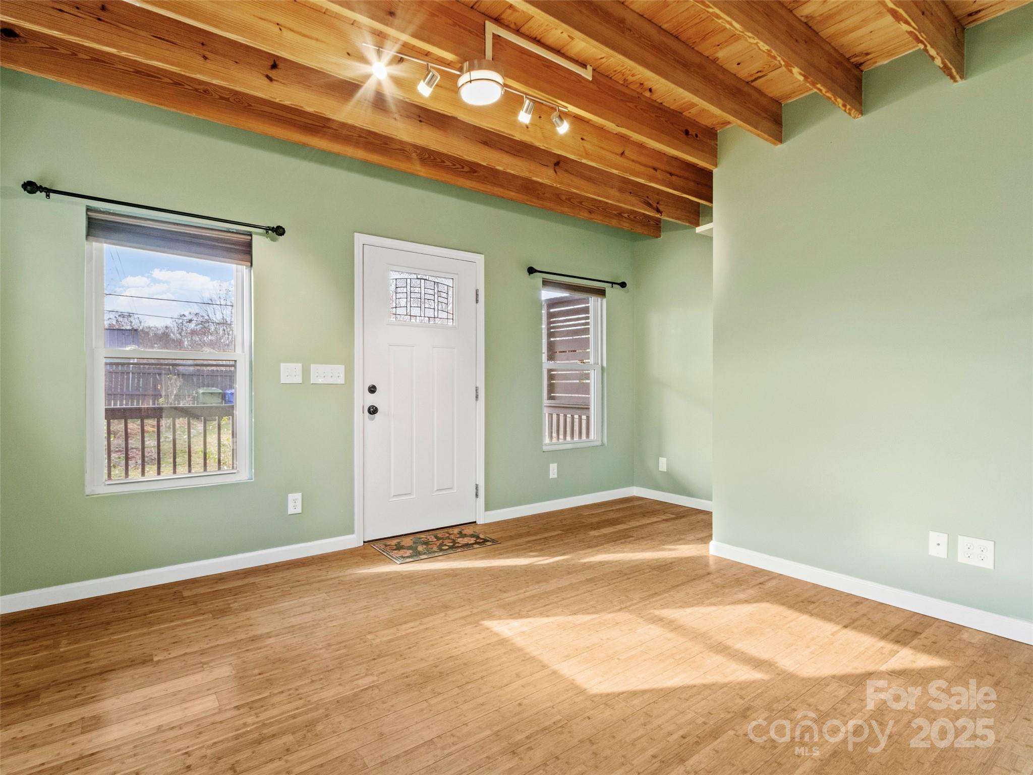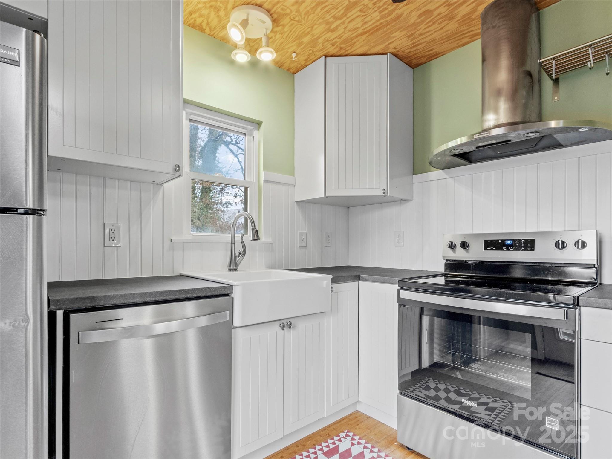 Charming 2-bedroom, 2- bath Compact Cottage in Asheville. This well-maintained home features bamboo flooring throughout the main level and pine flooring upstairs. At the top of the stairs a versatile sitting or office nook includes a built-in bookcase. Recent updates include a new Mitsubishi mini split system, stove and gutters. Home also offers a natural gas water heater for efficiency utility performance. The exterior is made of composite wood. The fully fenced 0.15-acre lot provides privacy and outdoor enjoyment with raised flower beds ready for plating. A thoughtfully designed property in a convenient Asheville location, perfect for low maintenance living with character.