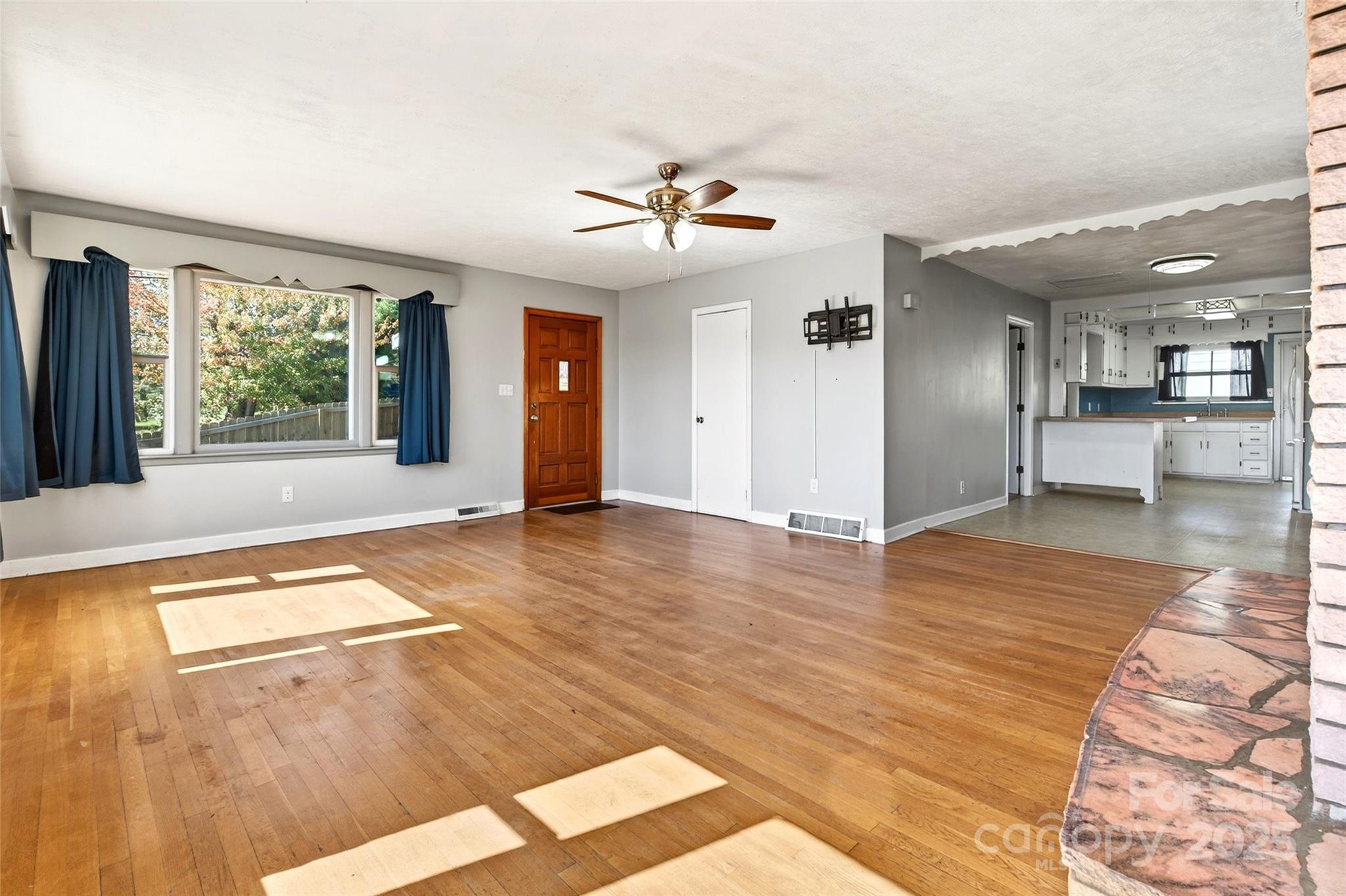 Tucked ten minutes from the heart of downtown, this delightful ranch offers the perfect blend of convenience and quiet. Set on over half an acre of usable land, the front yard is fully fenced for added privacy and a great place for pets, while the expansive backyard is a blank canvas ready for whatever you envision—gardens, gatherings, or even a detached garage. Step inside to a welcoming living room anchored by a cozy gas log fireplace, flowing seamlessly into an open kitchen and dining space ideal for everyday living or entertaining. Two bedrooms sit at the front of the home, while a third, tucked behind the kitchen, offers flexibility as a home office, studio, or guest room. The walk-out basement already features a full bath (needing some updating) and laundry area, plus ample room for storage or future finished space. Major updates include a new roof in 2020 and new HVAC 2022. All that’s left is your personal touch. This charming home is ready for its next chapter—make it yours.