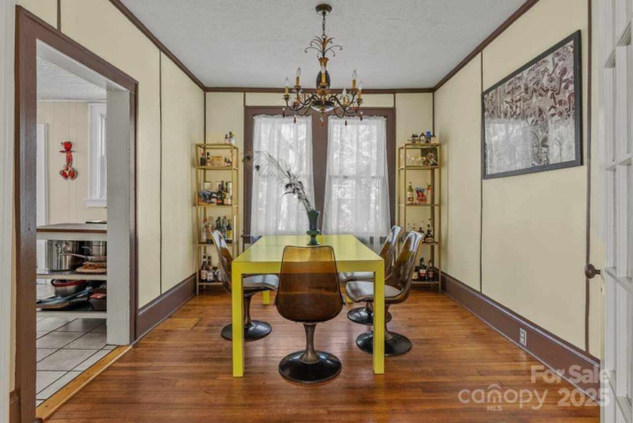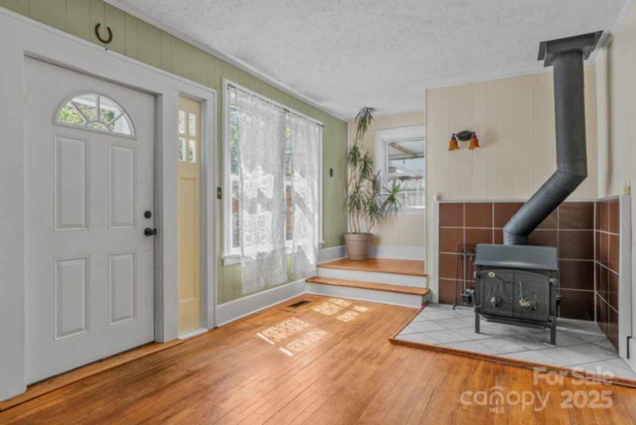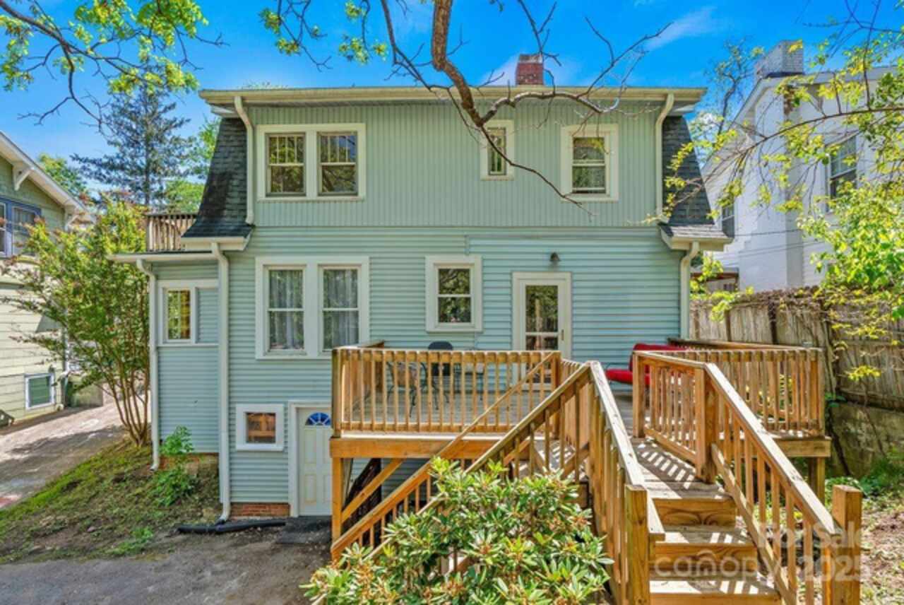 Seller is very motivated. Nestled just north of downtown Asheville, this charming 3-bedroom residence offers the rare combination of historic character and urban convenience. Walk to acclaimed restaurants, artisan shops, and local breweries, all while enjoying the tranquility of a residential enclave. Original hardwood floors run throughout, complemented by a tiled kitchen and bath for timeless ease. Thoughtful details like built-in shelving and a cozy wood-burning stove elevate the living spaces, while a formal dining room invites elegant gatherings. Step outside to an expansive multi-tiered deck with a covered gazebo—an ideal setting for entertaining or unwinding. The 850 sq ft basement, with interior and exterior access, offers flexibility for storage or creative space. A whole-house water filtration system and enviable location complete this rare downtown offering.