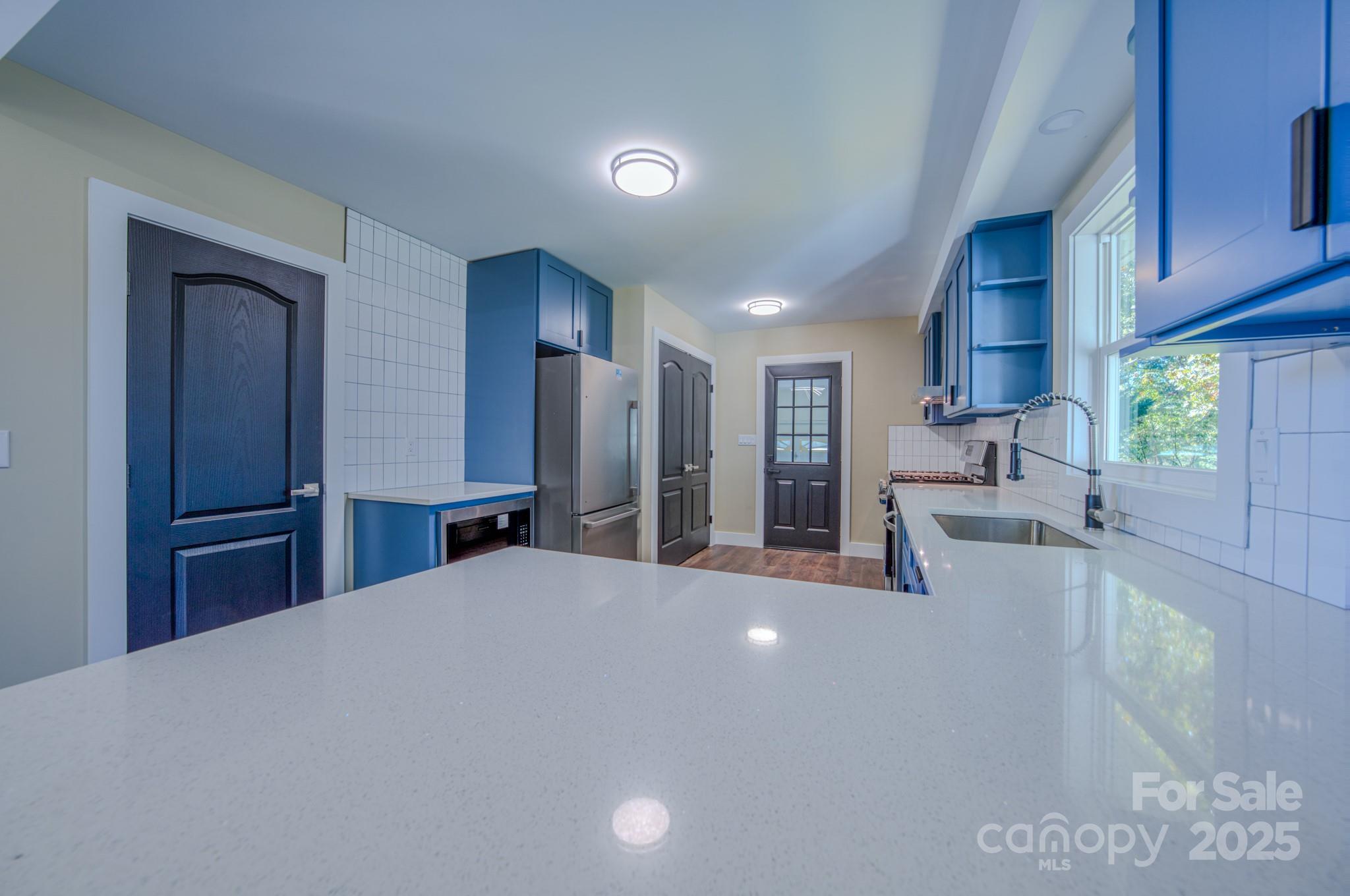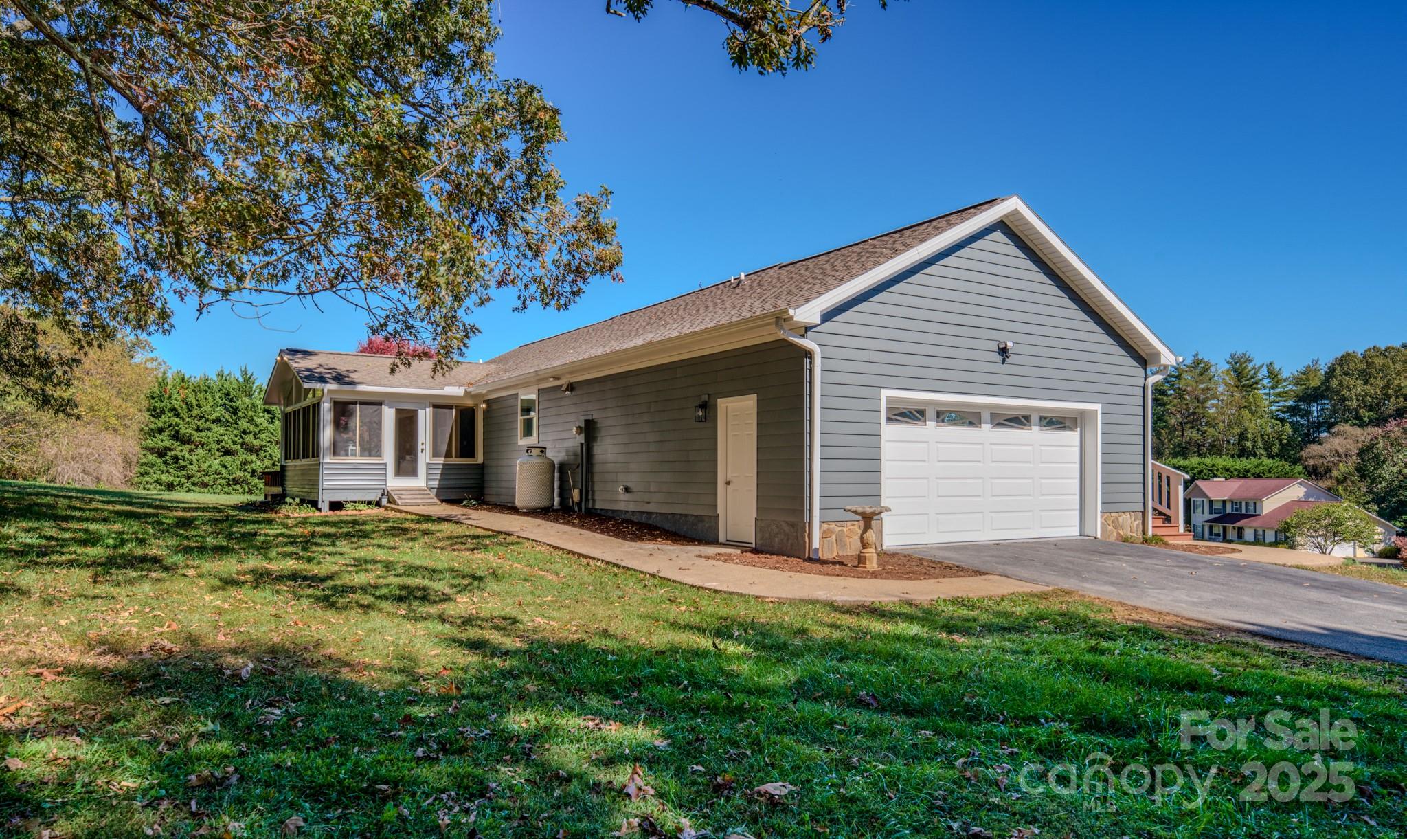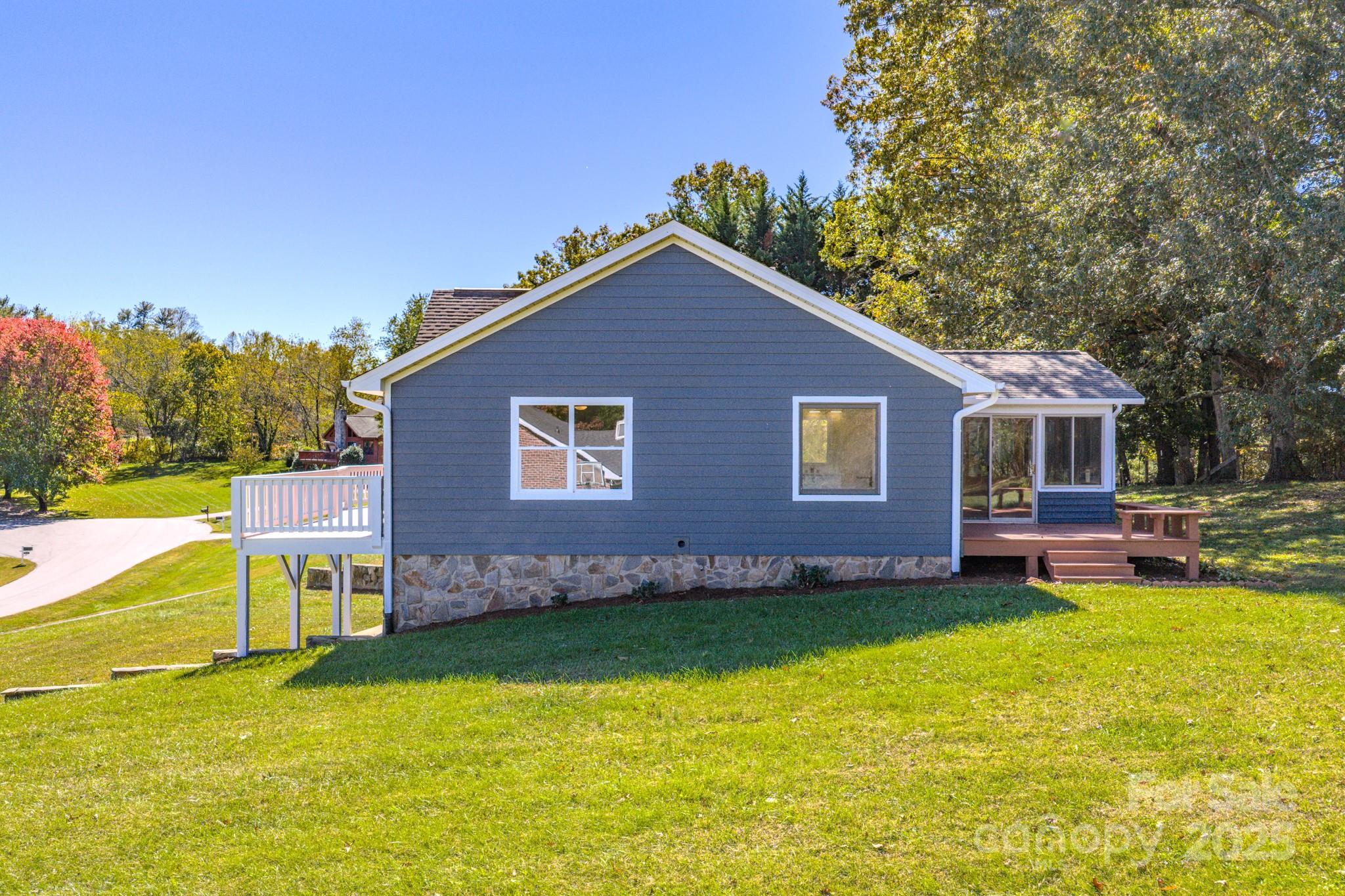 Come experience modern mountain living in this fabulously updated home featuring over 2, 700 square feet of bright, open space. 3 bedrooms plus a bonus room and two living areas. The main living area impresses with soaring vaulted ceilings, recessed lighting, and a dramatic wall of windows that frame stunning mountain views. French doors open to a large deck—ideal for entertaining or simply soaking in the scenery. The kitchen is a showstopper with bold blue shaker cabinets, quartz countertops, stainless steel appliances, and a clean white tile backsplash. Thoughtfully designed for both beauty and functionality, it’s perfect for cooking and gathering. The spacious sunroom provides the perfect place to relax while enjoying the natural surroundings. Modern finishes throughout, generous living areas, and breathtaking mountain views await you! Large garage, fresh landscaping, and paved driveway all in an established neighborhood with low HOA fees just 20 min from vibrant Downtown Asheville. HVAC 2021. See attached restrictions. No rentals less than 30 days.