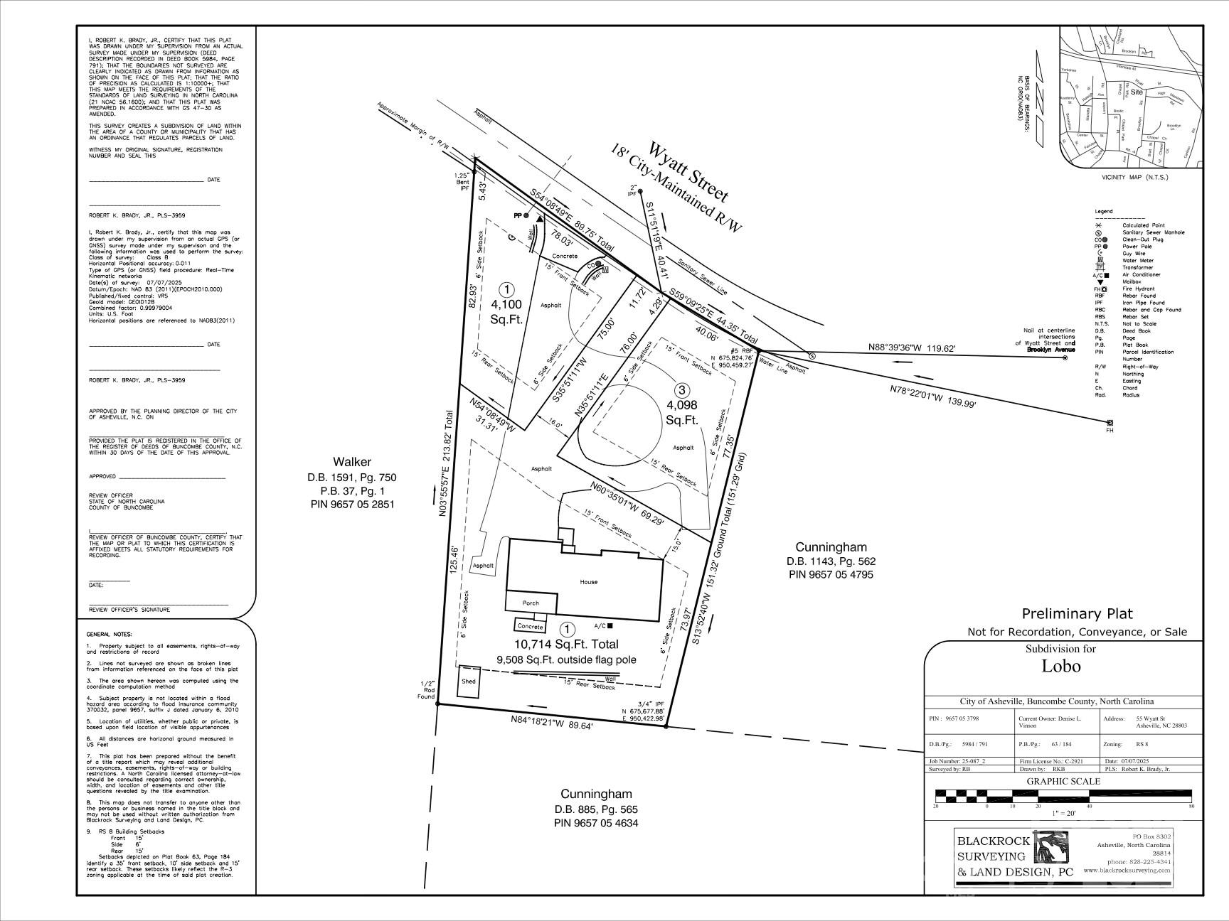 From Biltmore Village, South on Hendersonville Rd. for .25 mi, left onto Yorkshire St. for .1 mi, left onto Academy St. Ext, immediate left onto Raleigh Ave. for .1 mi, left onto London Rd, immediate left onto Wyatt St. Lots will be on right in .2 miles. Can also use 55 Wyatt in GPS.