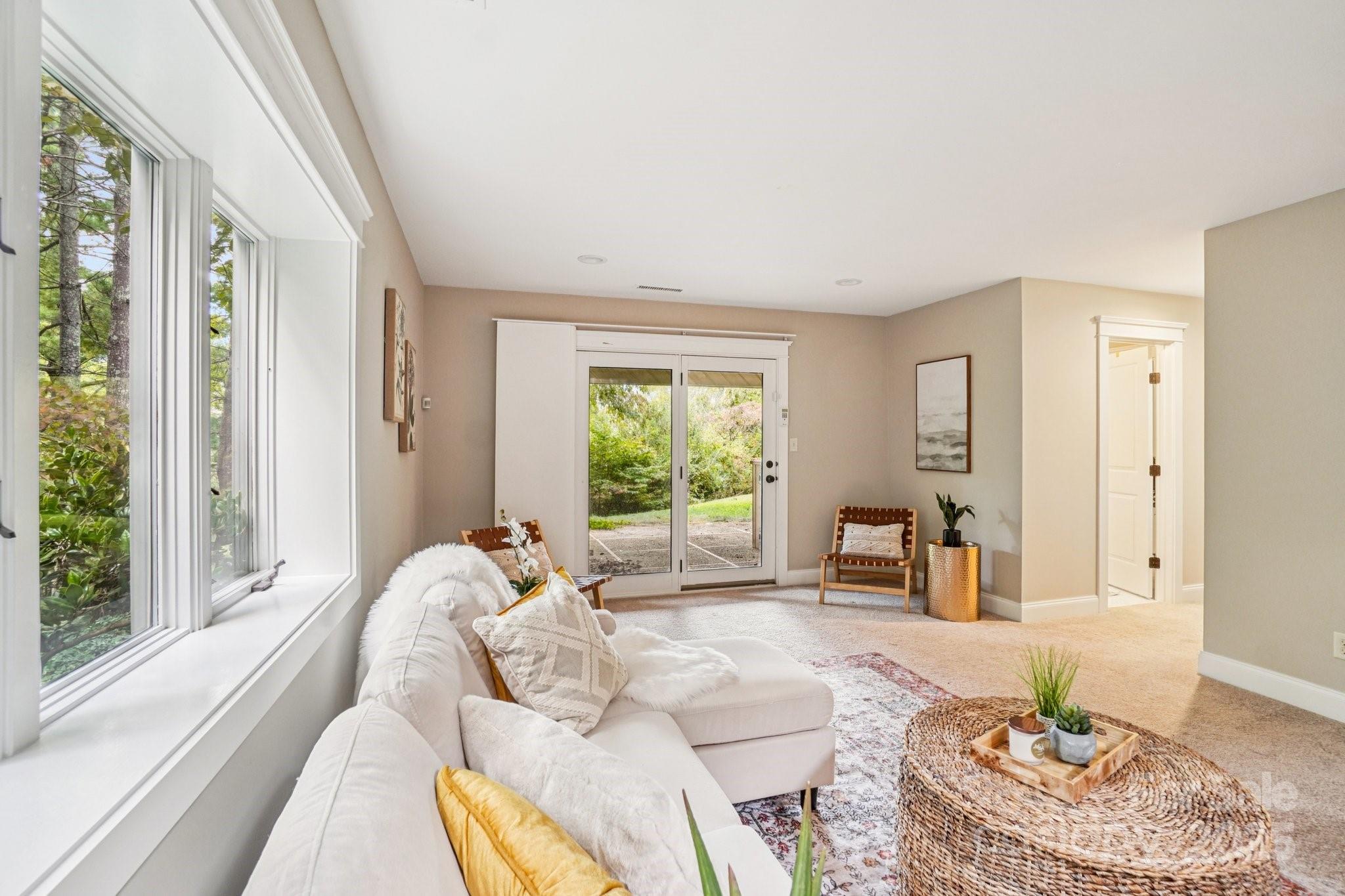 Every once in a blue moon a property hits the market that is JUST what you've been looking for. 601 Timber Lane is that perfect combination of main-level living, maintenance-free exterior, plenty of room for guests, peace, quiet and privacy with mountain views, and move-in ready availability. Located in the idyllic Beaverdam community, you're only a mile to the Fresh Market, the Country Club of Asheville, Beaver Lake, and some of North Asheville's finest dining choices. 2 miles further, you're at UNCA and the Osher Lifelong Learning Institute, Trader Joe's, and the heart of downtown Asheville! This tastefully renovated end-unit features vaulted ceilings, a gourmet kitchen, updated bathrooms, lovely mountain views, ample deck space, plentiful storage, a 2-car garage, and a spacious family room downstairs. Additional washer/dryer hookups are available in the primary suite. The Timbers condominiums is a well-establish community with an active and friendly Homeowner's Association. The monthly fees cover city water, extensive lush landscaping, pest control, road maintenance, snow removal, exterior building maintenance, insurance, roof care, a clubhouse and swimming pool.