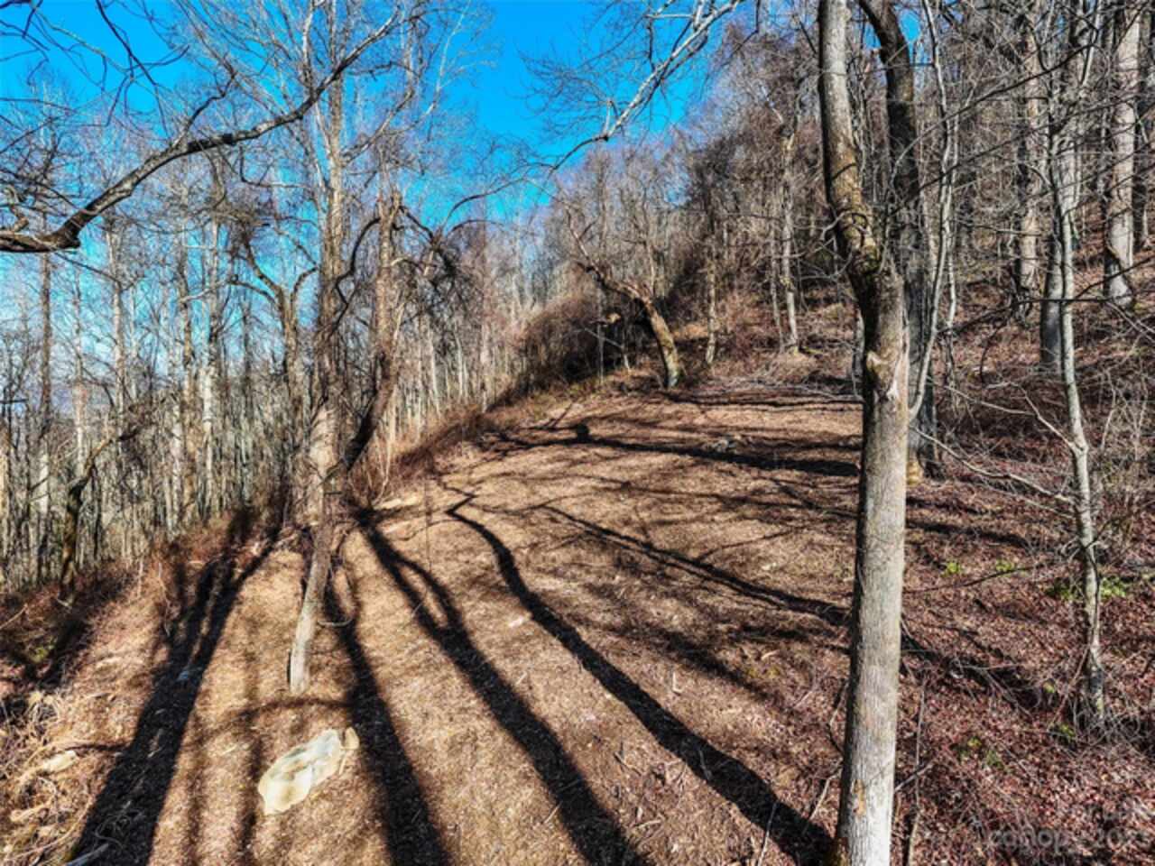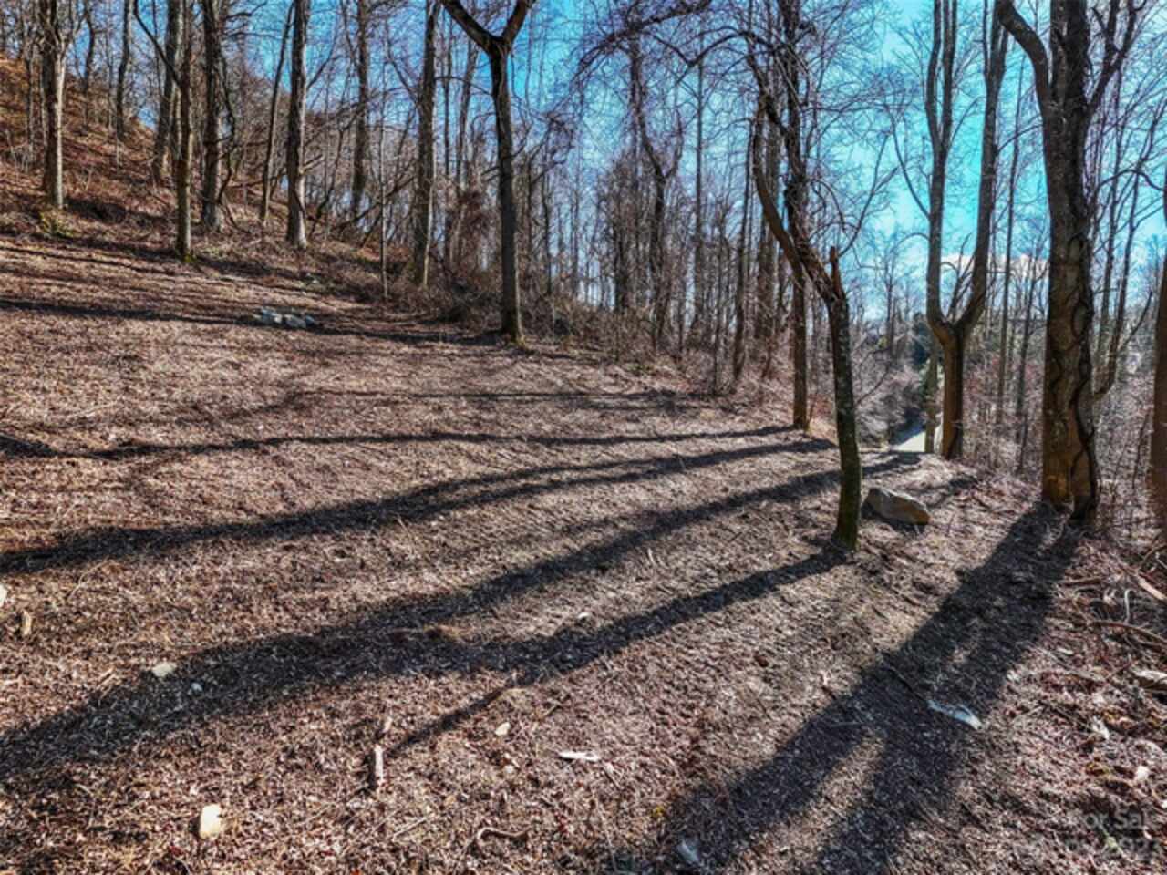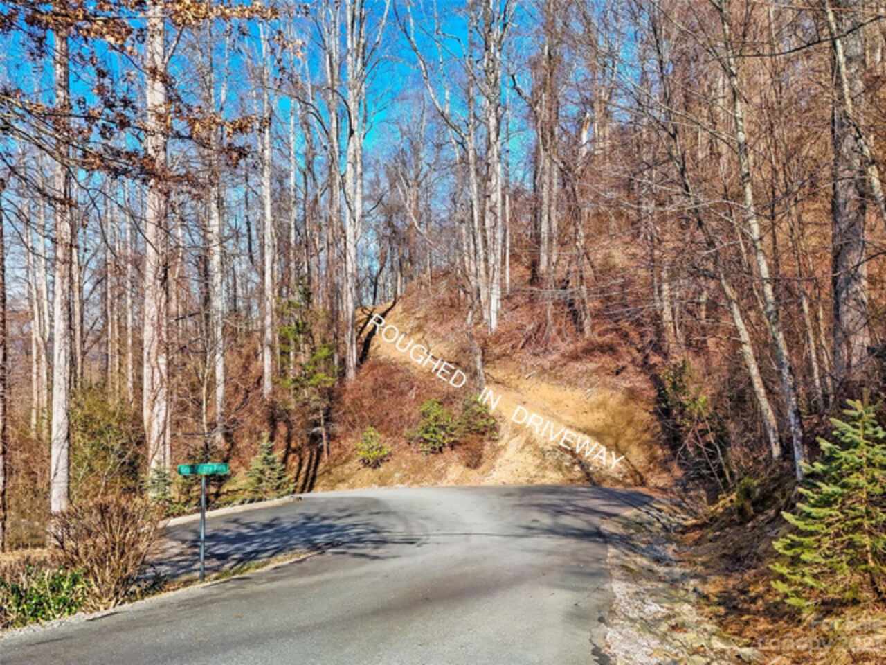 From North or Downtown Asheville take US 74 Alt East (Charlotte Hwy) for 1 mile and take a right at the light for Rose Hill Rd, follow for 1.7 miles to the Rosy Hills entrance on the left. Need gate code. From South Asheville take Mills Gap Rd to Pinners Cove Rd. Follow Pinners Cove for 3.2 miles to a sharp left curve (pinners cove will turn into Rose Hill Rd) Rosy Hills entrance is about 1.1 miles on the right after that sharp turn. Need gate code. ****Lot is on the left. It's the 2nd dirt driveway and real estate sign on the left side of the road. It's near the top of the community. Roughed in driveway looks steep but it's an easy walk up to the clearing.