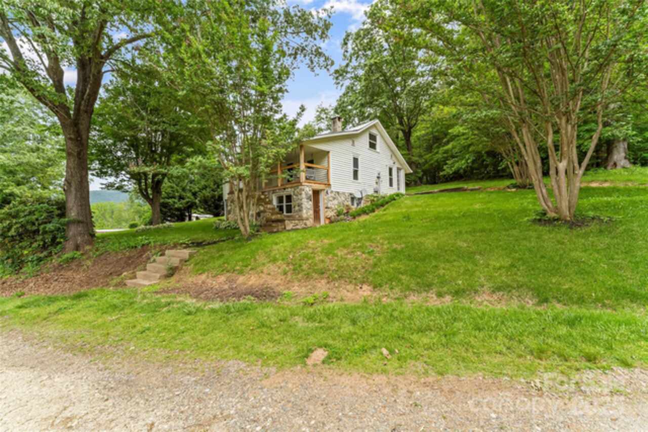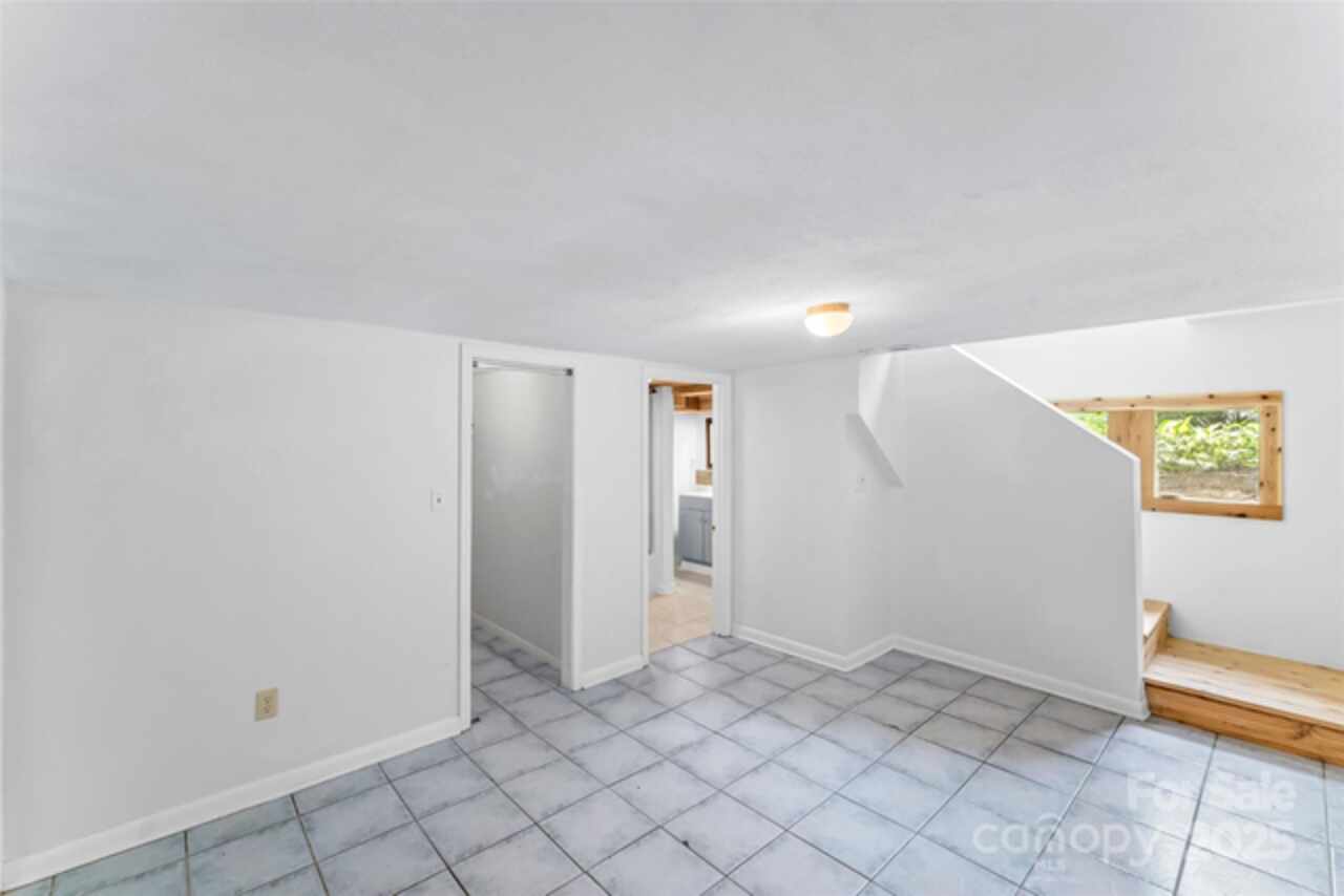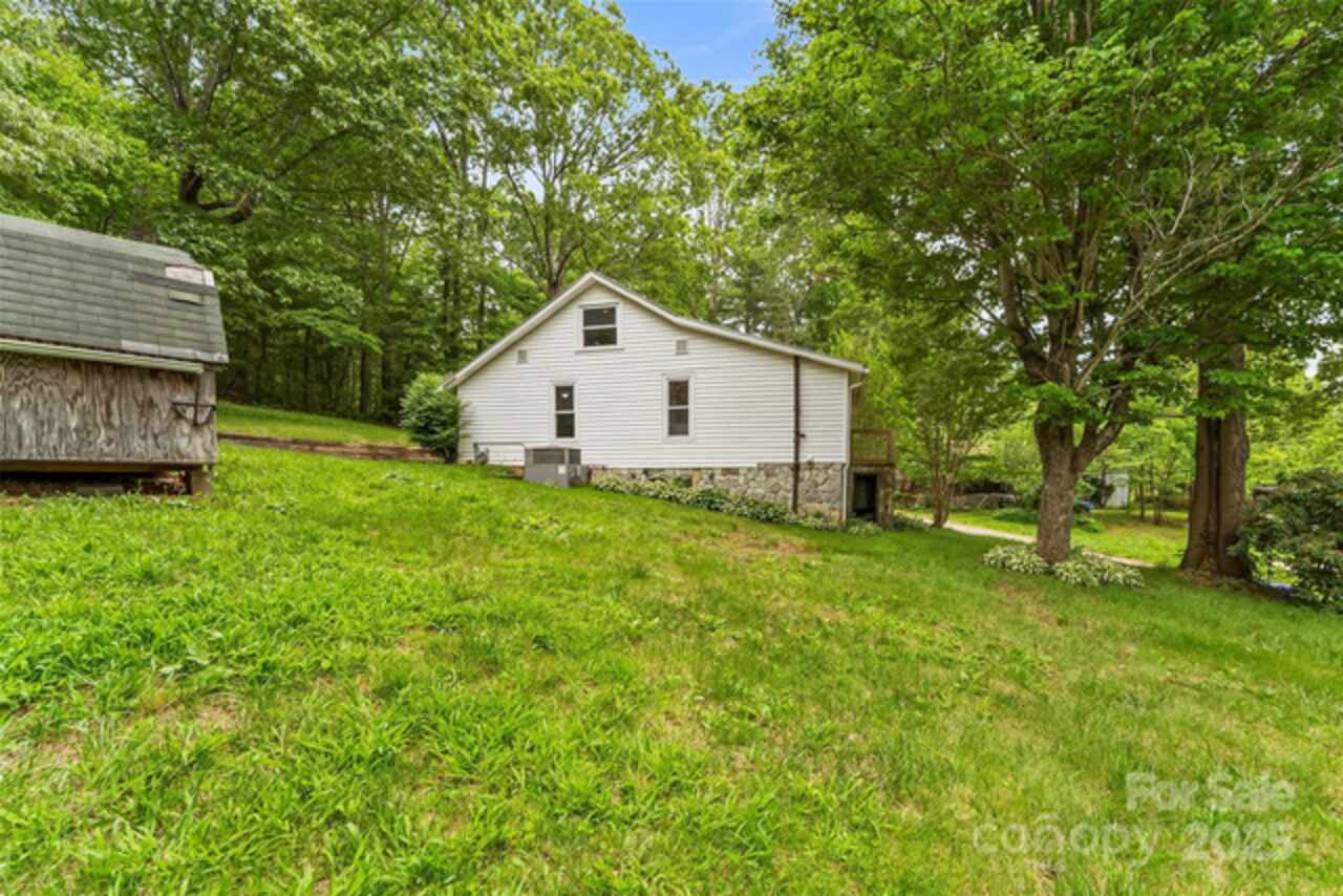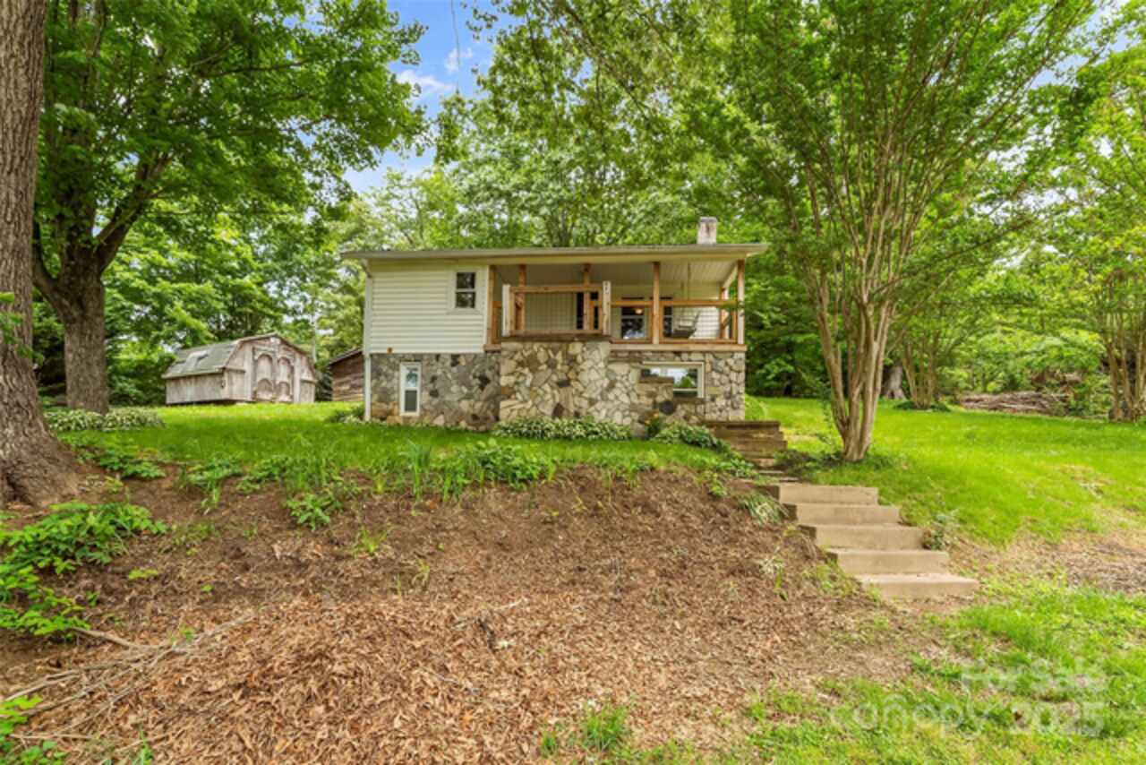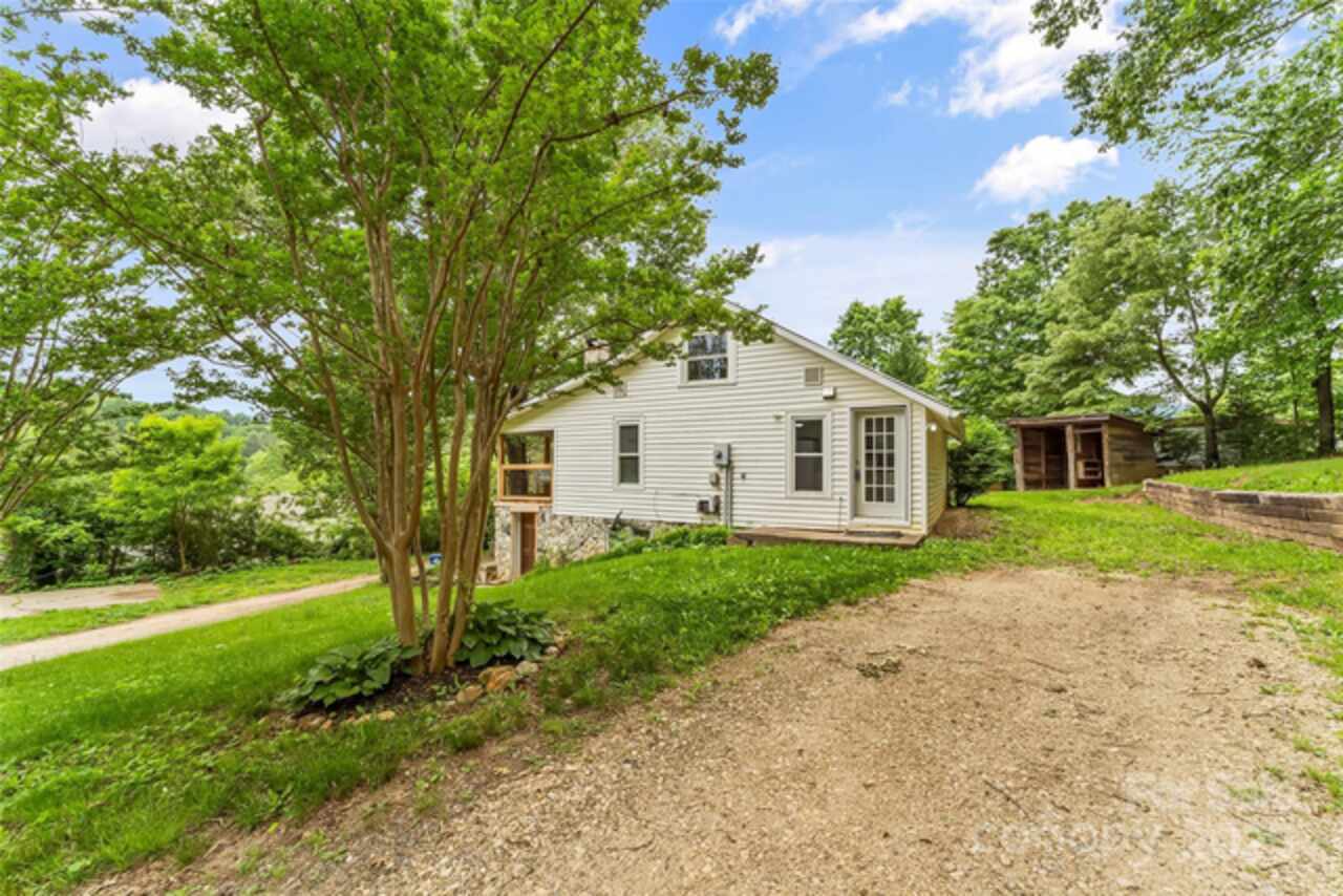 Nestled in a peaceful setting less than 15 minutes from downtown Asheville, this charming 2BD/2BA home offers flexible living on over half an acre! The main level features kitchen with dining area, living room with beautiful hardwood floors, a comfortable bedroom and full bath. Lower level includes a spacious ensuite bedroom as well as additional flex space, a large laundry room, all with a private exterior entrance. A flex area upstairs adds even more potential. Enjoy quiet mornings on the covered front porch or spend time in the yard, perfect for gardening, outdoor activities, or simply unwinding. A storage shed adds extra space for tools and gear. Convenient location with easy access to all your everyday essentials and approximately 2 miles from the Blue Ridge Parkway! Ceiling heights vary throughout the property, no portion exceeds 6'11". Strong, successful long-term rental history. Whether looking for a full-time residence or an investment, don't pass this one up!