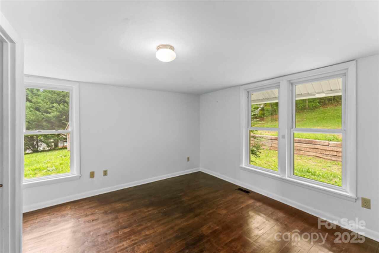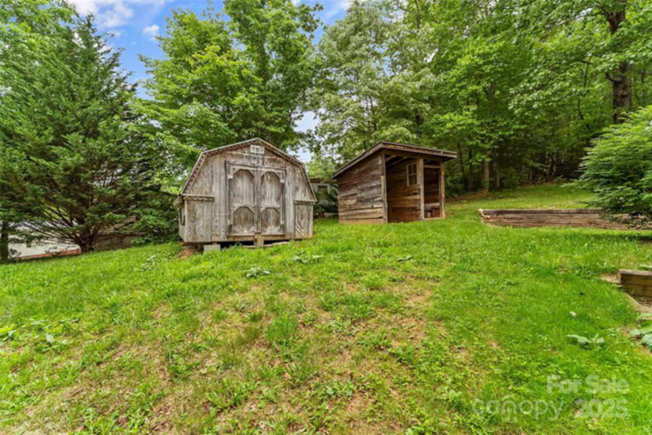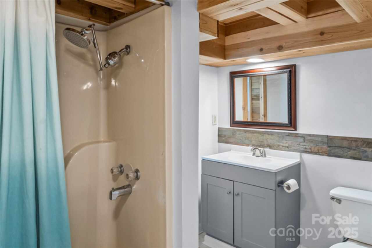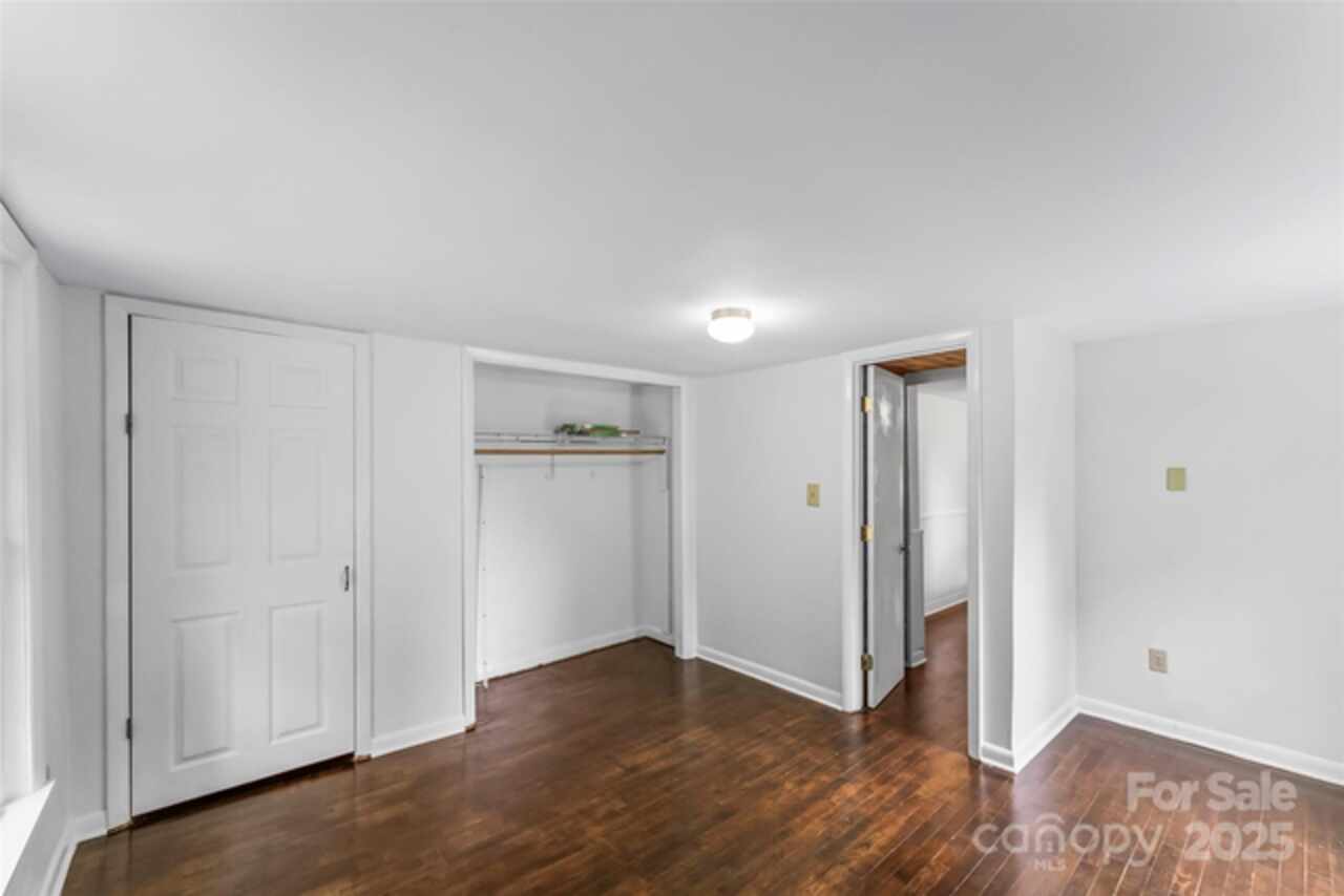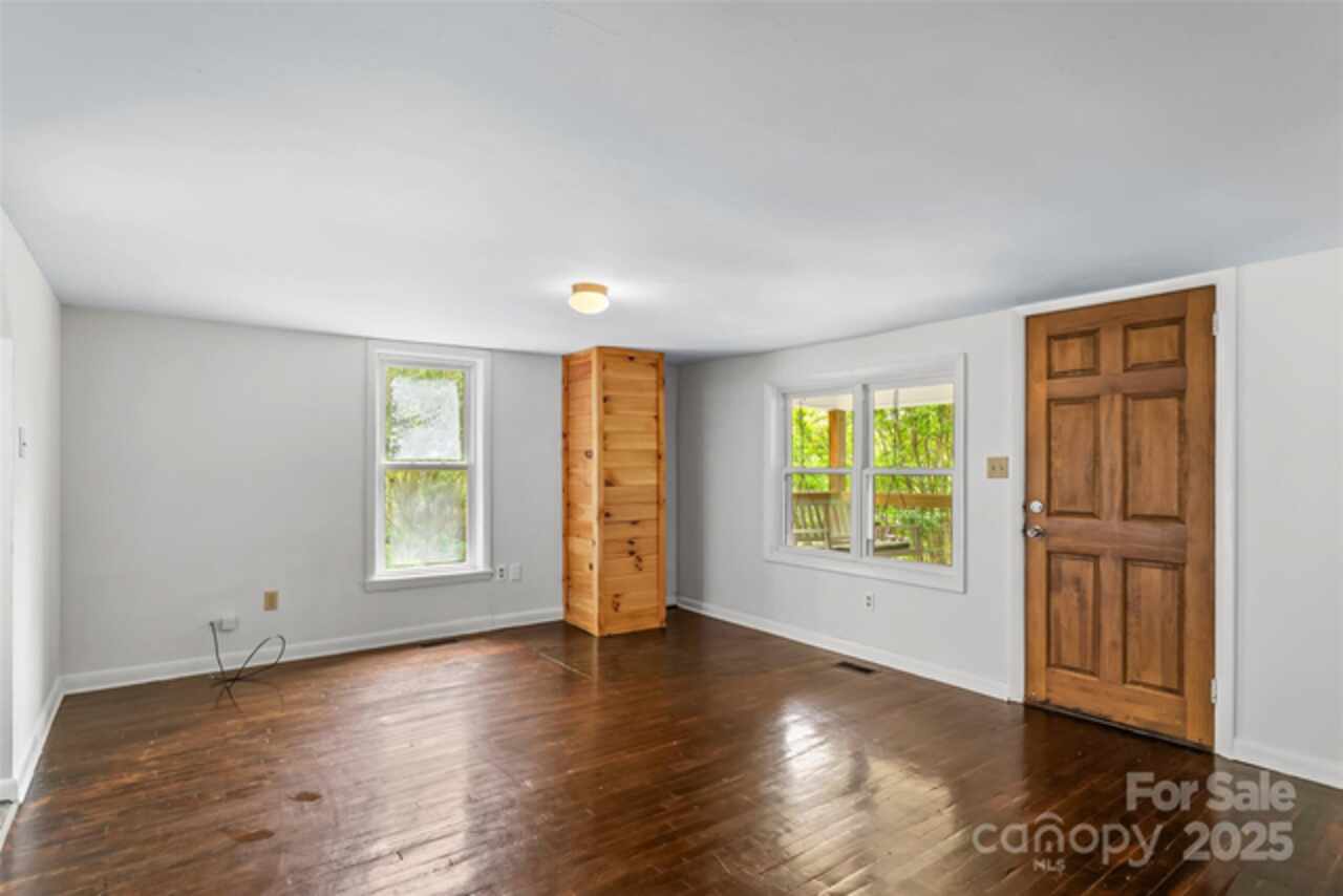 Nestled in a peaceful setting less than 15 minutes from downtown Asheville, this charming 2BD/2BA home offers flexible living on over half an acre! The main level features kitchen with dining area, living room with beautiful hardwood floors, a comfortable bedroom and full bath. Lower level includes a spacious ensuite bedroom as well as additional flex space, a large laundry room, all with a private exterior entrance. A flex area upstairs adds even more potential. Enjoy quiet mornings on the covered front porch or spend time in the yard, perfect for gardening, outdoor activities, or simply unwinding. A storage shed adds extra space for tools and gear. Convenient location with easy access to all your everyday essentials and approximately 2 miles from the Blue Ridge Parkway! Ceiling heights vary throughout the property, no portion exceeds 6'11". Strong, successful long-term rental history. Whether looking for a full-time residence or an investment, don't pass this one up!