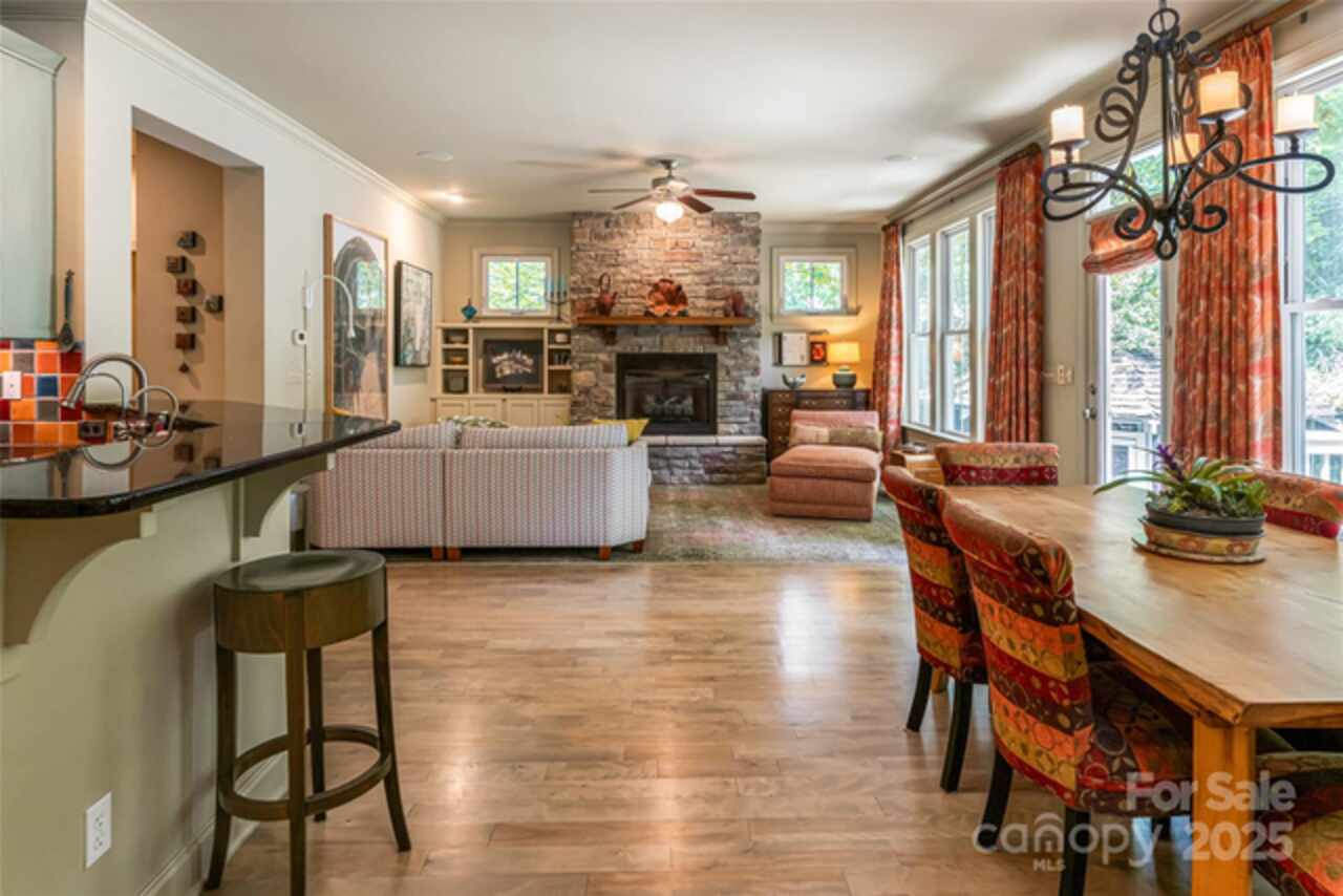 An incredible work of art where serenity meets artistry, this singular residence harmonizes inspired architecture with the vibrant hues of nature. At $289 per square foot, this home is among the lowest price per square foot in Biltmore Lake, an incredible value! Designed as a sanctuary and a showcase, the home blends modern comfort with timeless detail, offering an environment equally suited for ease of living and gracious entertaining. Inside, designer accents highlight a flowing floor plan that is open yet refined. Walls of windows capture ever-changing mountain vistas, bathing each room in light and tranquility. Two fireplaces provide warmth and ambiance, while solid-core doors, custom shelving and abundant storage underscore the craftsmanship found throughout. In the dining room, a distinctive built-in buffet merges elegance with utility, while the kitchen and butler’s pantry have been conceived as a cohesive ensemble—where hand-painted cabinetry, itself a work of art, complements thoughtful functionality. Unique birch floors on the main level, stripped and sanded to a luminous finish, lend sophistication, enhanced by an audio system for effortless living and entertaining. The upper and lower levels continue the theme of versatility and design. Cork flooring in the media room and office provides a warm, contemporary touch, while the finished lower-level studio—with wet bar, storage and private access—invites endless possibilities. This space connects seamlessly to a Japanese-inspired moss garden, offering a serene retreat for reflection, creativity or gathering. Outdoor living is celebrated with three tiers of expansive decks, a screened gazebo, and winding paths through gardens rich with perennials for seasonal color and low-maintenance beauty. Here, the boundary between home and landscape dissolves, creating spaces equally suited to quiet mornings or lively evenings under the stars. Set within the dynamic, award-winning community of Biltmore Lake, the home is just moments from a shimmering 62-acre lake offering swimming, kayaking, paddleboarding and fishing. Miles of forested trails invite exploration, while courts, playgrounds, and a clubhouse foster connection and recreation. Community concerts and gatherings at the firepit or pavilion capture the spirit of mountain living at its finest. Beyond the gates, downtown Asheville is minutes away with its art, architecture, cafés and live music, while the Blue Ridge Parkway, Pisgah National Forest and French Broad River beckon with unforgettable panoramas and outdoor adventure. Every detail of this residence reflects intentional artistry and enduring design. A rare opportunity at Biltmore Lake, it is more than a home—it is a lifestyle of beauty, inspiration and connection.