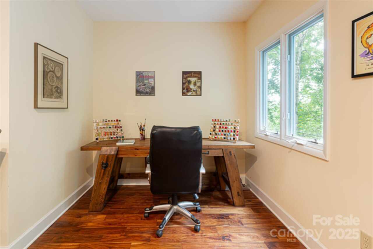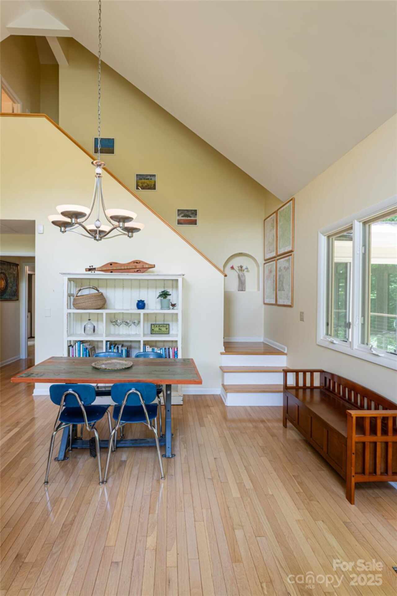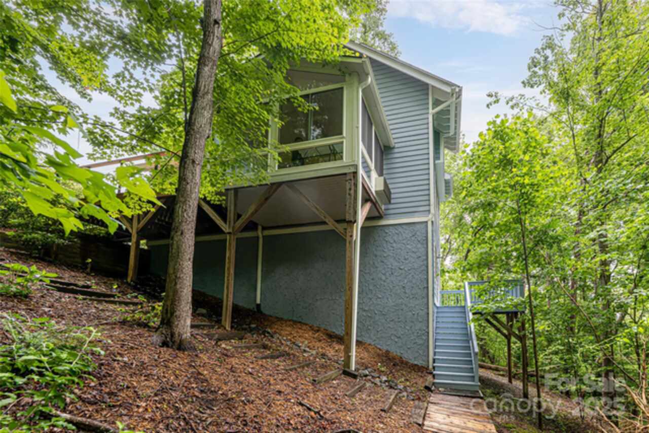 Tucked into the tranquil woods of North Asheville, this enchanting Arts and Crafts–style home offers a rare balance of timeless design, modern comfort, and serene privacy. From the moment you arrive, the setting feels like a retreat—lush landscaping frames the home in seasonal color, while dappled light filters gently through mature trees. Thoughtfully crafted details, ample windows and an intuitive floor plan create an atmosphere of enduring warmth, making every room feel inviting and connected to nature. The main level is designed for ease of living and effortless entertaining. Rich wood floors lend character beneath soaring ceilings, while the open-concept living and dining areas flow seamlessly together. Large windows bathe the interiors in natural light, framing wooded views that shift beautifully with the seasons. At the heart of the home, a thoughtfully appointed kitchen with center island invites lively gatherings and quiet, everyday moments. The primary suite is a sanctuary, privately on the main level. A glass-enclosed sunroom extends directly from the suite, offering a year-round haven surrounded by treetop views. Whether savored as a reading nook, meditation space or morning coffee retreat, this light-filled room elevates daily living with its sense of peace and connection. Upstairs, two spacious bedrooms are brightened by skylights, drawing the outdoors in and creating airy spaces filled with natural charm. Each room offers flexibility for family, guests or work-from-home needs, blending practicality with comfort. The lower level expands the home’s versatility, featuring a recreation room ideal for media, play or fitness. A ventilated workroom with a utility sink provides an environment for hobbies, crafts or creative pursuits, underscoring the home’s thoughtful design for a wide range of lifestyles. Beyond its walls, the property continues to inspire. Surrounded by woodlands, the residence offers quiet seclusion while remaining just moments from North Asheville’s vibrant dining, cultural venues and everyday conveniences. Here, comfort and connection coexist—an opportunity to live in harmony with nature without sacrificing accessibility. A woodland escape, this Arts and Crafts treasure is at once comfortable, connected and quietly extraordinary.