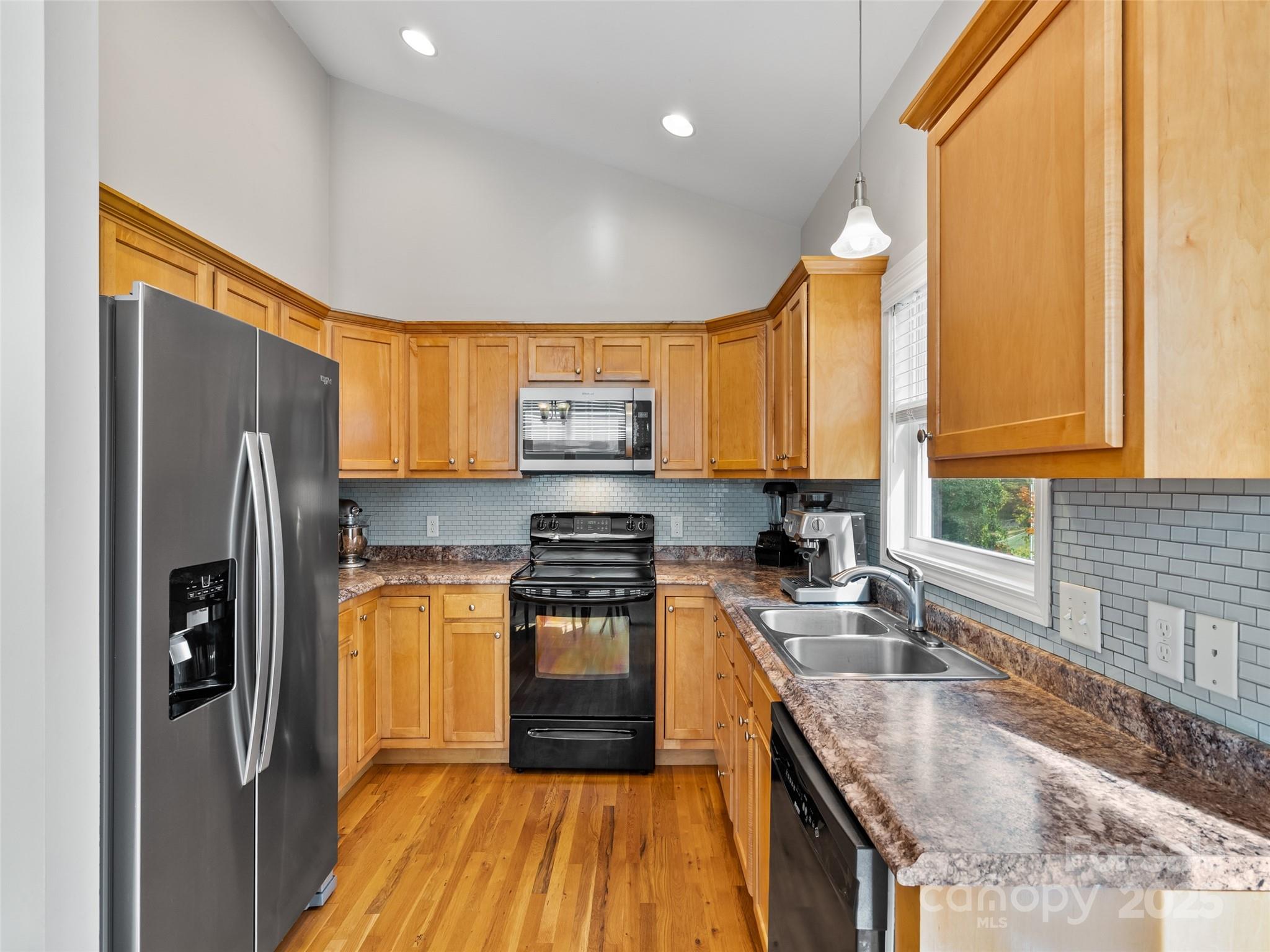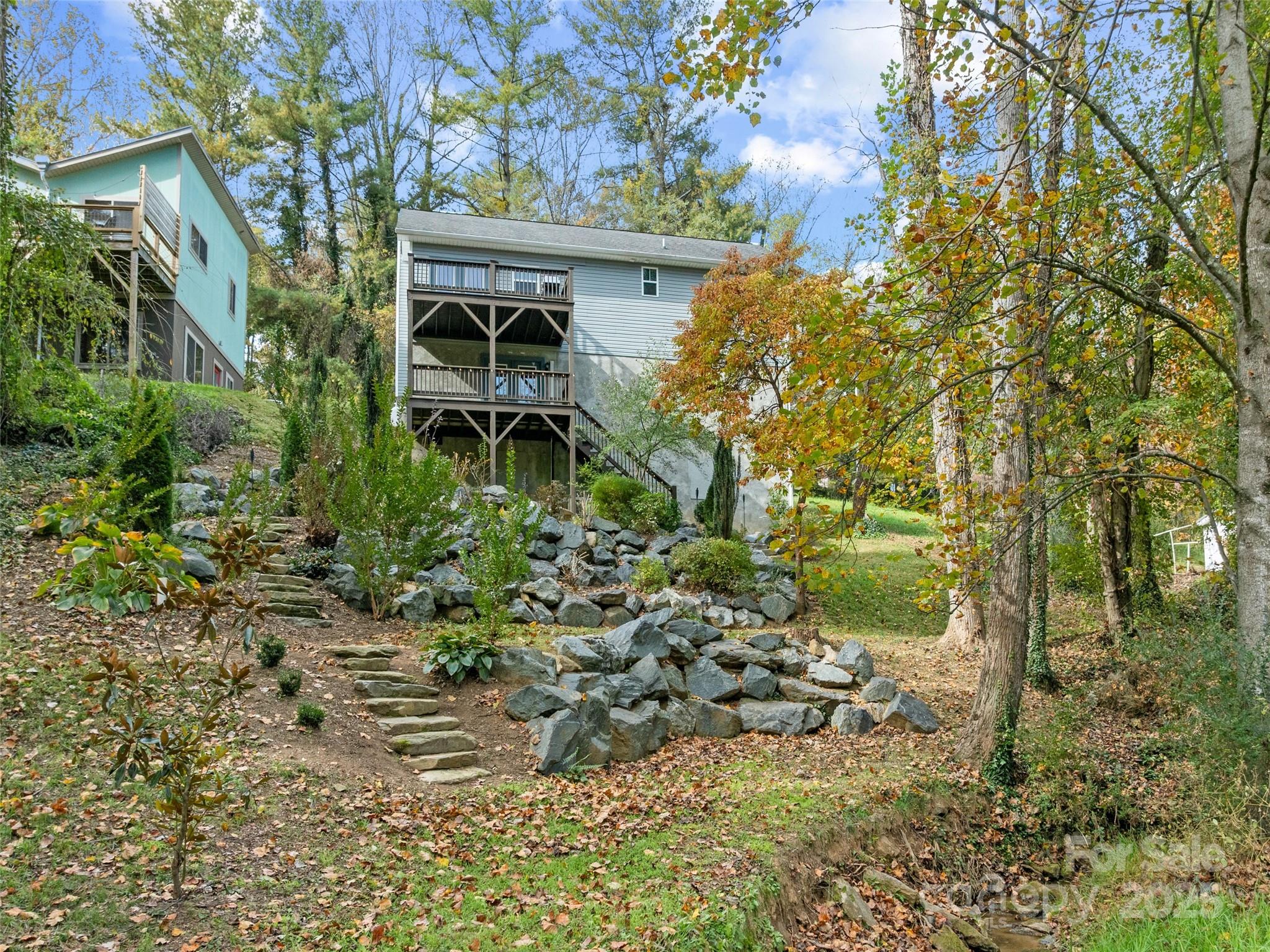 Welcome to this Arts & Crafts-inspired home in desirable Enka-Candler/West Asheville! This beautifully maintained 4-bedroom, 3 full-bathroom residence offers almost 2, 000 sq ft of thoughtfully designed living space balancing style and functionality. Discover an inviting open floor plan with 9-foot ceilings and vaulted areas creating a spacious atmosphere. A cozy fireplace adds to the ambiance. Gleaming hardwood floors flow throughout the main level, complementing the home’s warm aesthetic. The modern kitchen serves as the heart of the home, and convenient main-level laundry simplifies everyday life. Located outside city limits, the versatile lower level features an inside access as well as its own separate exterior entrance—ideal for Airbnb income or hosting guests. Outside, enjoy a canopy of trees, double decks, a burbling creek, and professionally landscaped terraced backyard. The custom fire pit w/ benches provides the perfect spot for enjoying the 4 seasons of our gorgeous NC mountains. Additional features include two car garage and 0.19-acre lot. Minutes from downtown Asheville and West Asheville’s celebrated dining and arts scene, this home offers the perfect blend of peaceful neighborhood living and urban convenience!